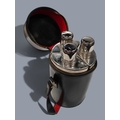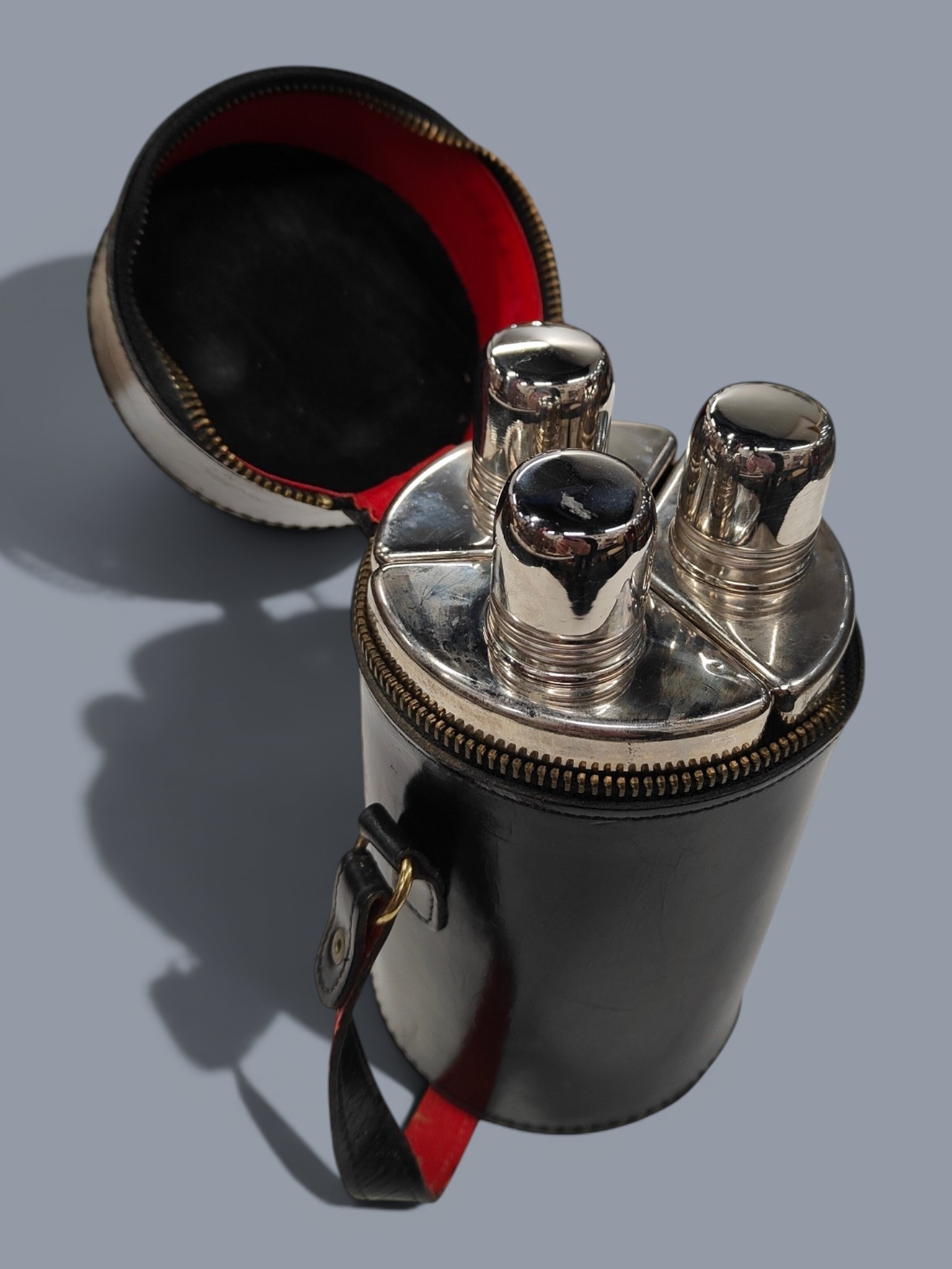 TRIPLE GLASS HIP FLASK IN LEATHER CASE