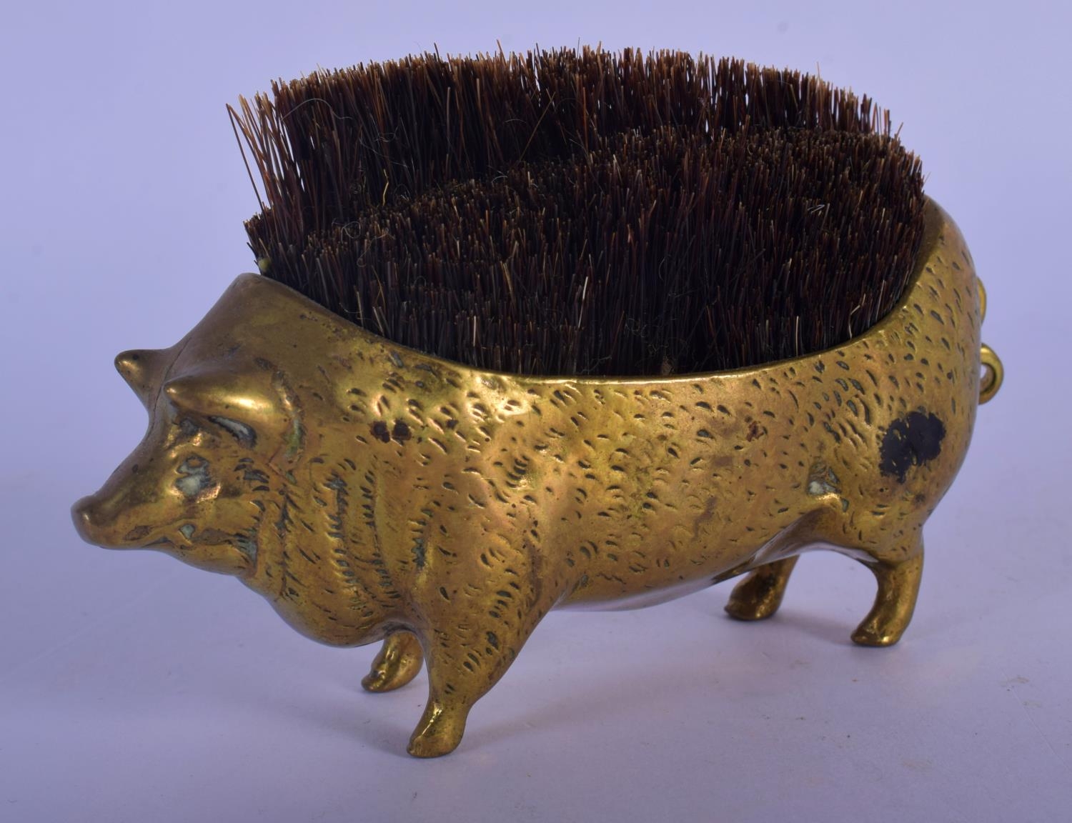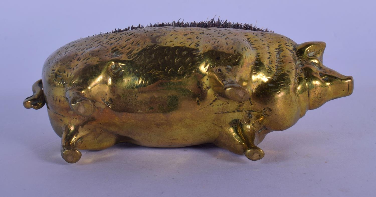 AN EARLY VICTORIAN BRASS PEN PIG WIPE. 10 cm wide.