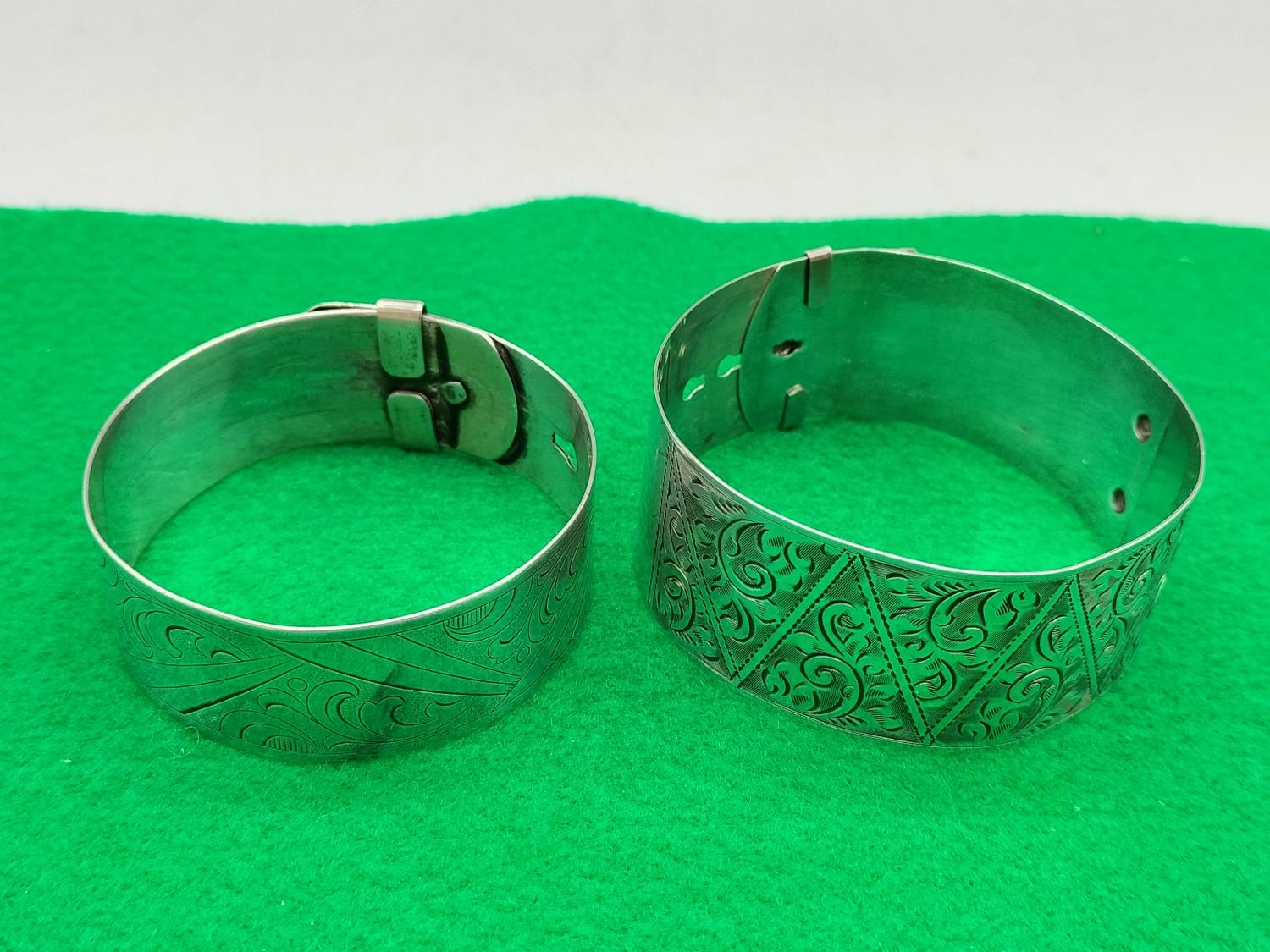 Silver (Unmarked) Belt Bangles (2). 59 Grams.