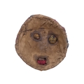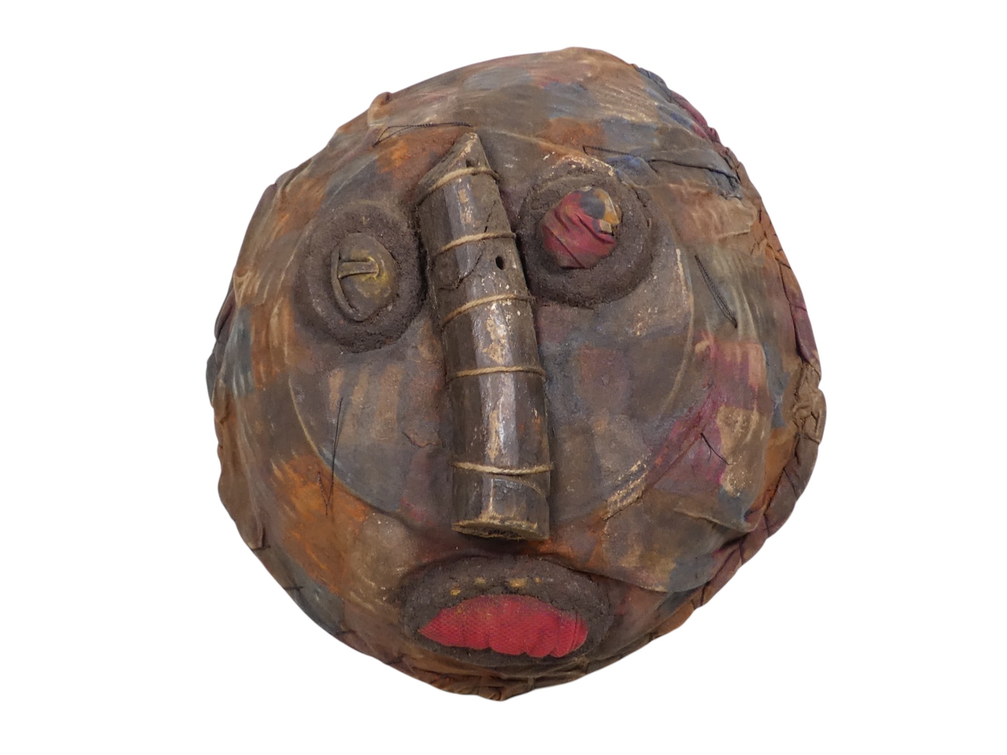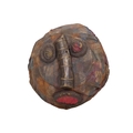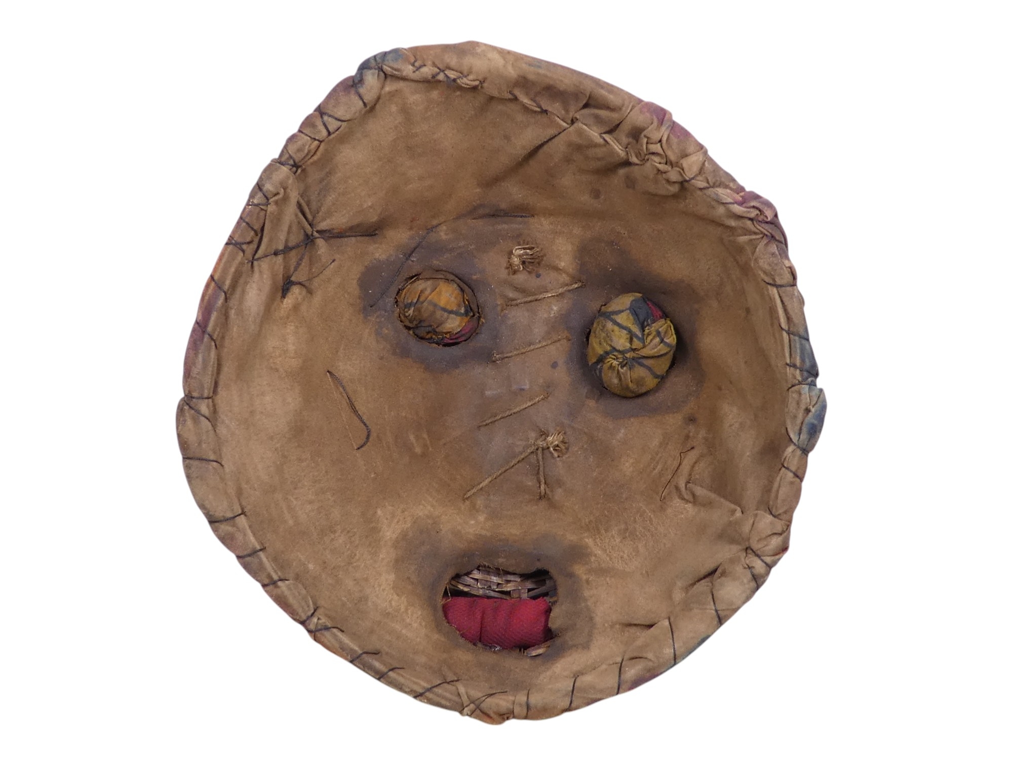 An African style mask - cloth stretched over a wicker former, 24cm diam