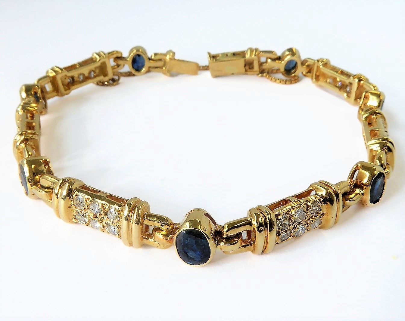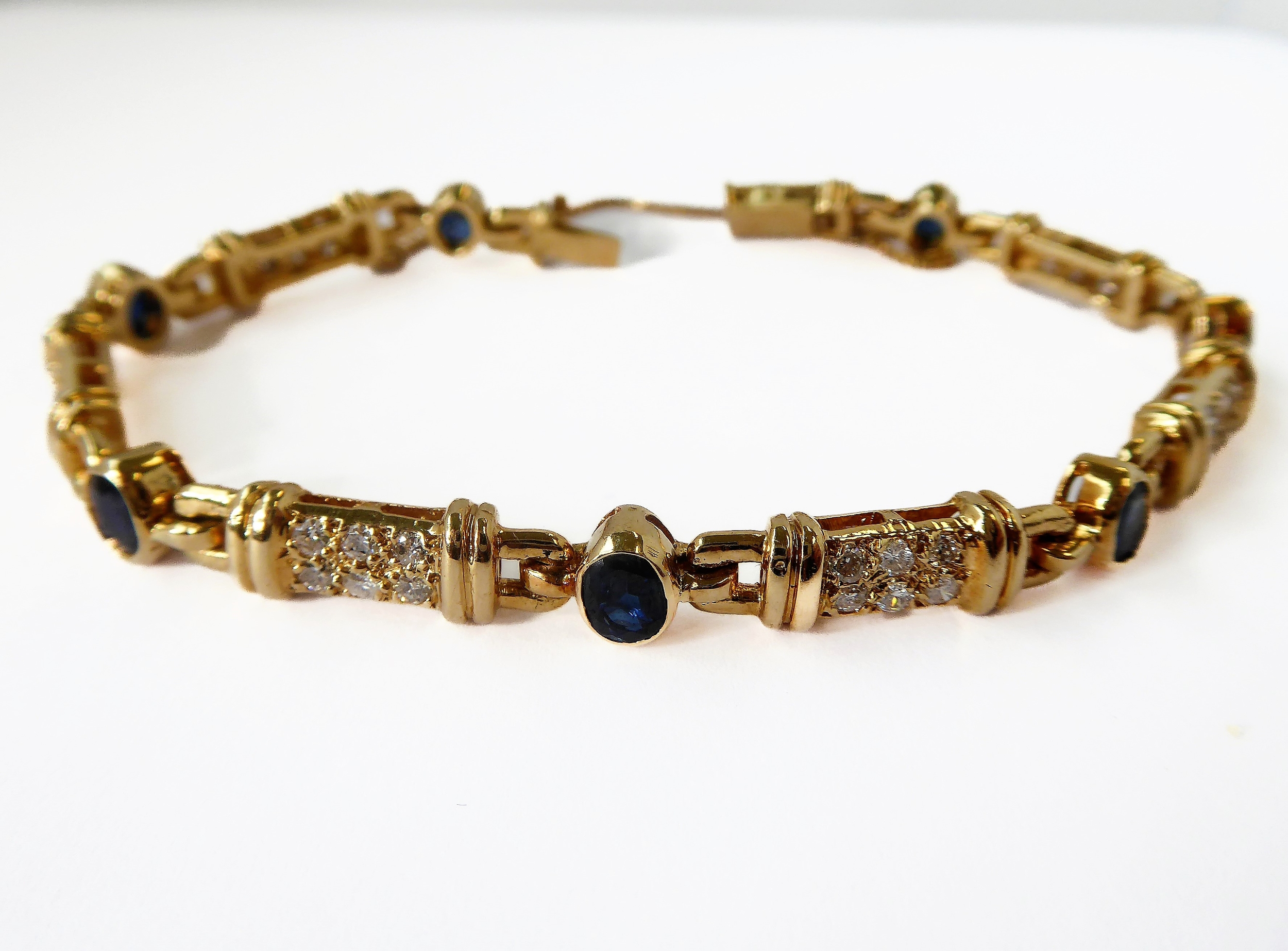 An 18-carat gold bracelet set with 42 diamonds (approx. 1.5ct) and seven sapphires