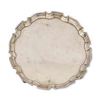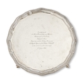 An Elizabeth II silver salver, on four feet, 25.5cm diam, by Thomas Bradbury & Sons Ltd, Sheffield 1967, 20oz 10dwt