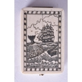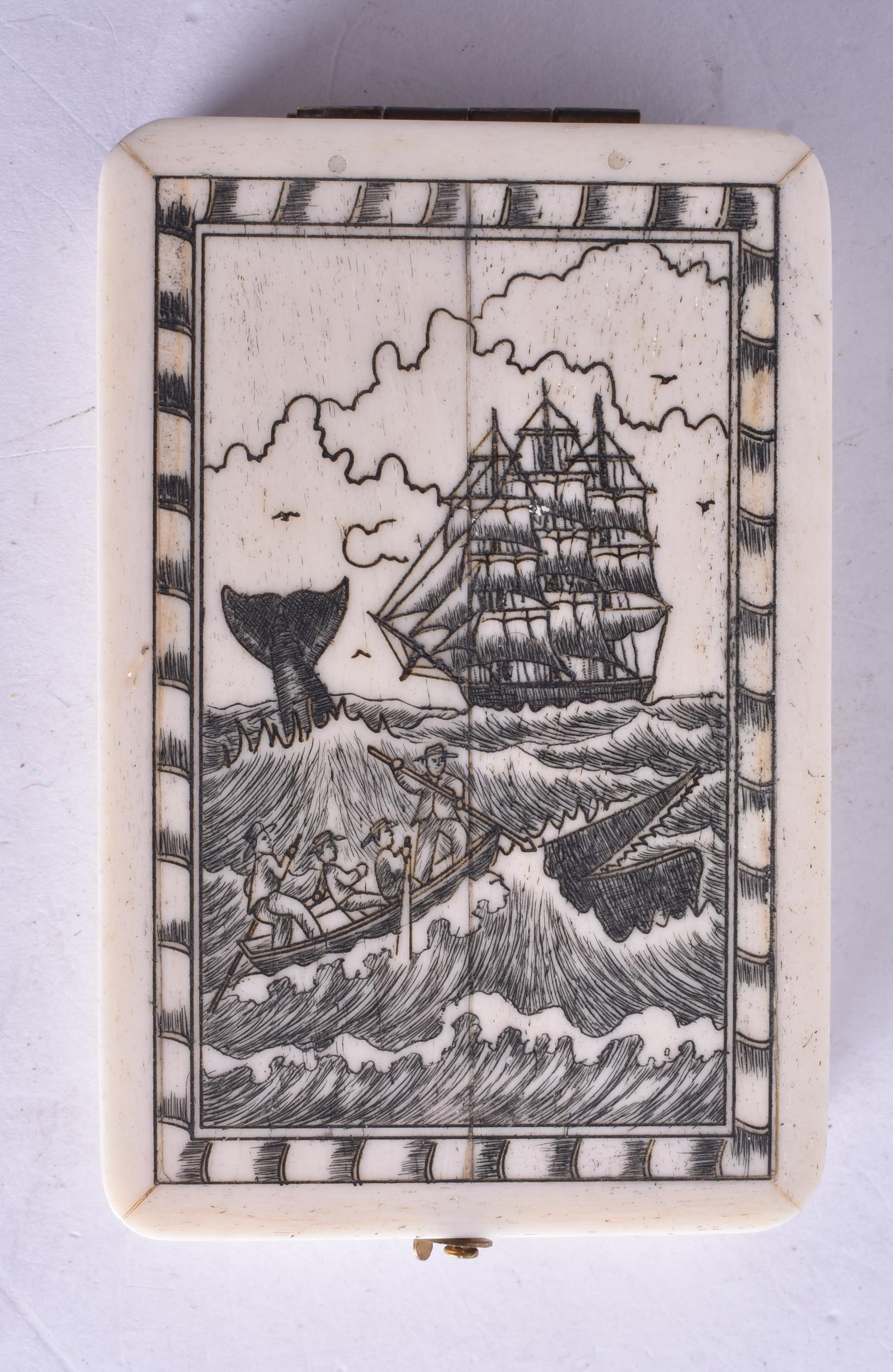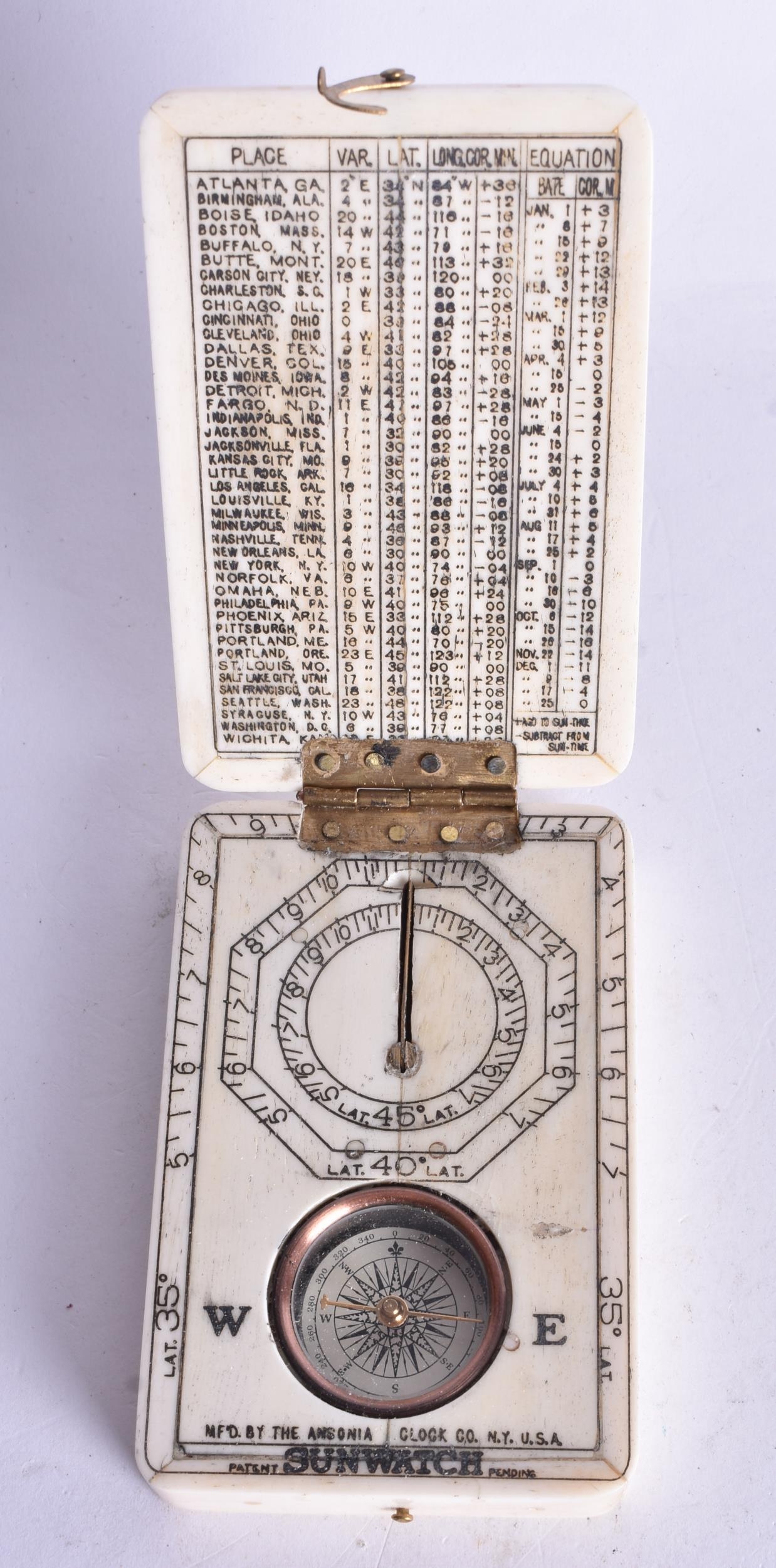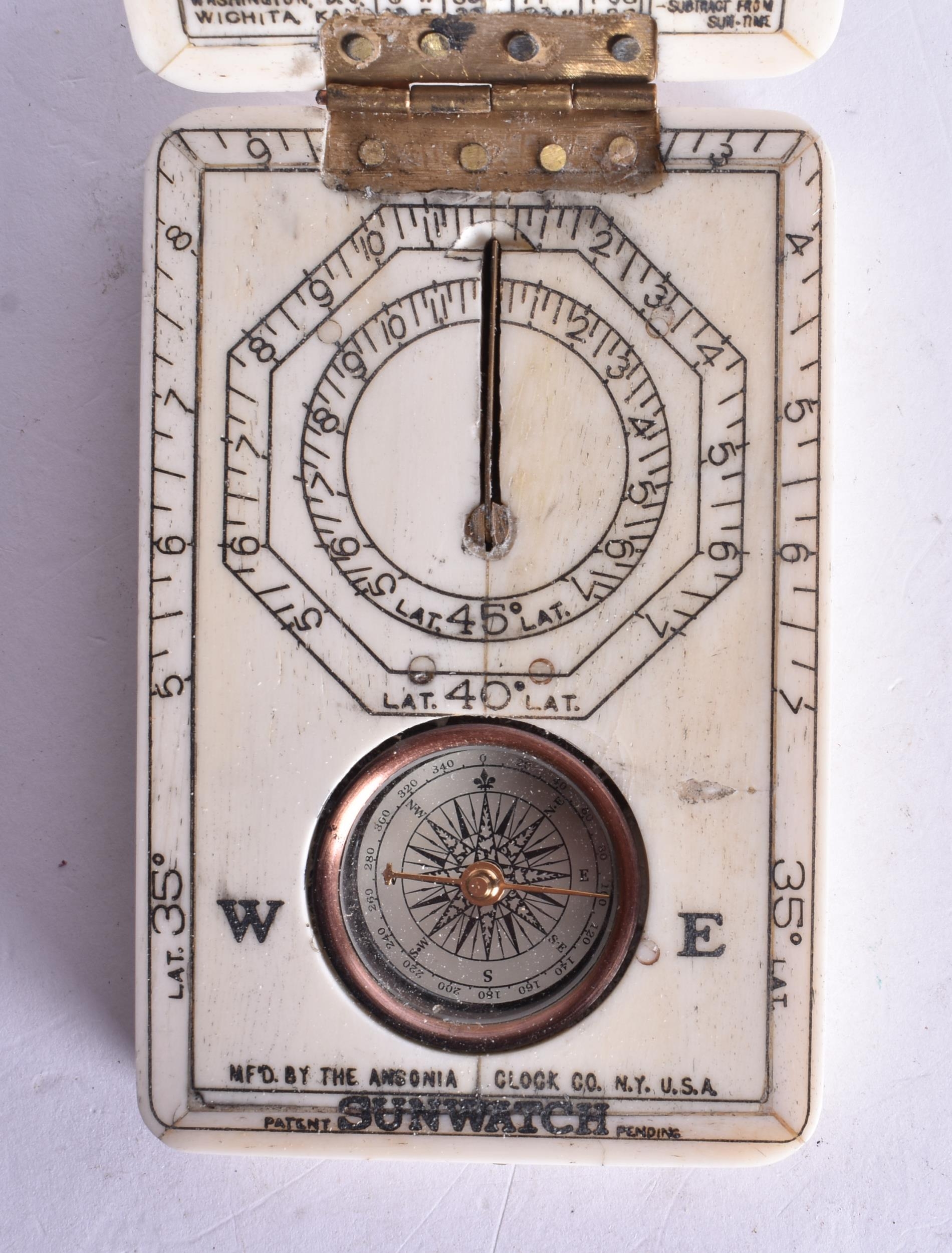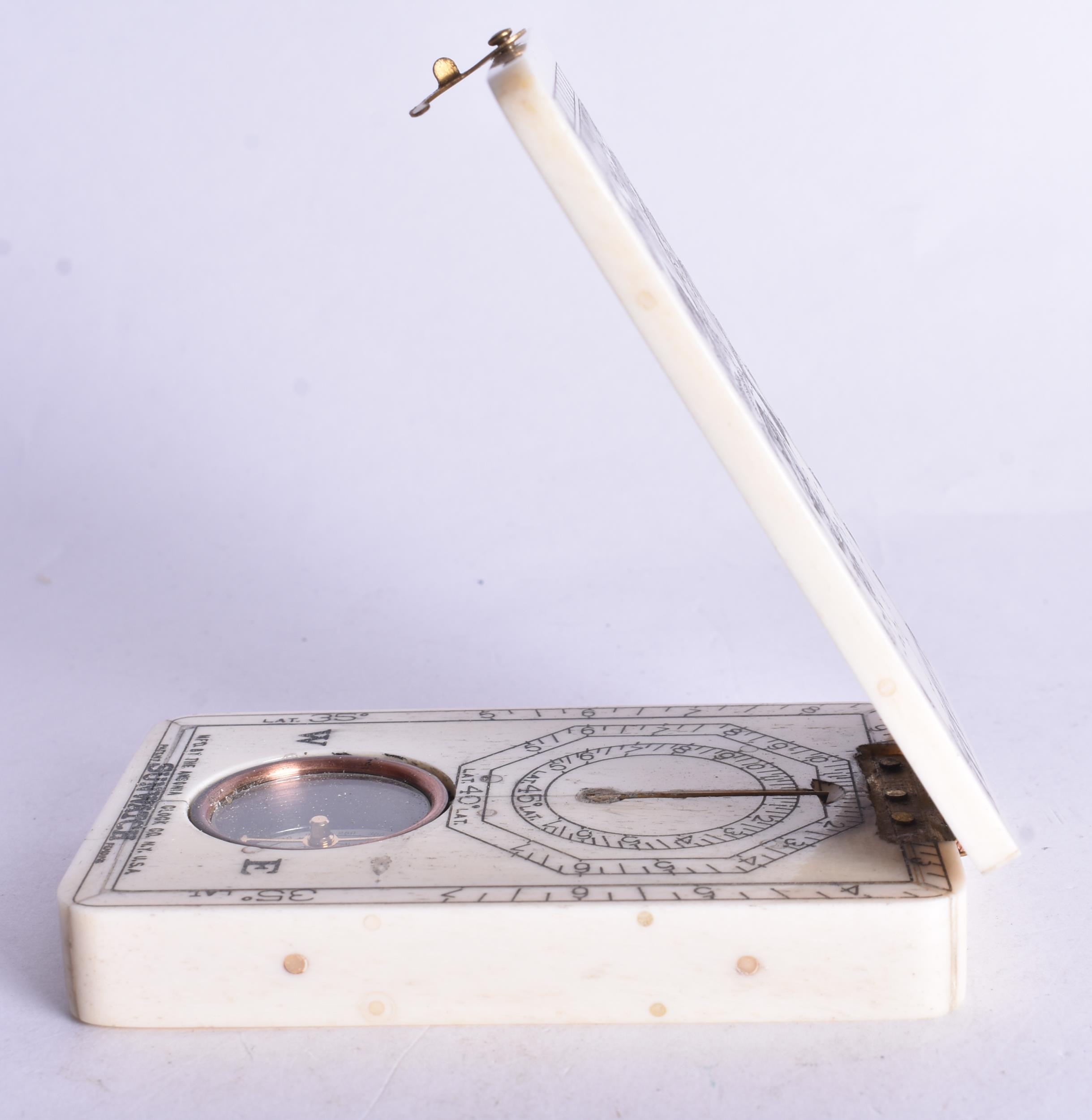 A SCRIMSHAW DECORATED COMPASS. 9.5 cm x 6 cm.