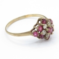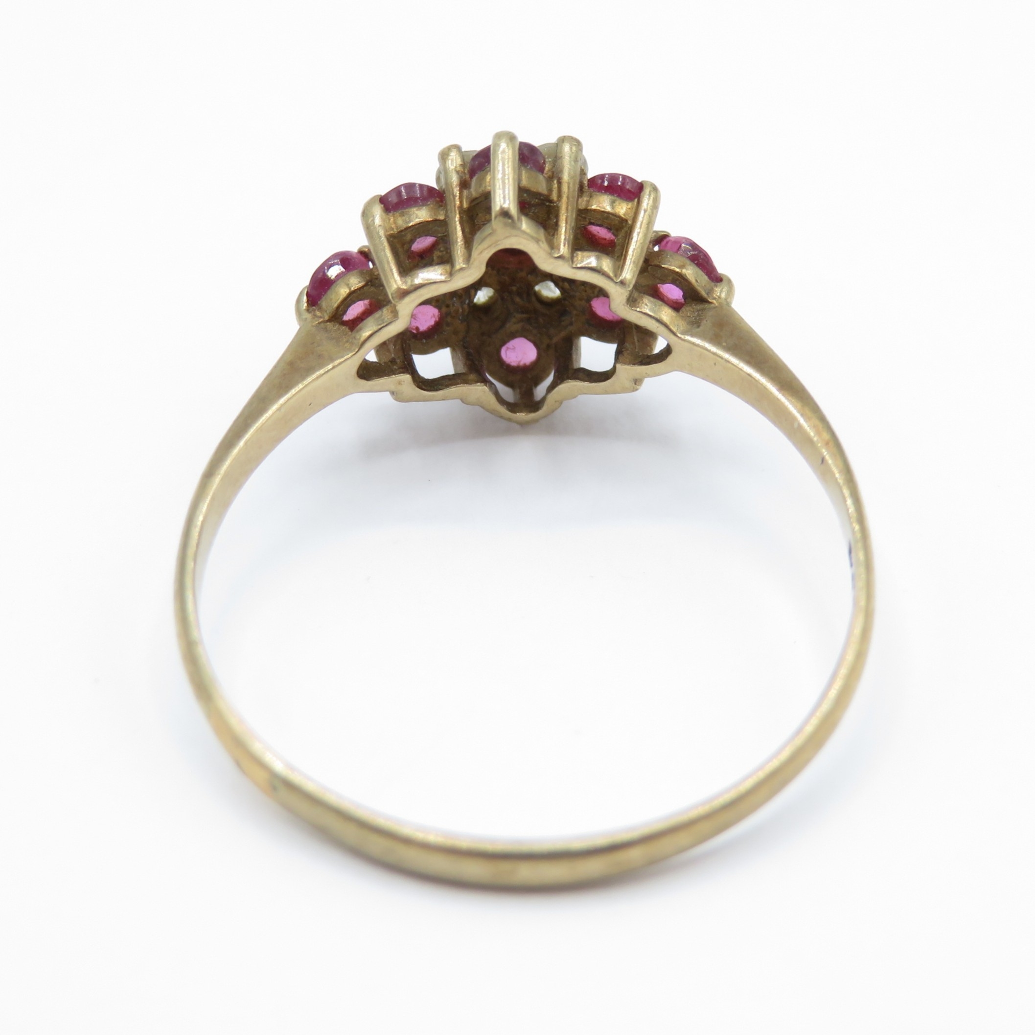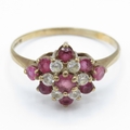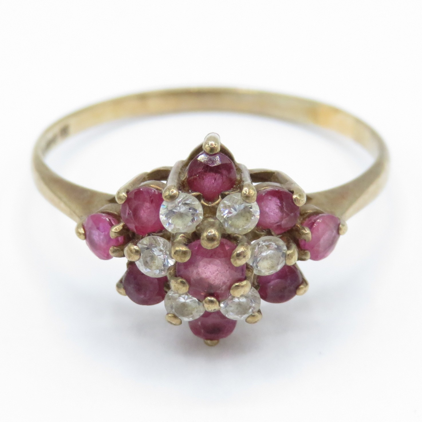 9ct Gold Ruby and Cubic Zirconia Cluster Ring (1.8g) Size P