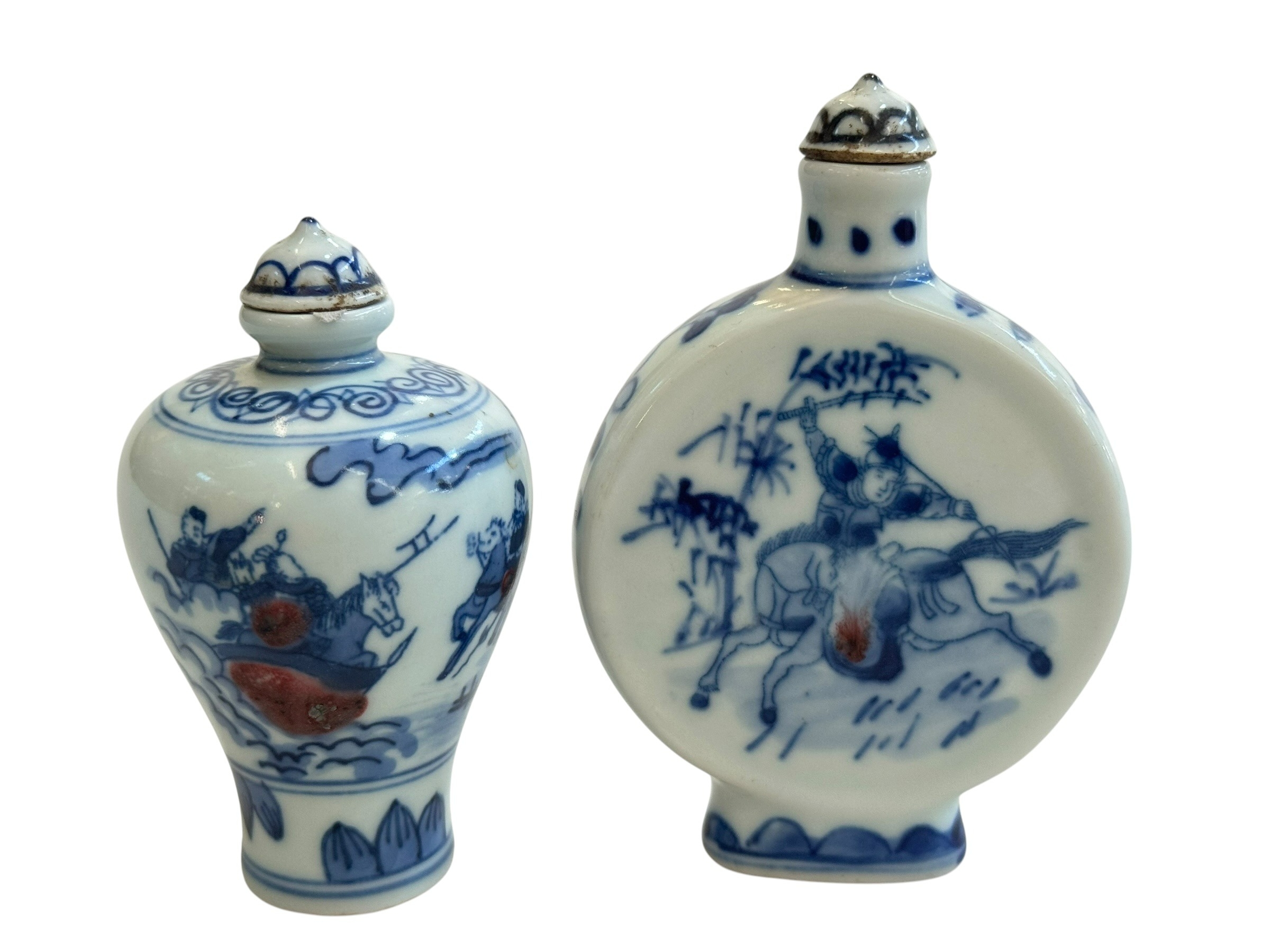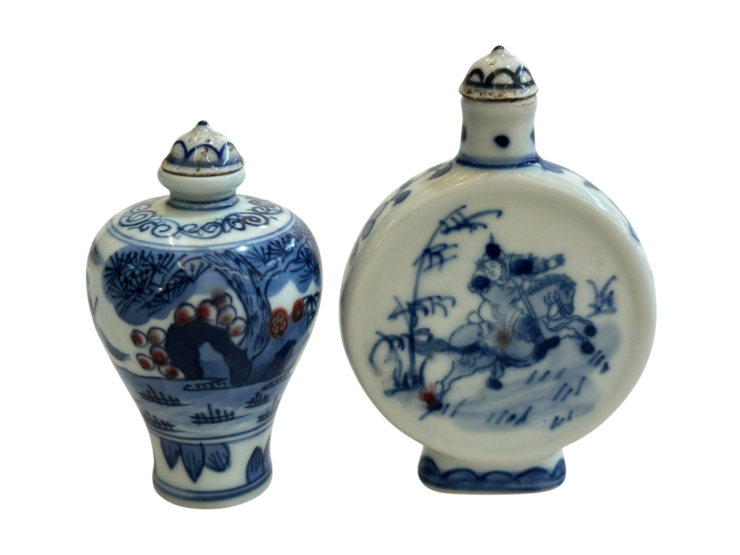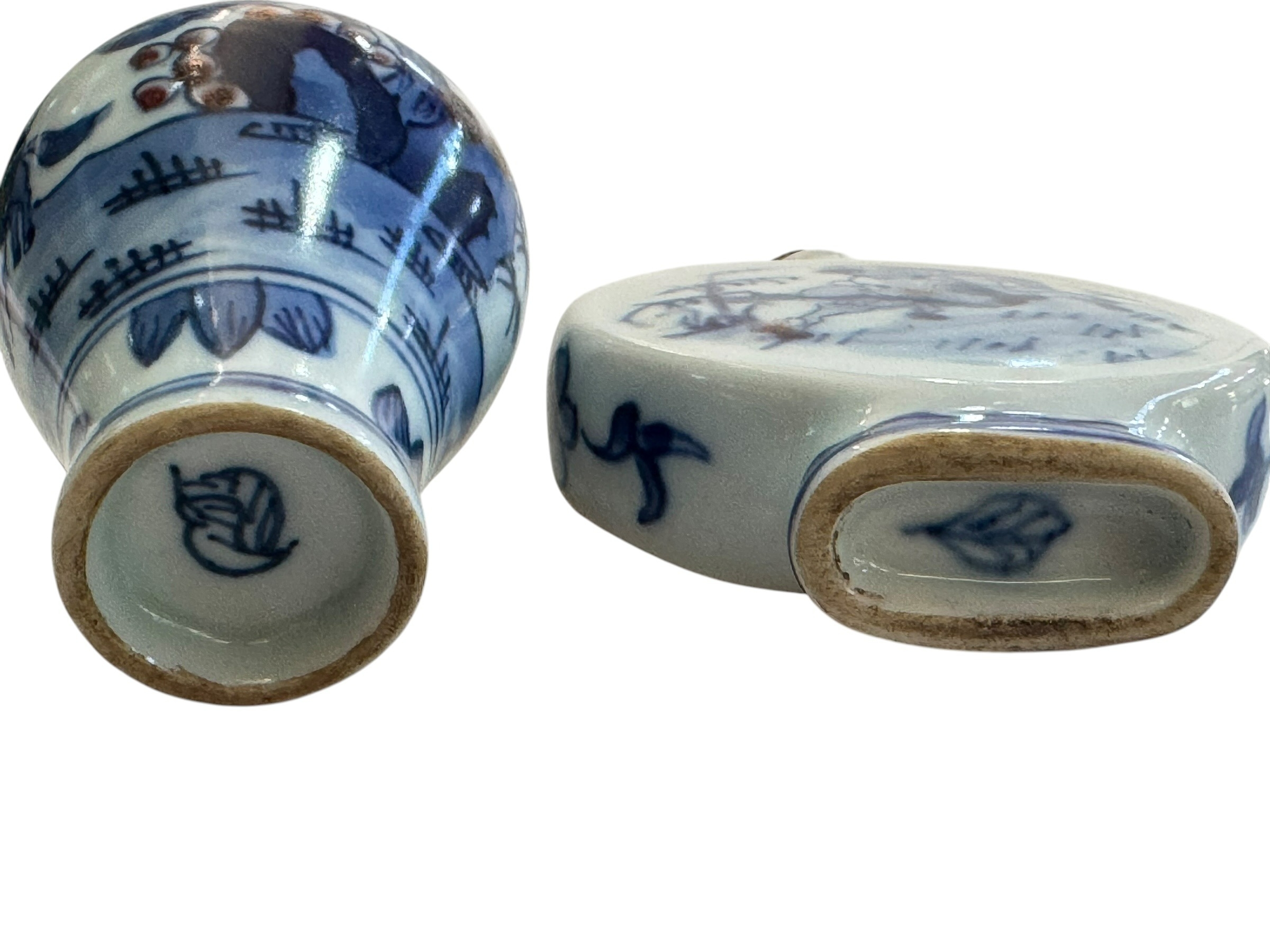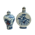 Two Chinese blue and white snuff bottles.