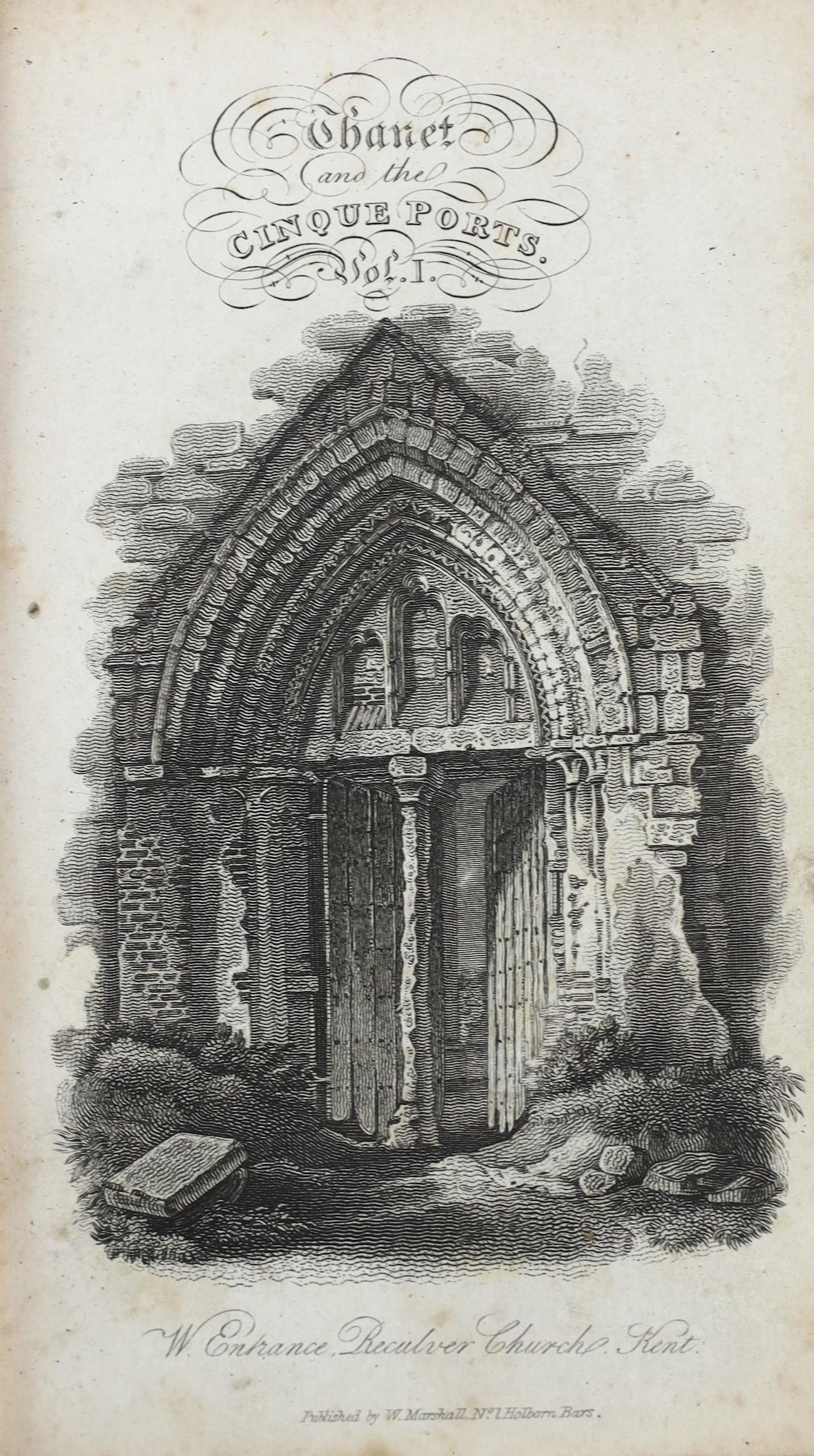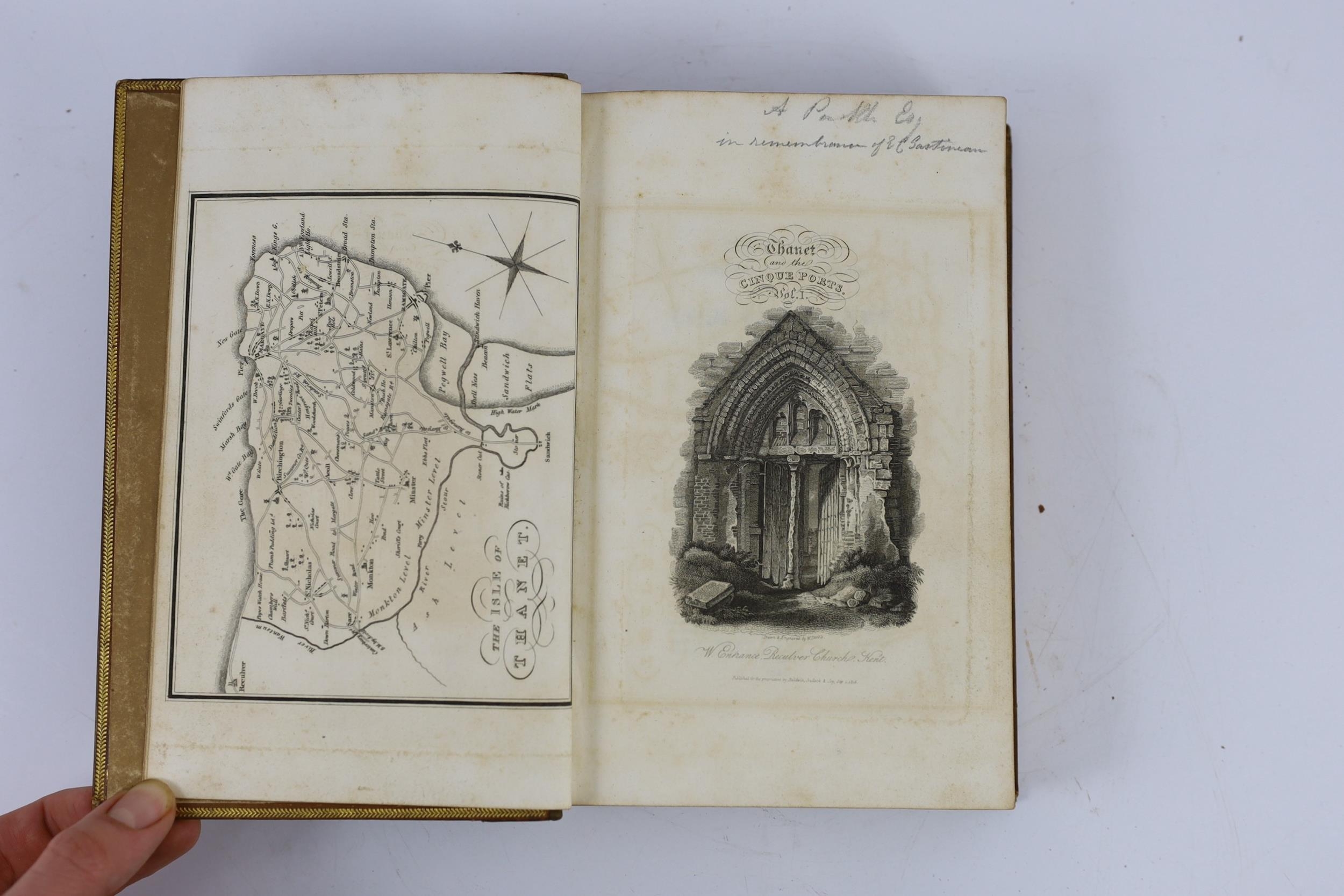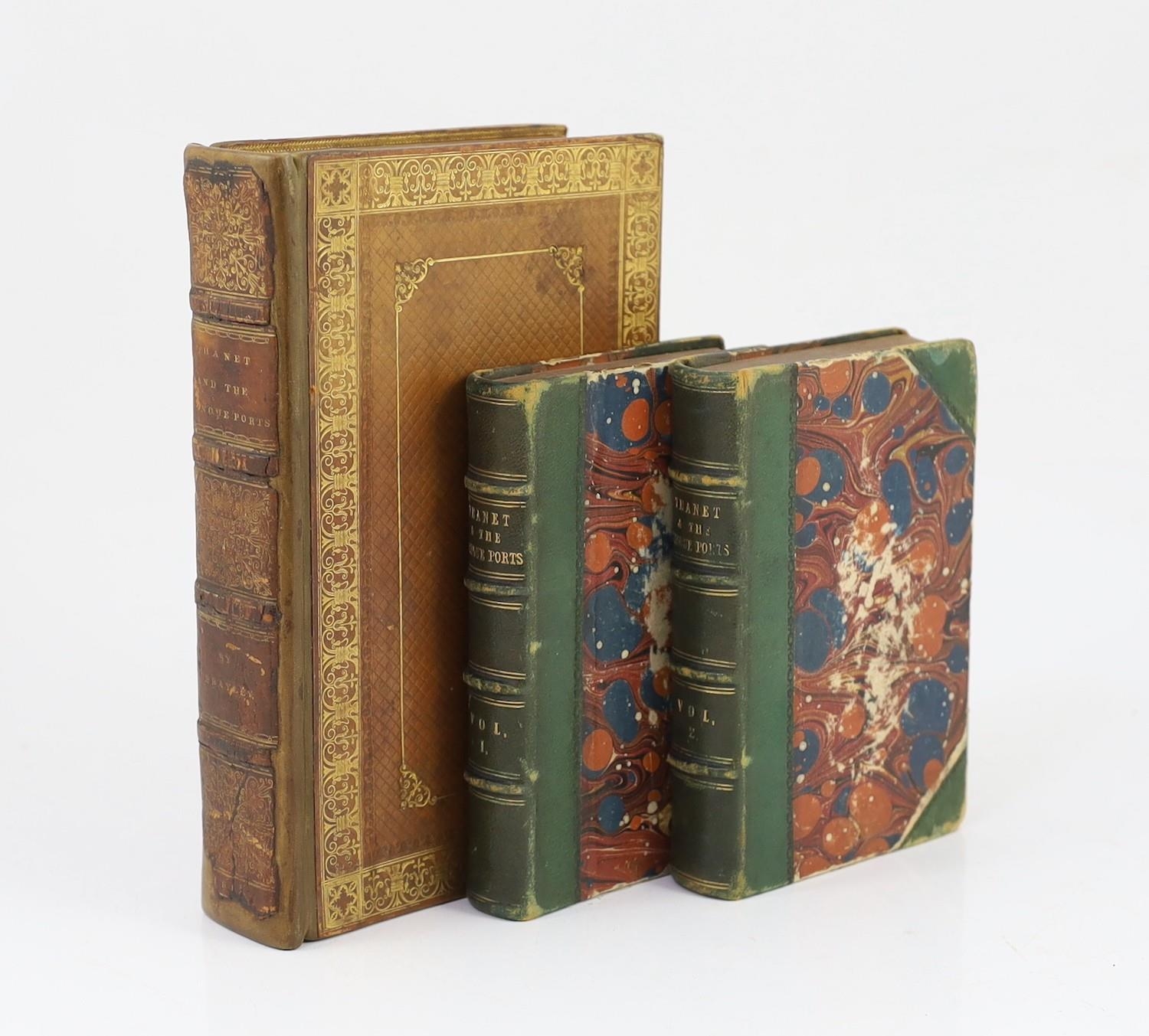 ° ° KENT: Brayley, Edward Wedlake - Delineations, Historical and Topographical, of the Isle of Thanet and the Cinque Ports ... 2 vols. (bound as one). pictorial engraved and printed titles, a map and 105 plates; contemp. gilt-decorated diced calf (rebacked preseving most of original gilt-panelled spine and labels), ge.1817-18; The Beauties of the Isle of Thanet and the Cinque Ports. 2 vols. pictorial engraved and printed titles (no pictorial vol.2), and 101 plates; contemp. green half morocco and marbled boards, gilt-ruled panelled spines, marbled e/ps., sm.8vo. 1830 (3)