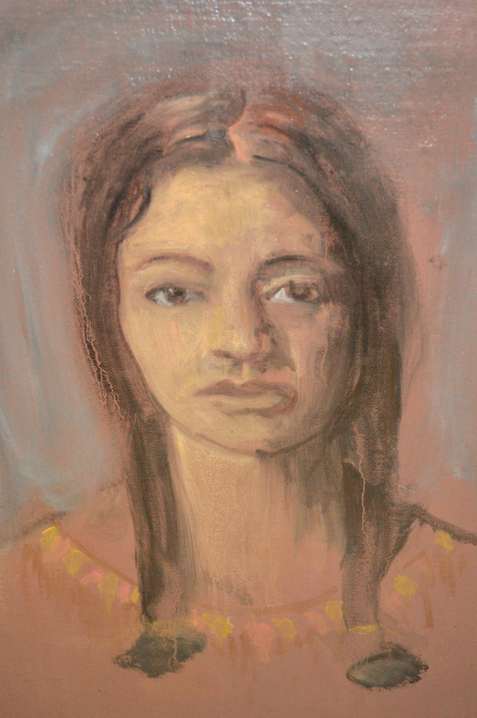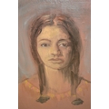 20th Century oil on canvas board, head and shoulder study of a Native Indian First Nation woman, inscribed verso Hopper, 56 x 44cm