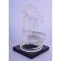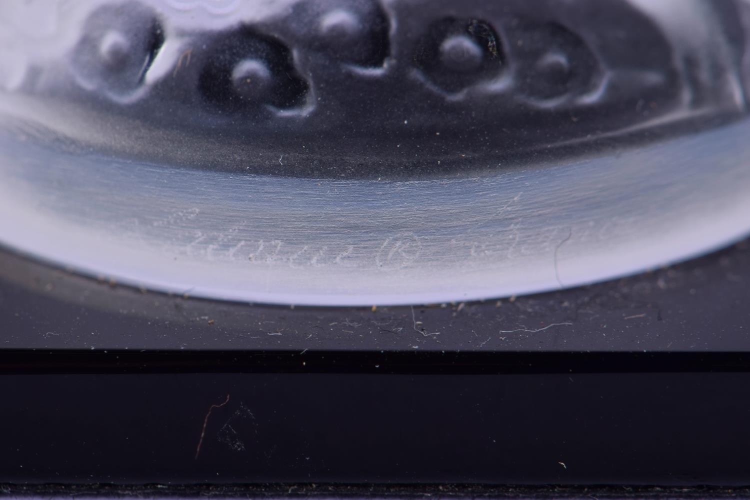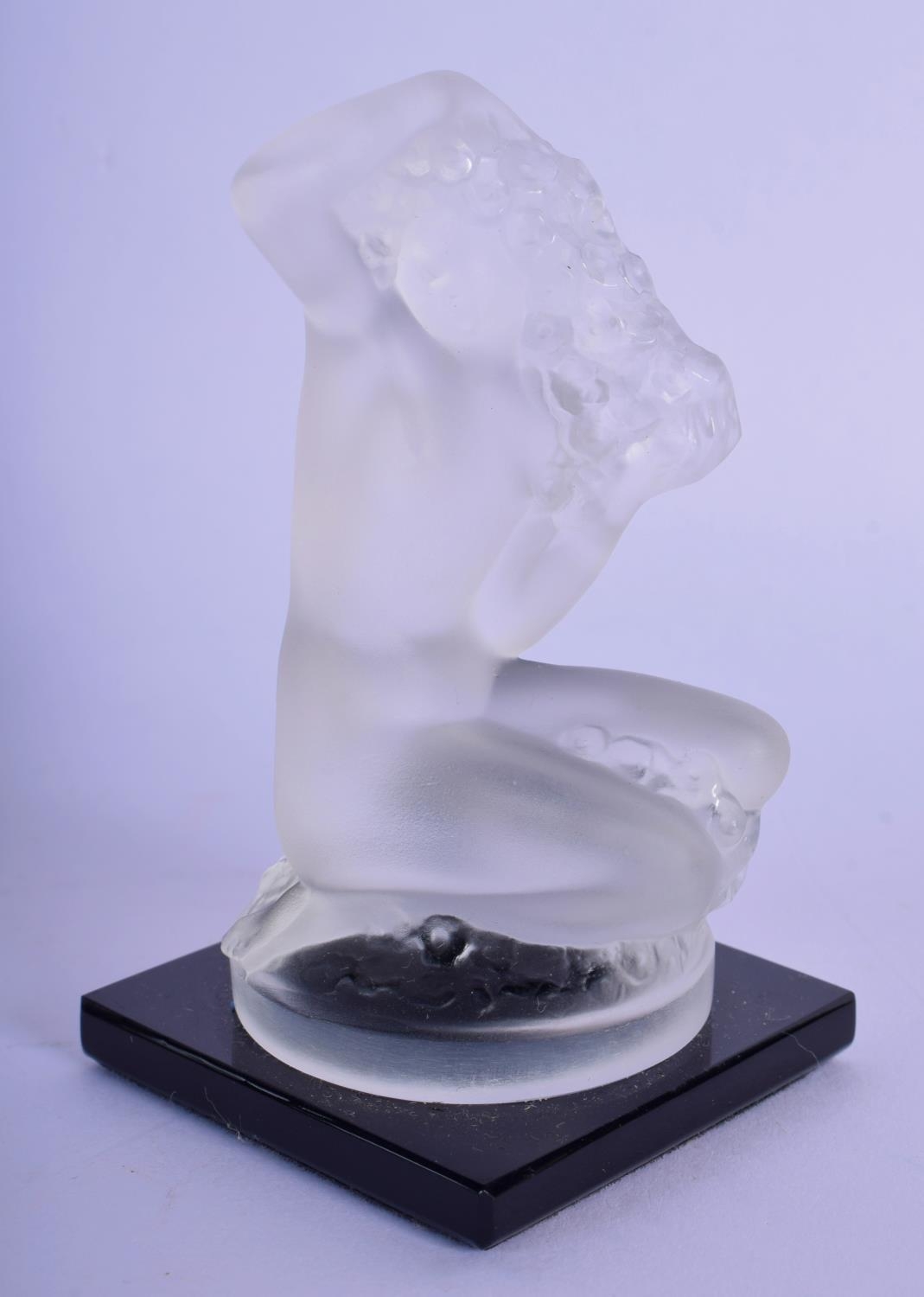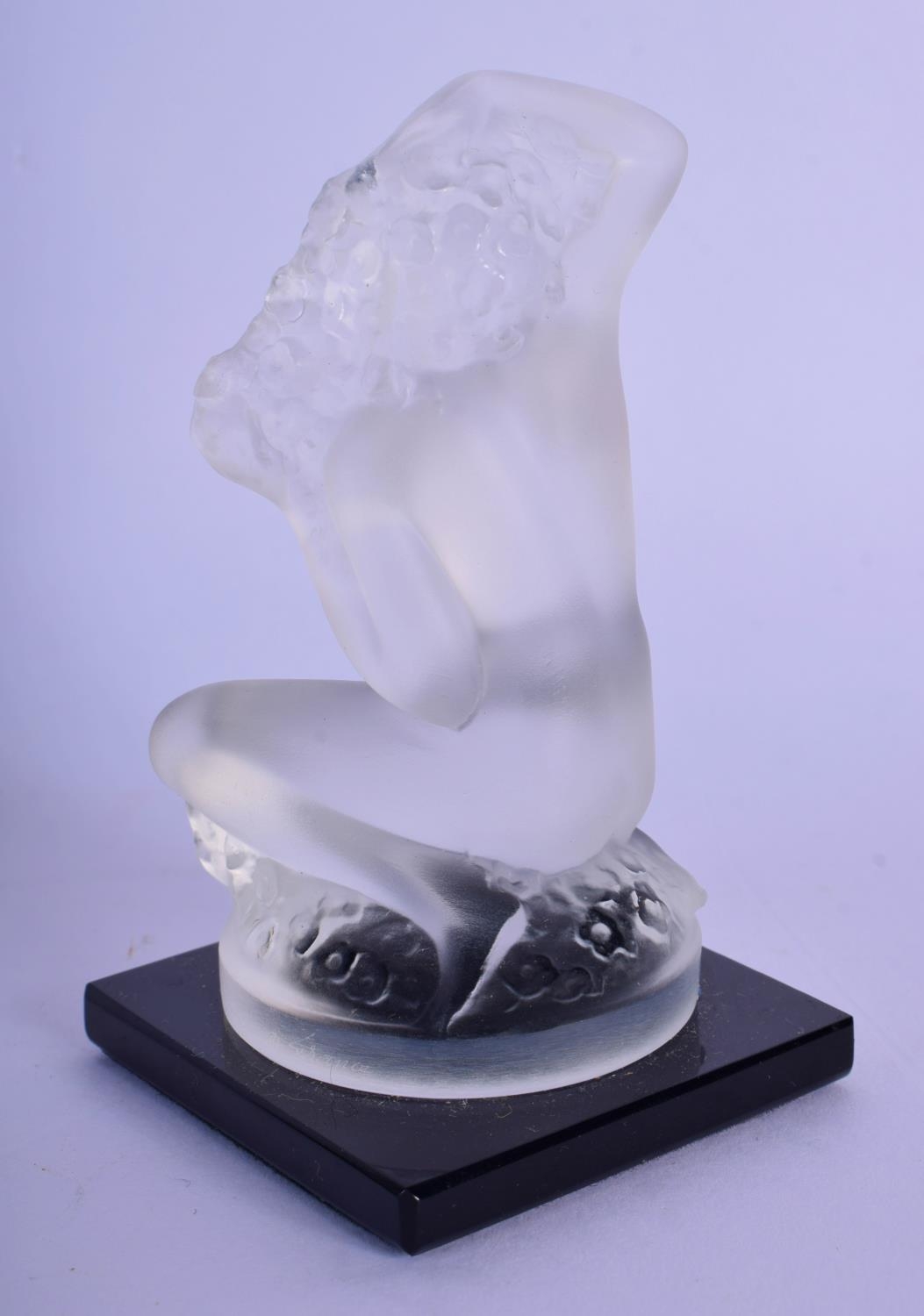 A LOVELY FRENCH LALIQUE GLASS SEATED NUDE PAPER WEIGHT. 9 cm high.