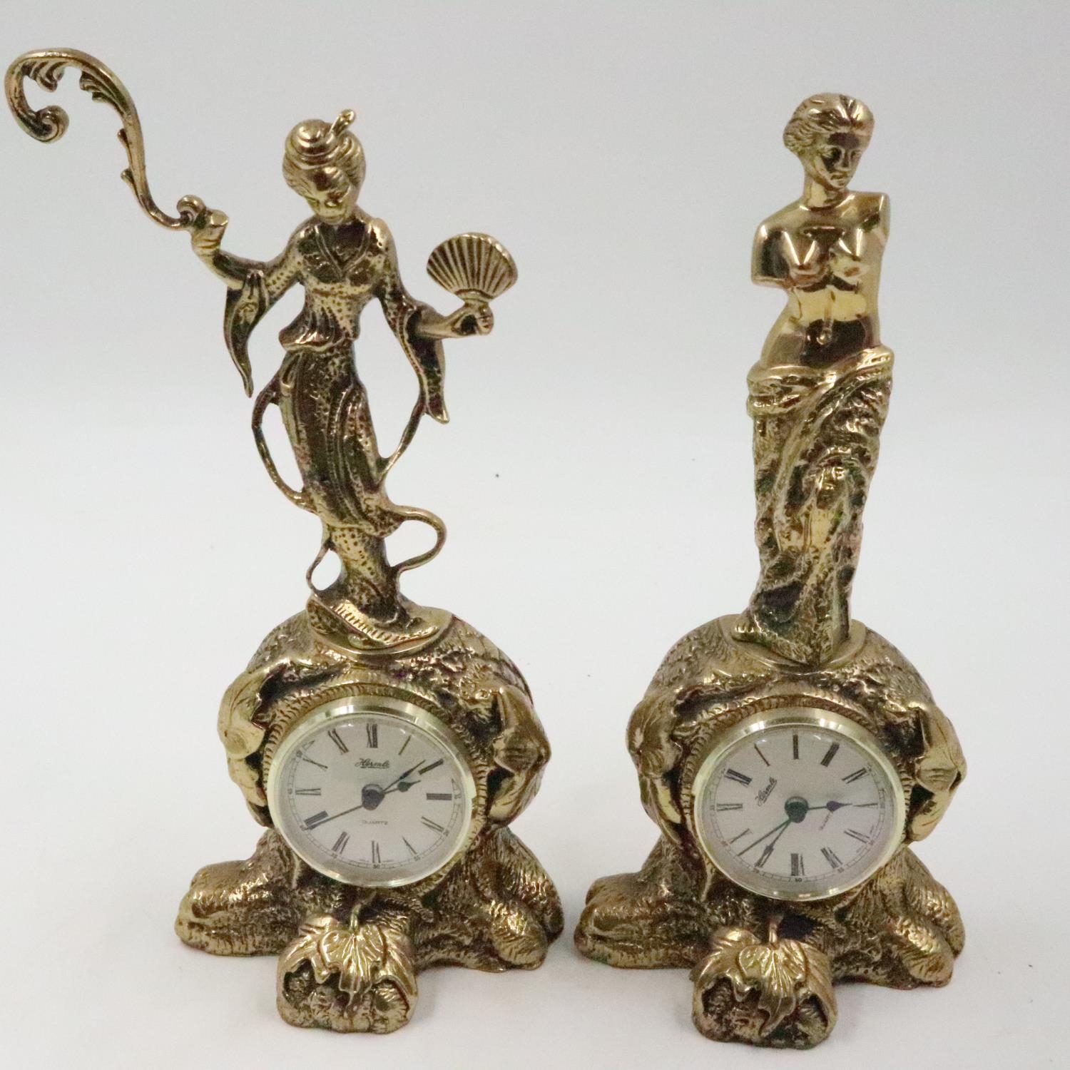 Two Hermle figural brass cased clocks. UK P&P Group 3 (£30+VAT for the first lot and £8+VAT for subsequent lots)