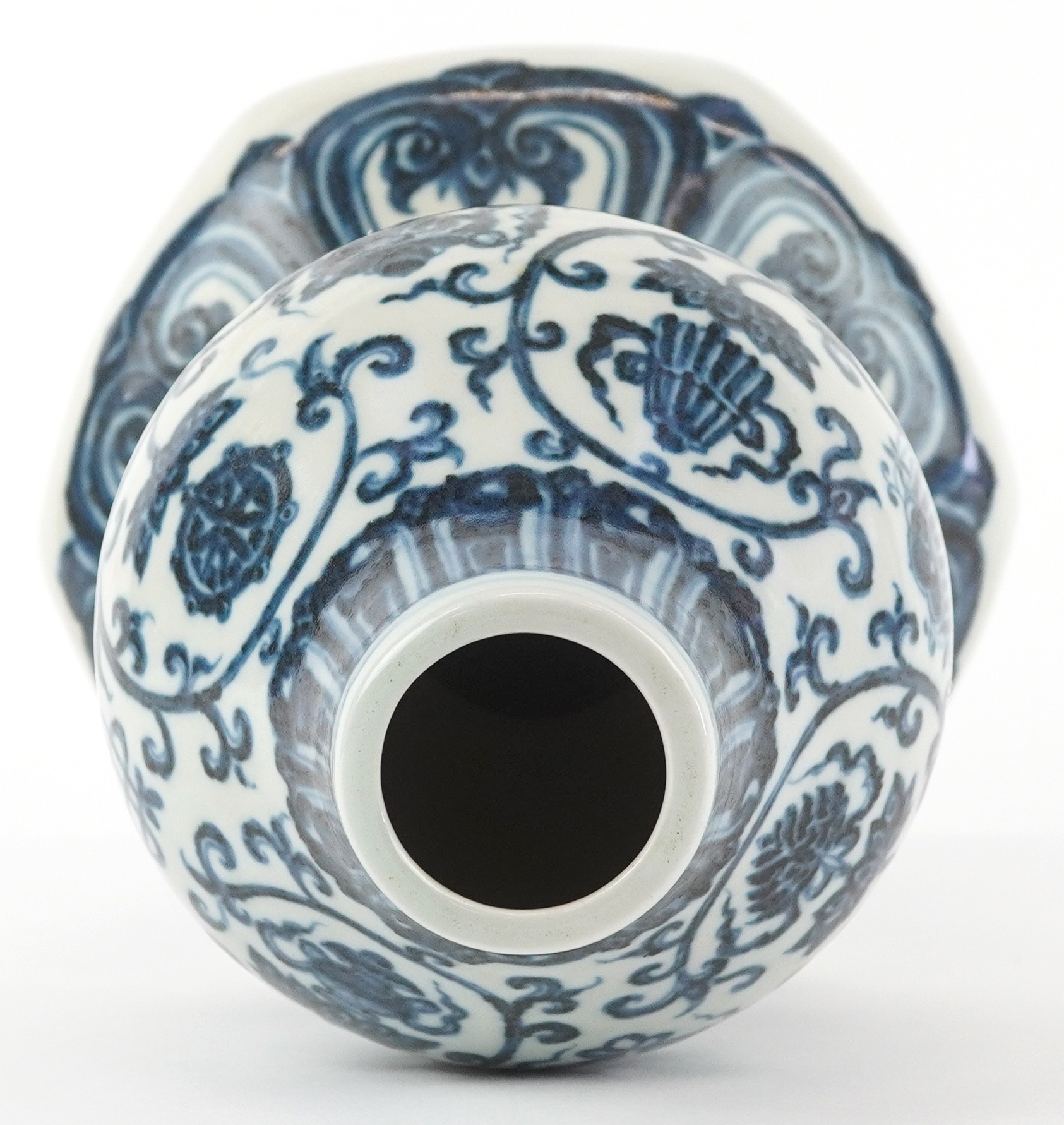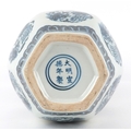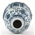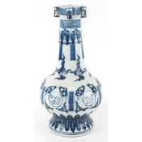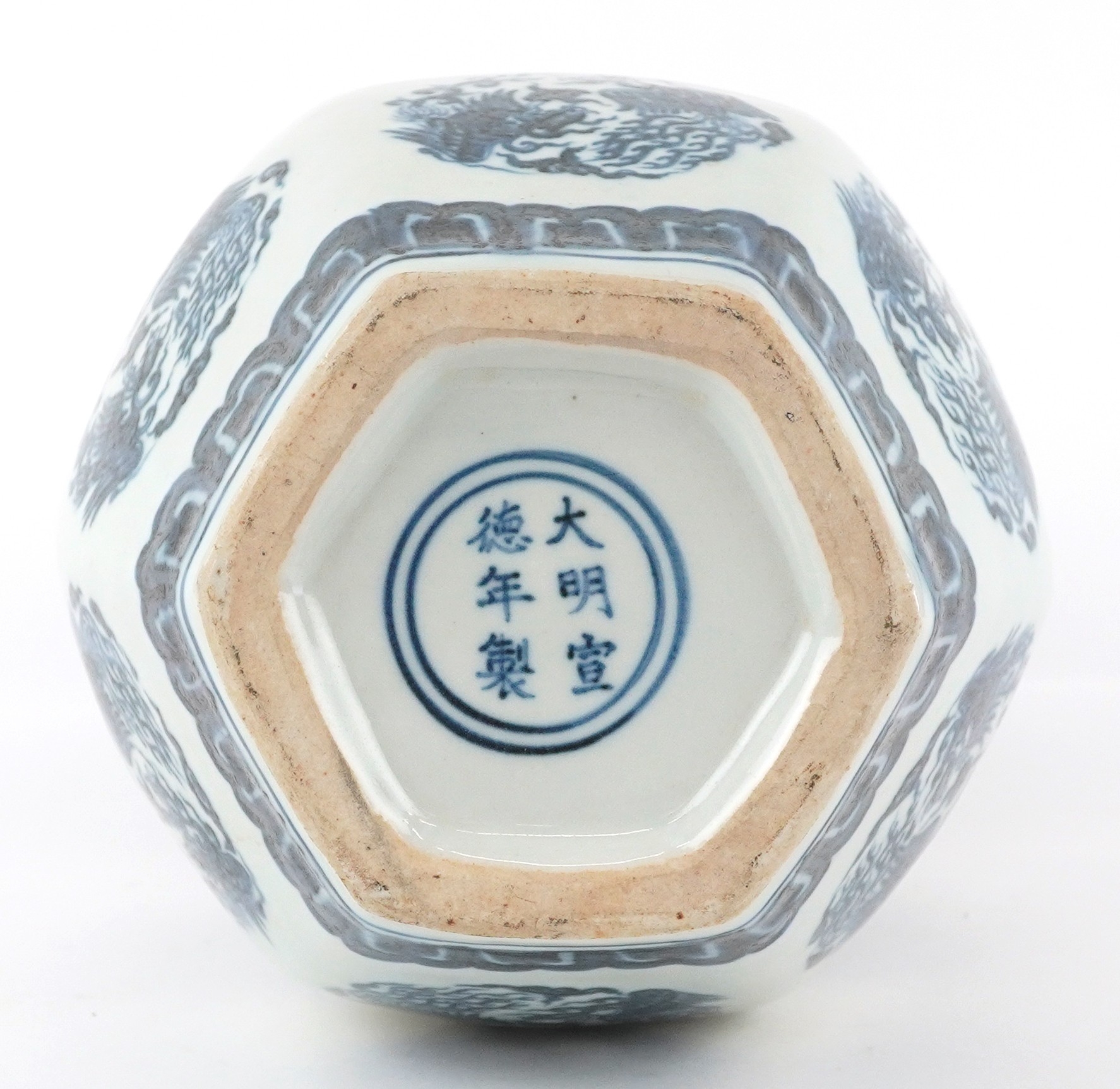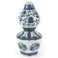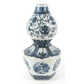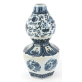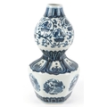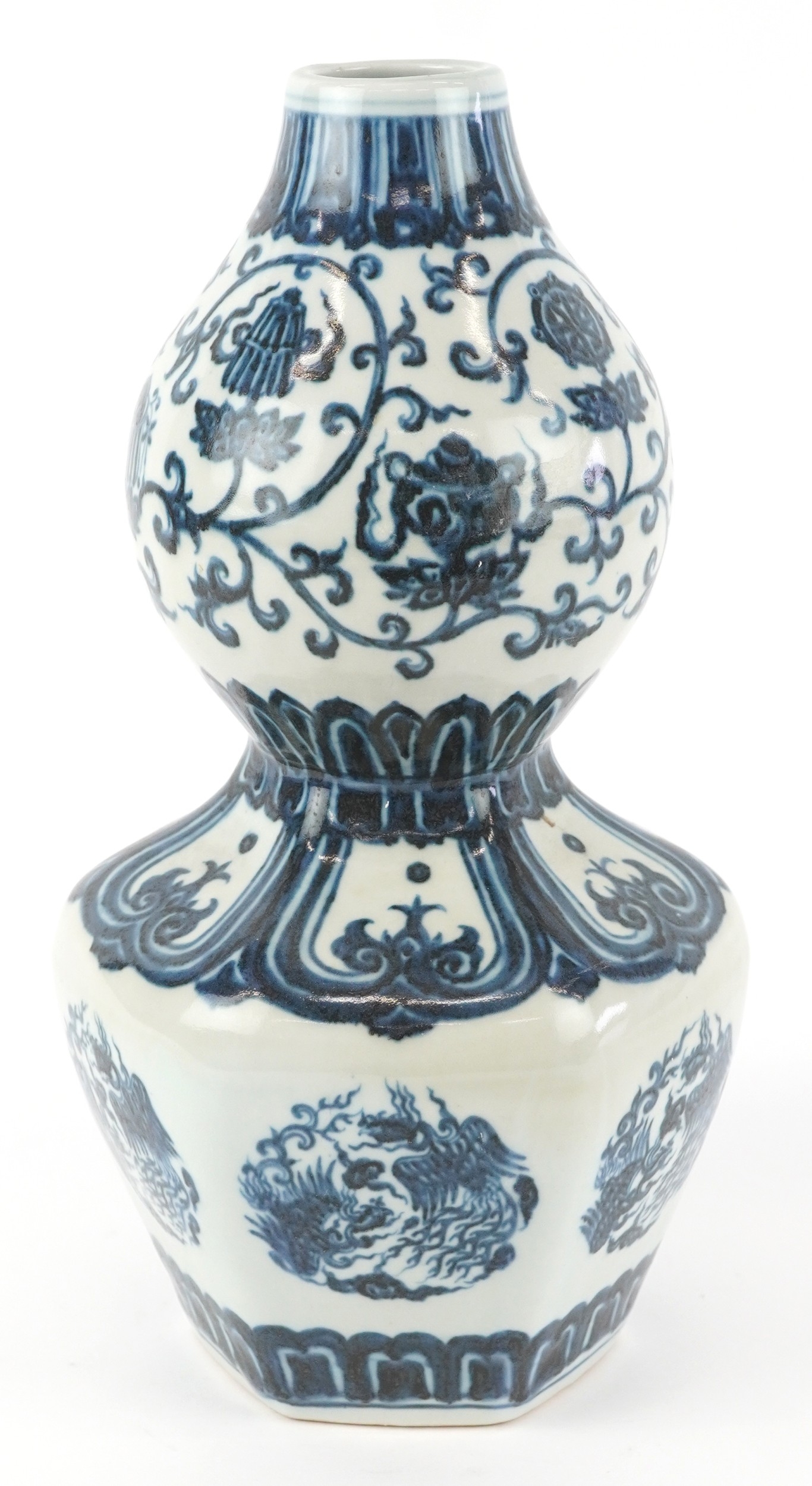 A Chinese blue and white porcelain double gourd vase hand painted with flower heads and mythical animals, six figure character marks to the base, 29cm high.