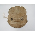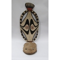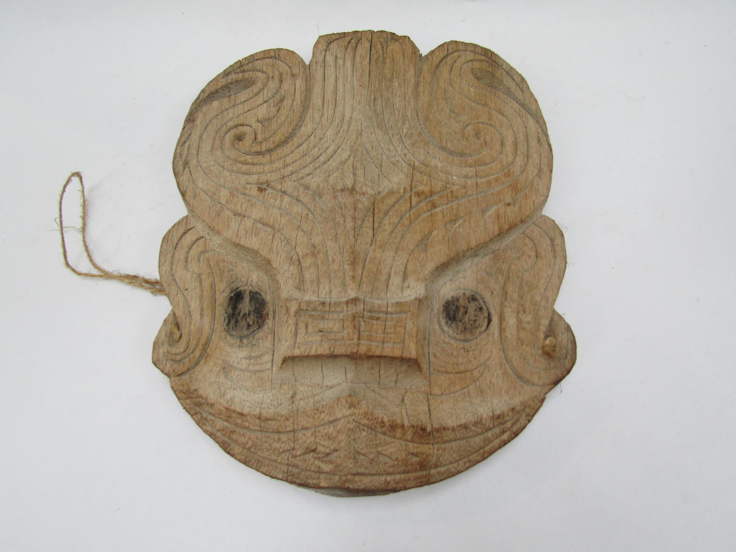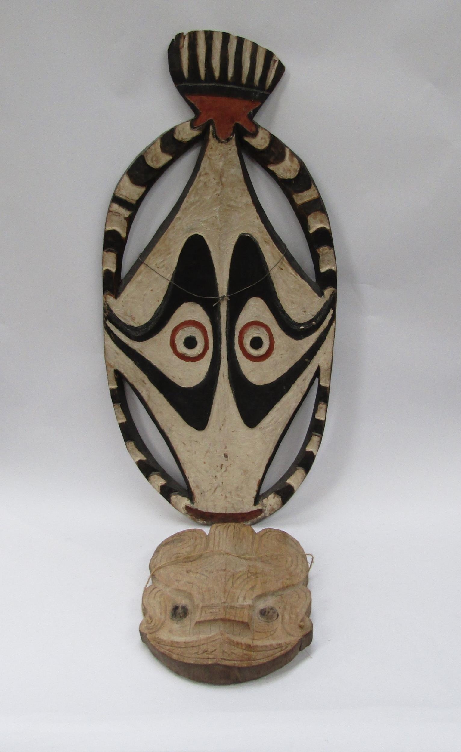 Two carved masks of two dimensional form, one painted example, 78cm & 29cm tall