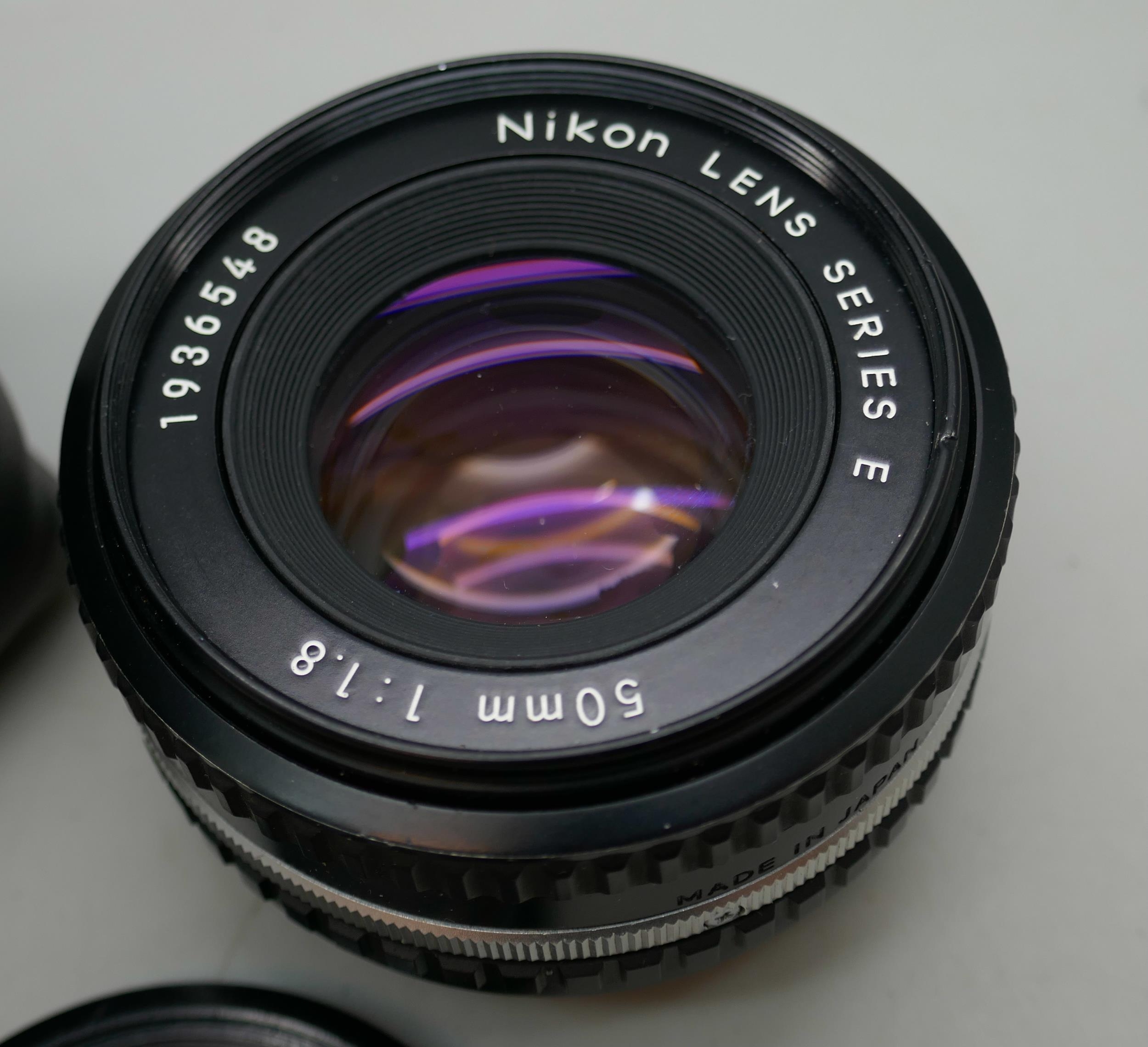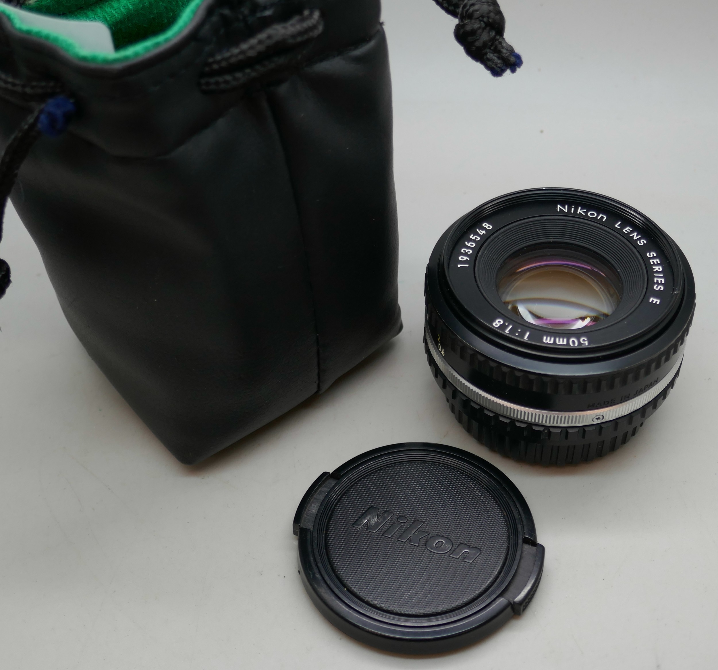 A Nikon camera lens series E. 50mm 1:18 (standard lens)