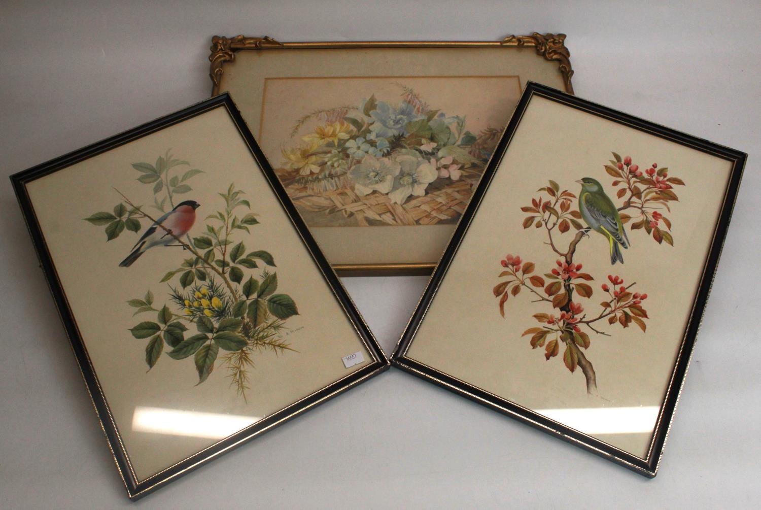 Paul Alexander Nicholas (British 1943-); two bird studies, watercolour, both 38.5x25.5cm, and a floral still life study, unsigned, watercolour, 34.5 x 24cm (3)
