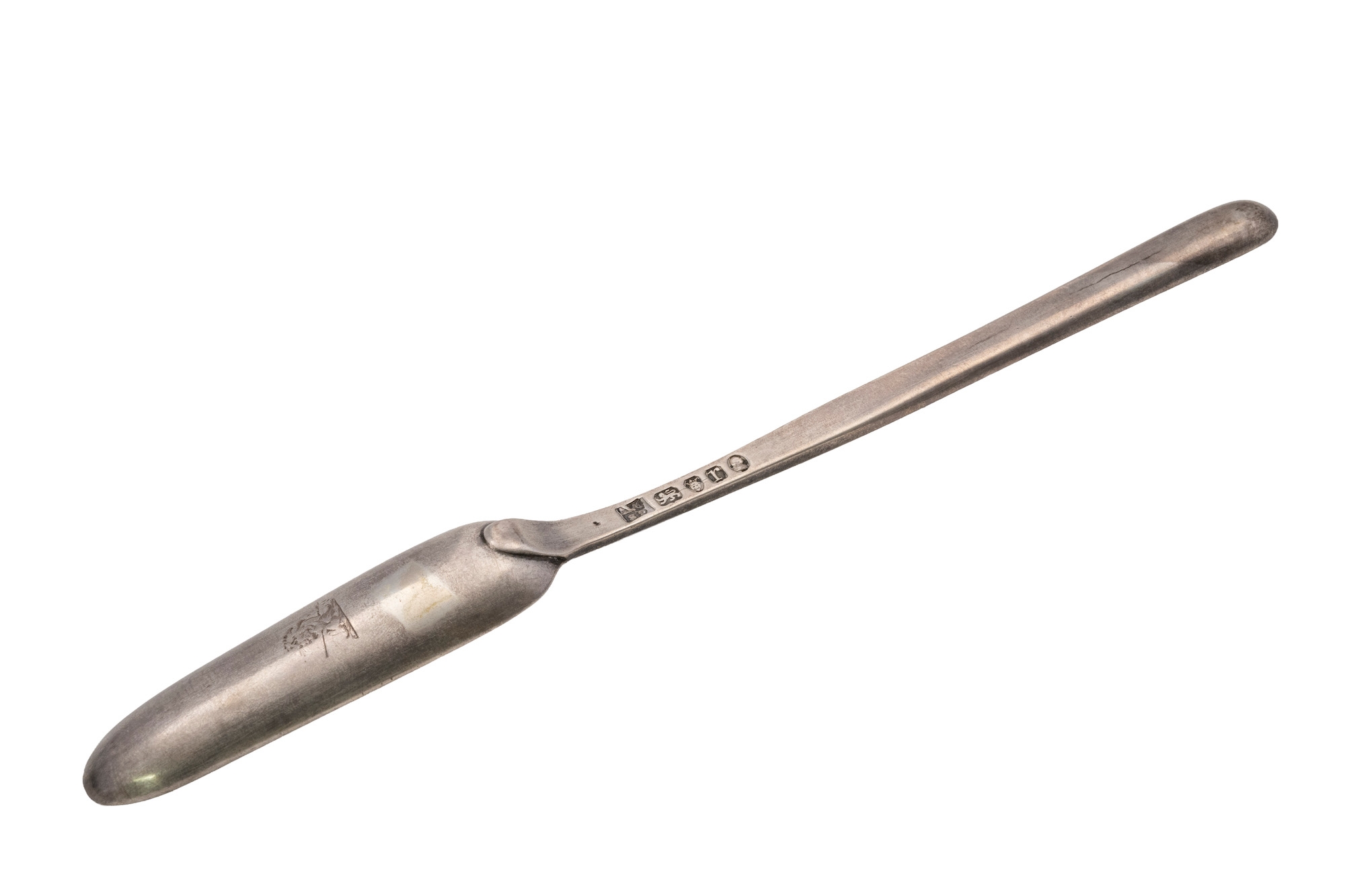 A George III silver marrow scoop, crested on the back of the bowl, by George Smith & William Fearn, London 1792; 8.1'' (20.6cm) long; 1.6ozt