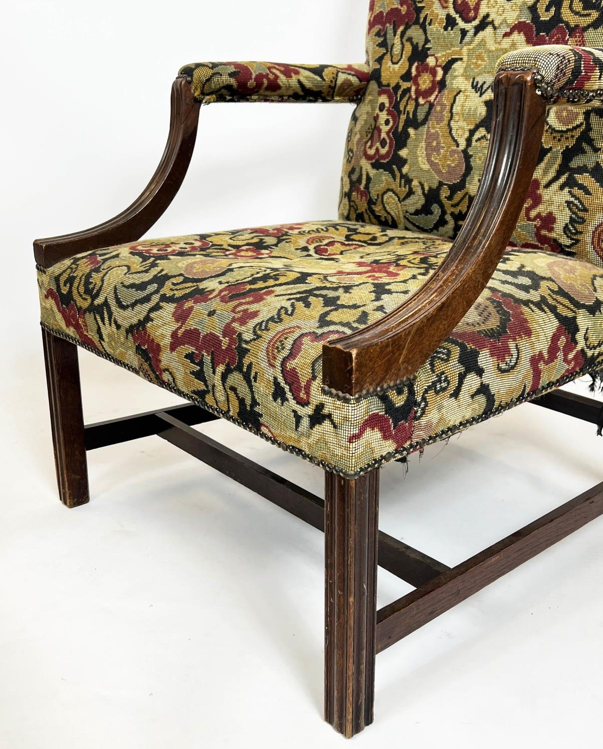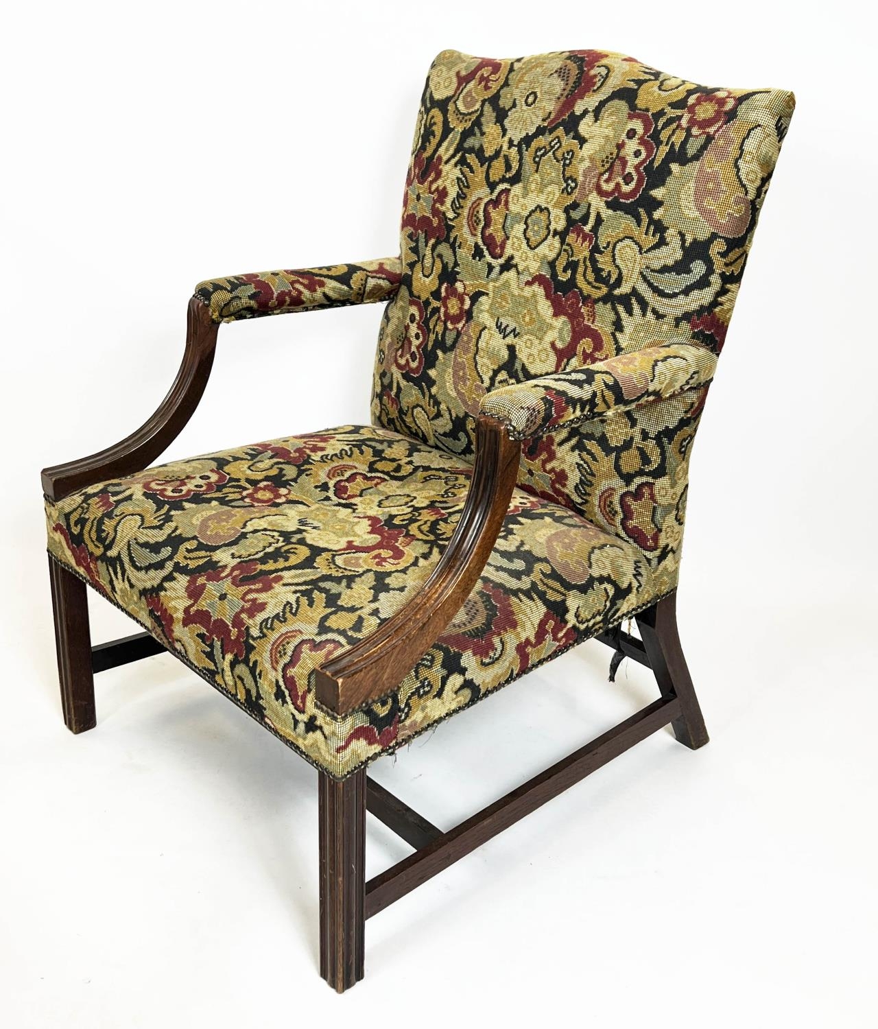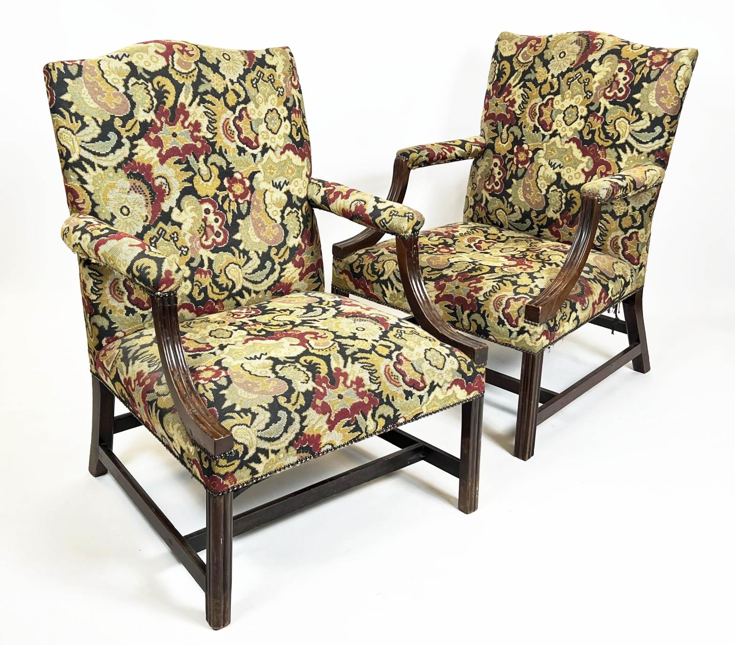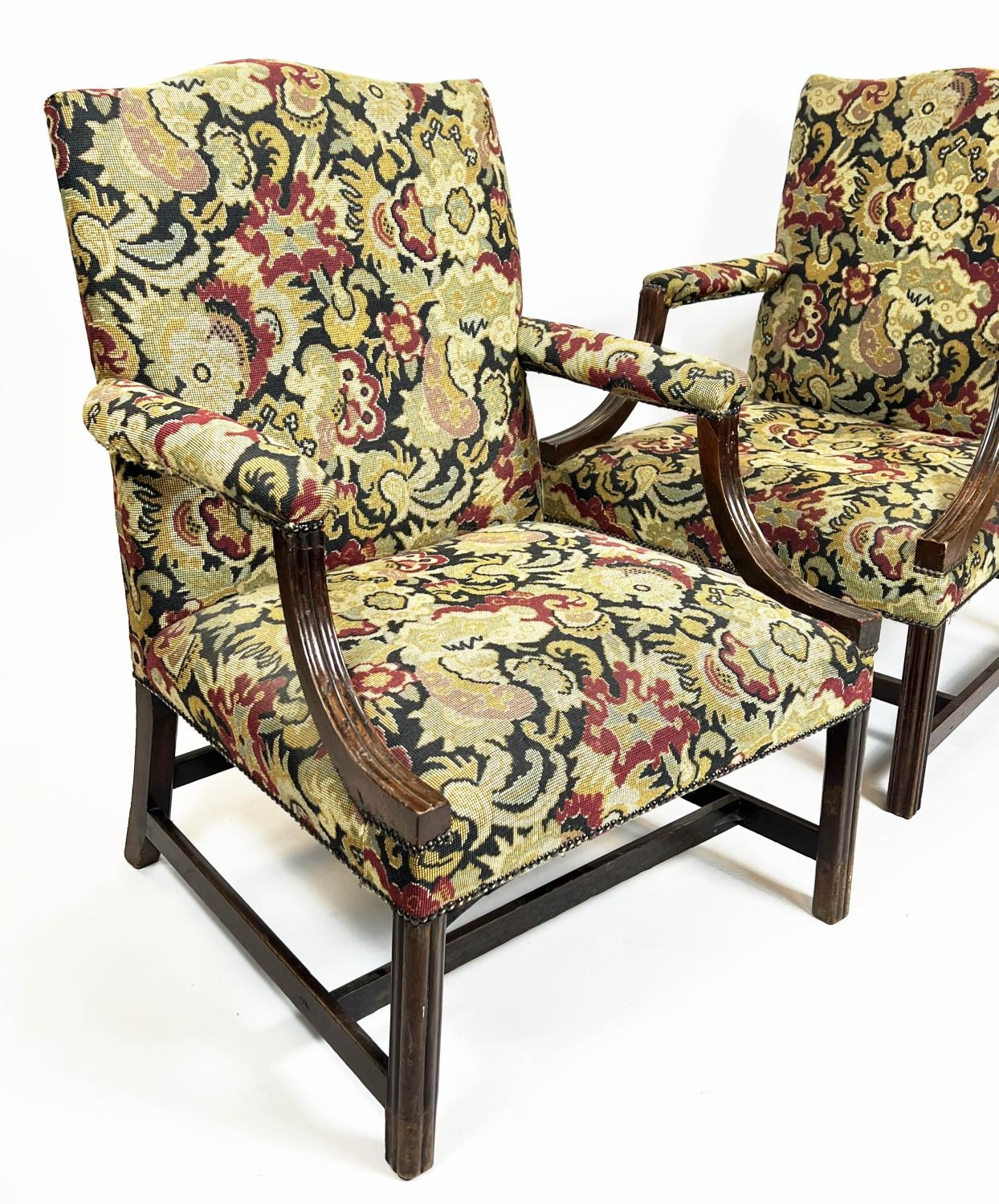 GAINSBOROUGH ARMCHAIRS, 100cm H x 72cm W, a pair, George III manner mahogany in tapestry style upholstery. (2)