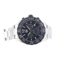 Dial features: Silver/Lume hands and hour markers. Date aperture at 4 o'clock. Sub seconds, red accents.