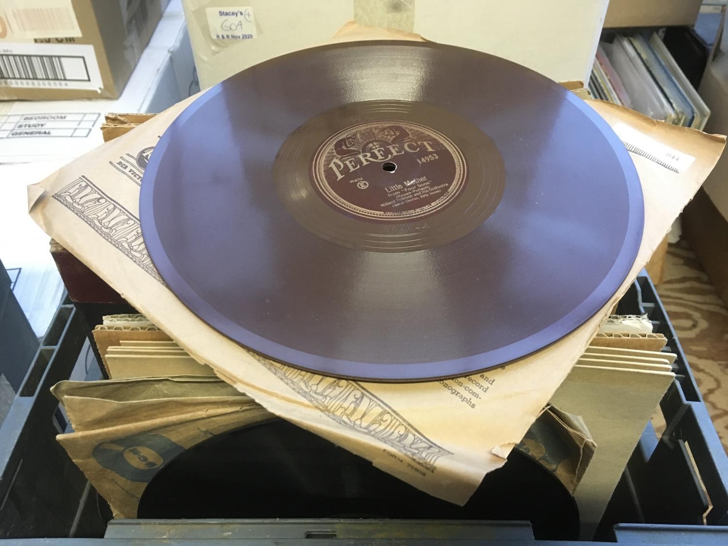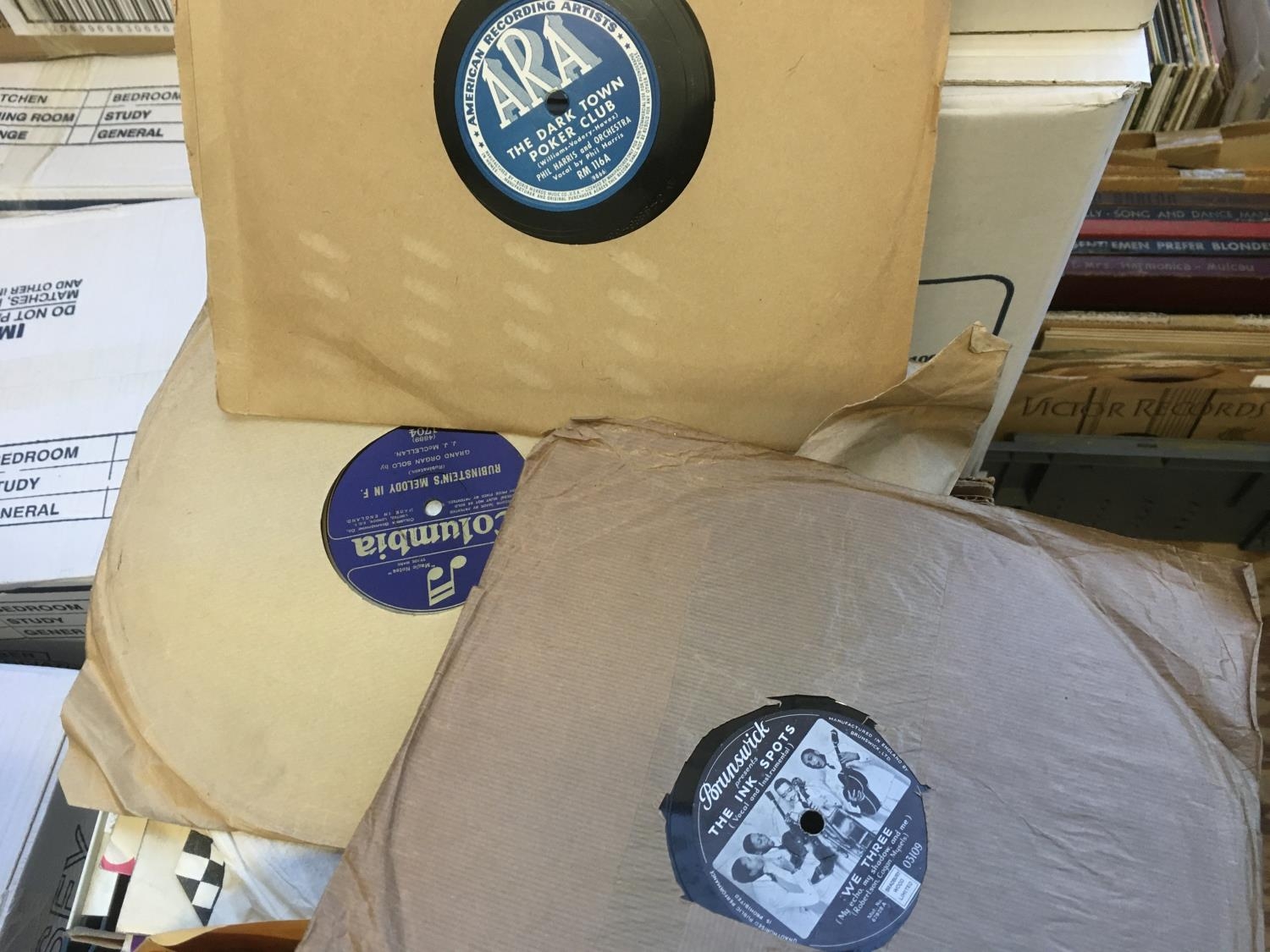 Four boxes of 78 rpm 12 and 10 inch records.