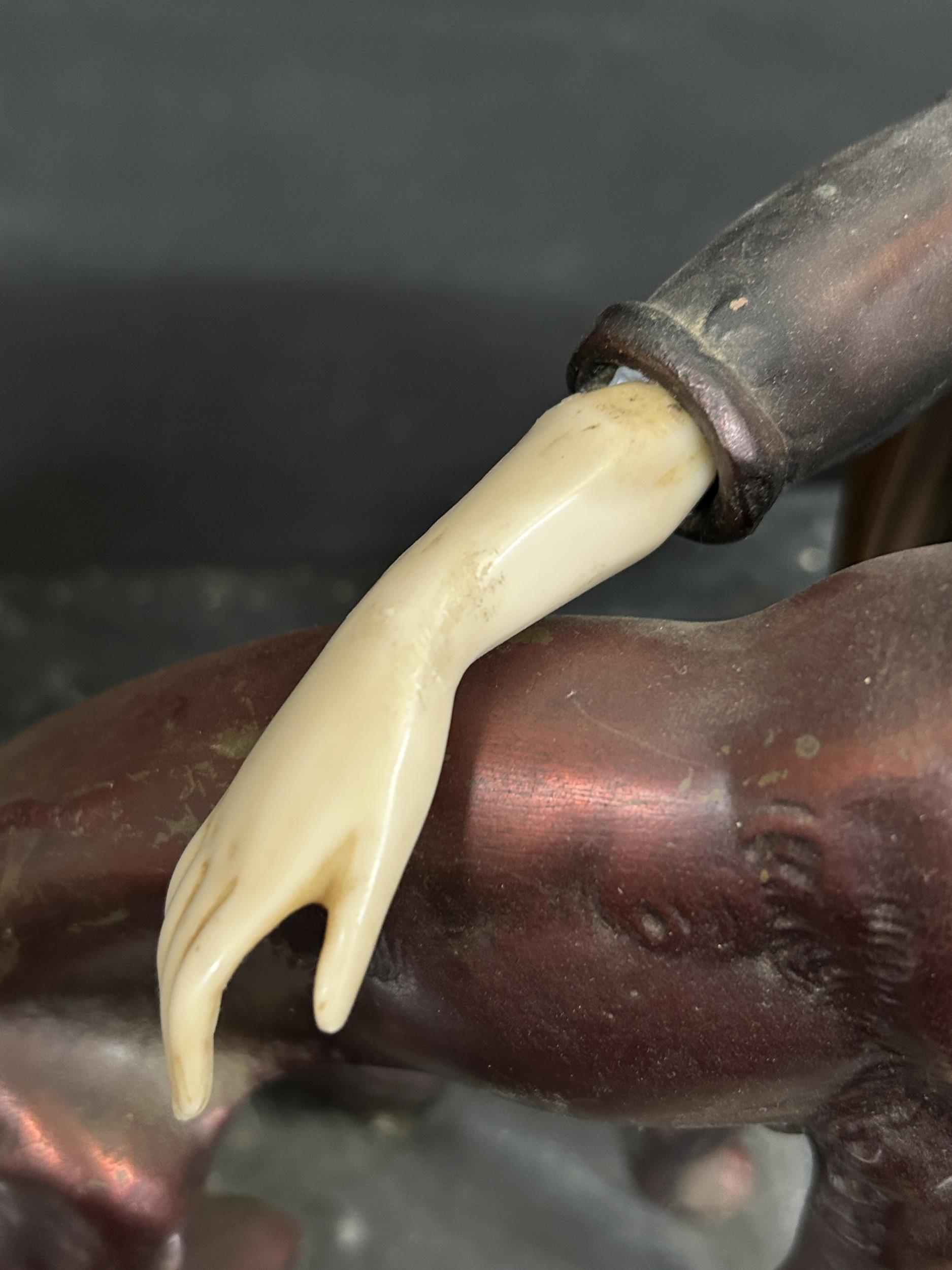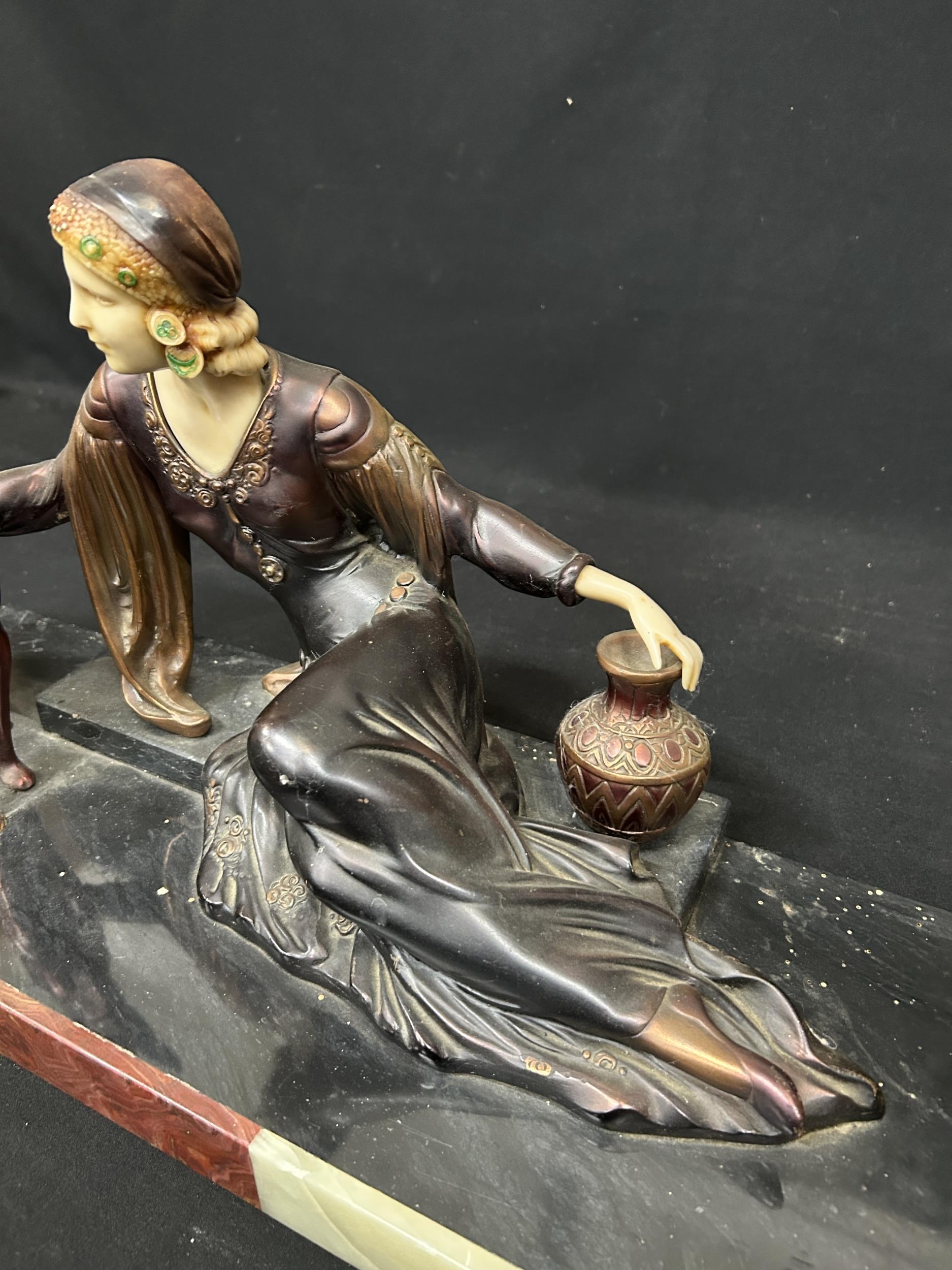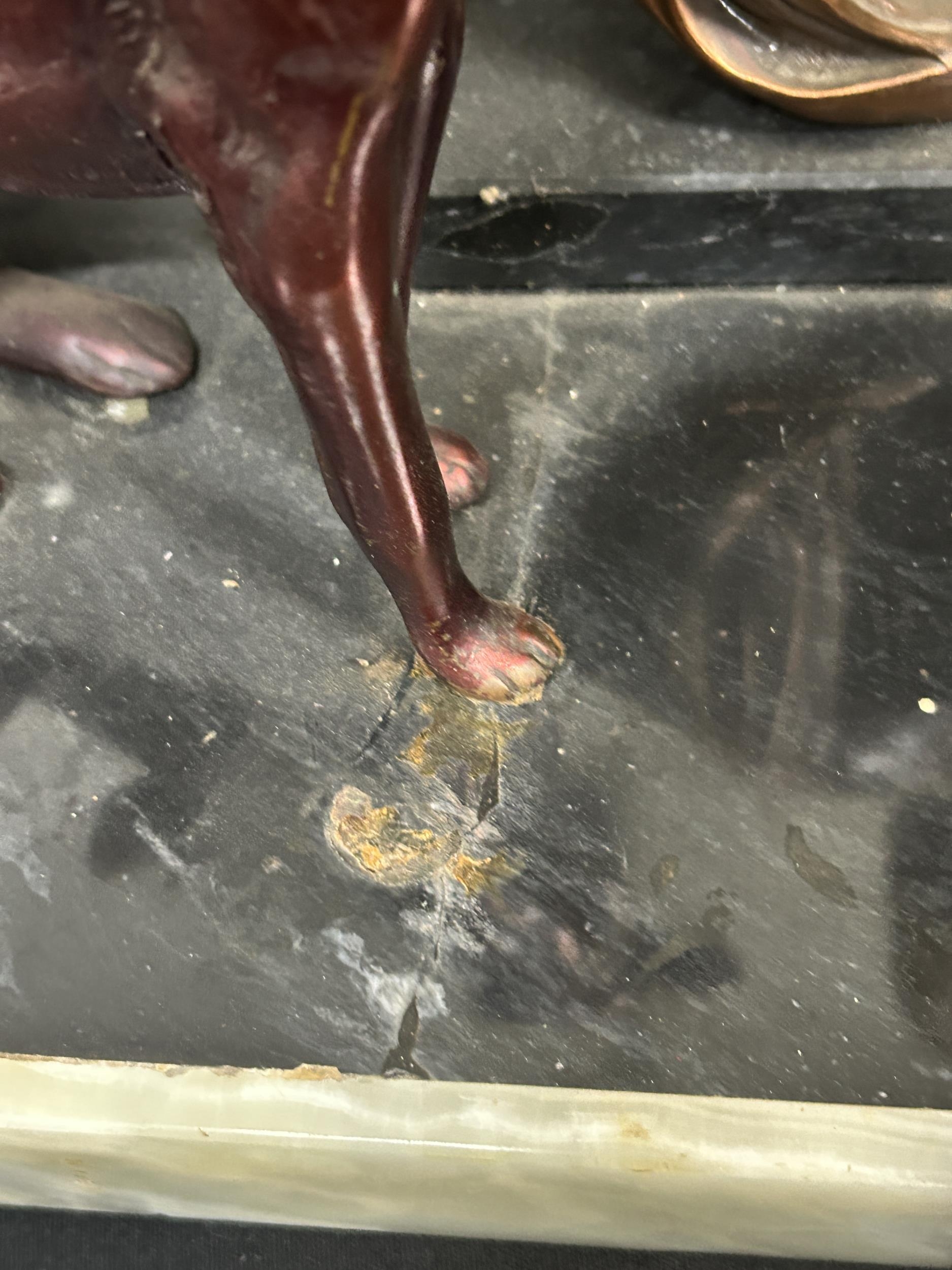 Art Deco Lady & Dog Figure, on heavy marble base, length 58 cms, width 21 cms