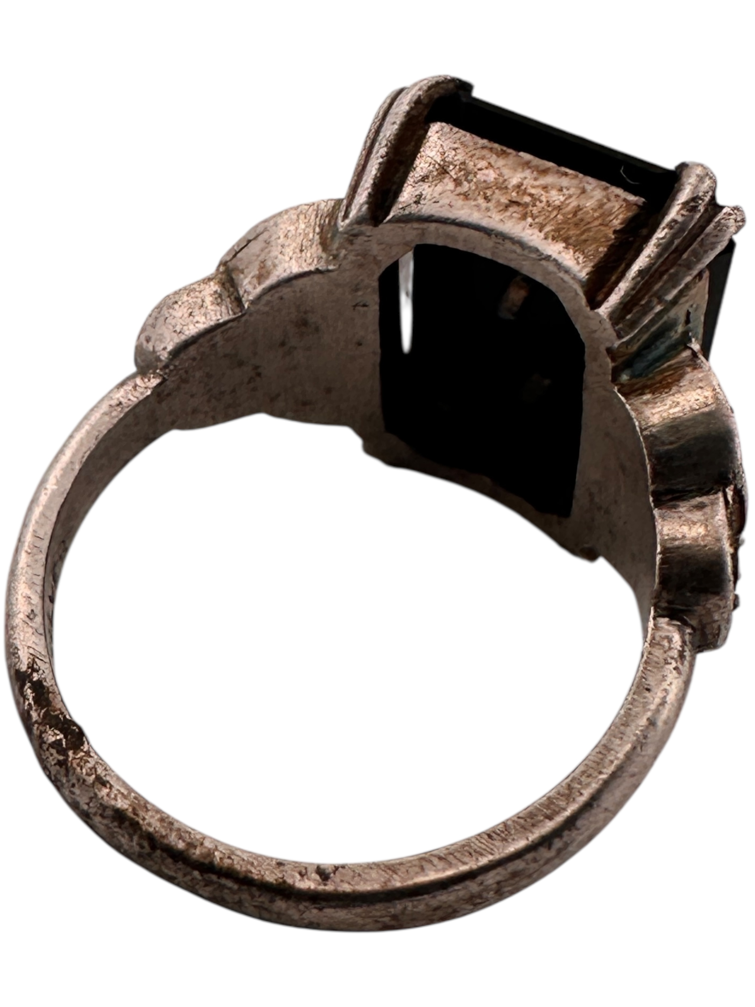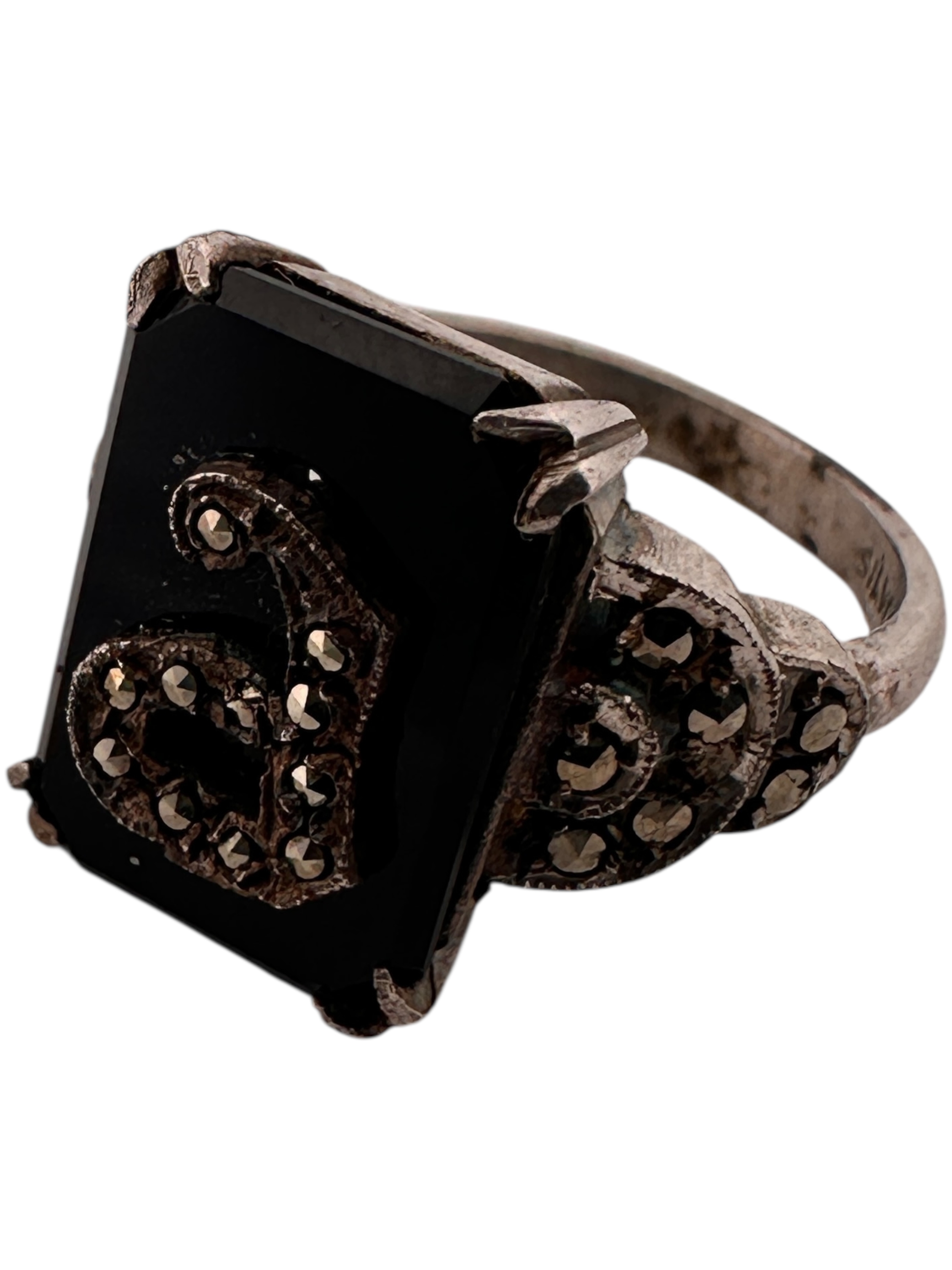 Unusual 1930's Art Deco Silver and Marcasite Initial Ring, Letter A. Stamped 'Silver'. Size L. 5.8g