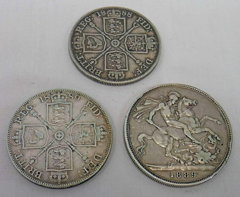 1889 VICTORIA CROWN & 1888 AND 1889 VICTORIA DOUBLE FLORINS