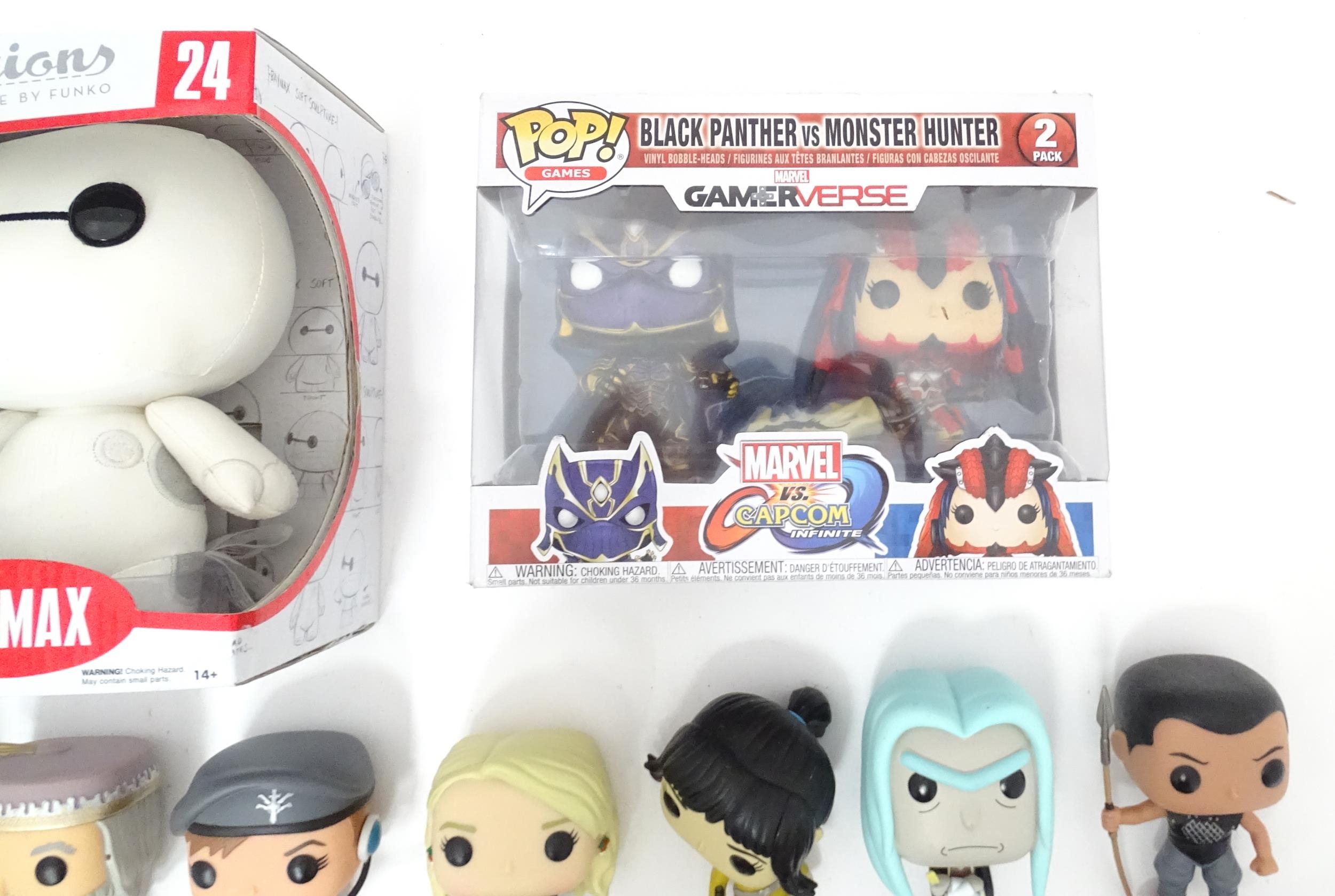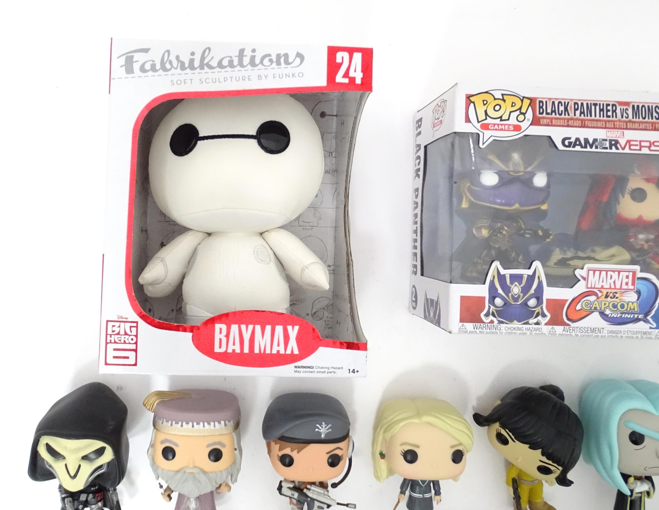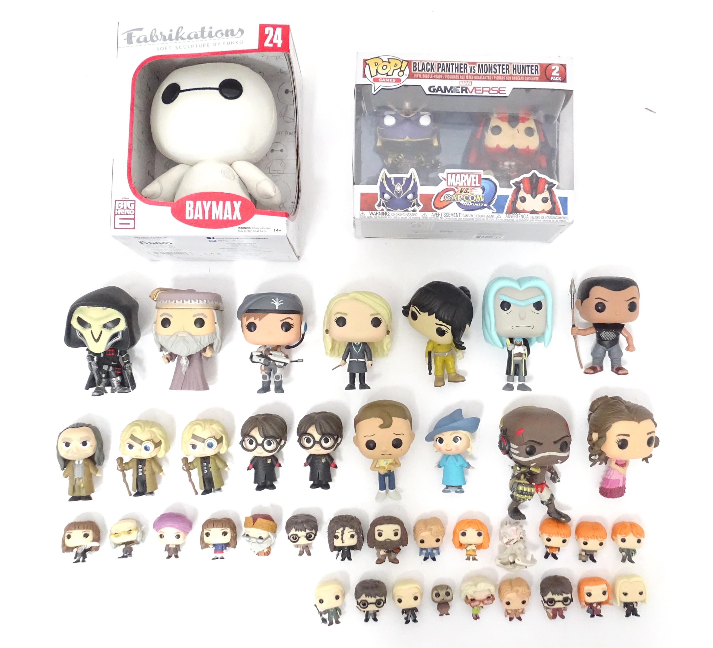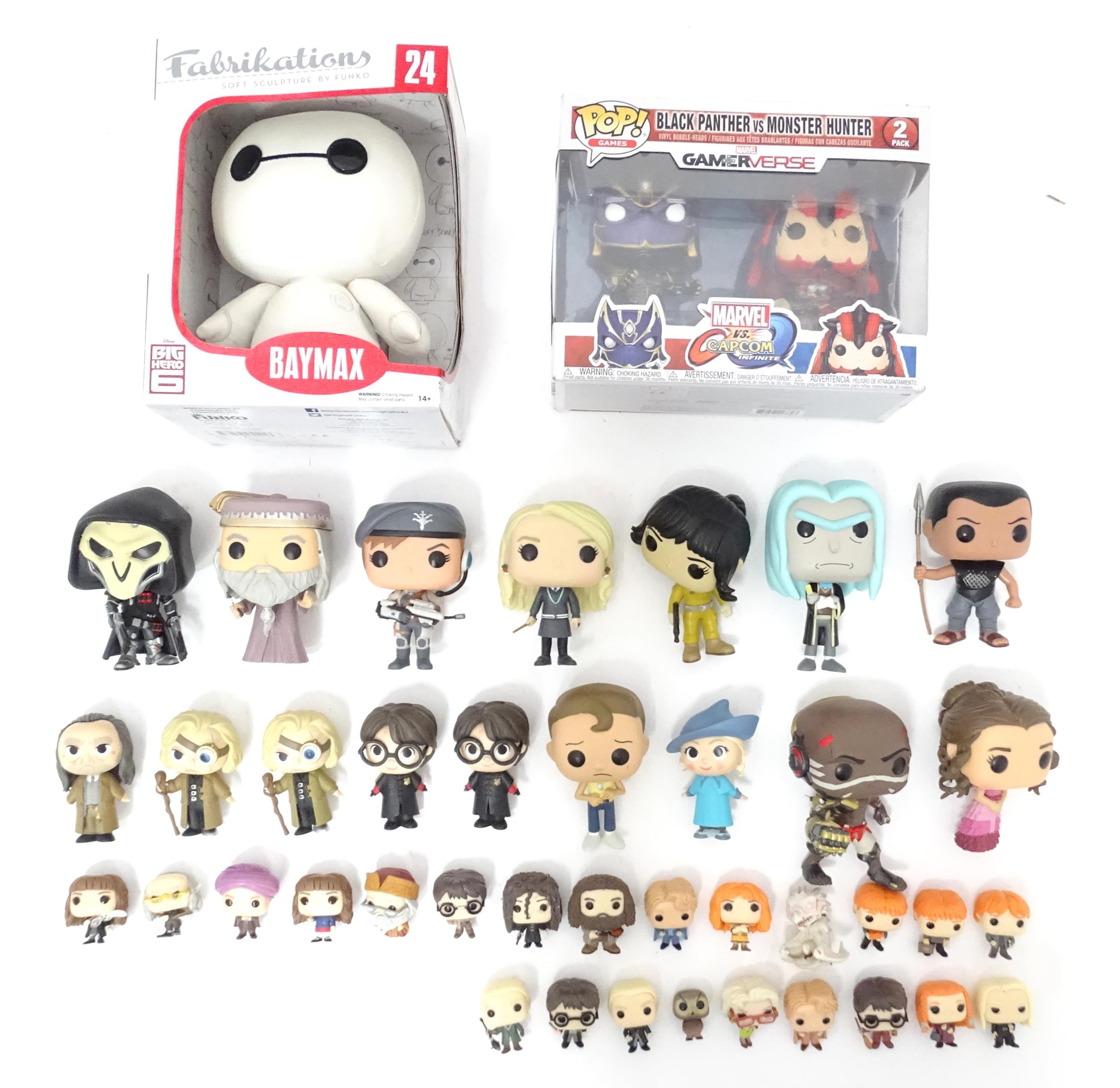 Collectors toys : A quantity of Funko POP! toys to include a boxed Baymax, a boxed Black Panther vs Monster Hunter and an assortment of unboxed Funko Bitty POP! characters to include Harry Potter, Ron Weasley, Draco Malfoy, Hermione Granger etc.