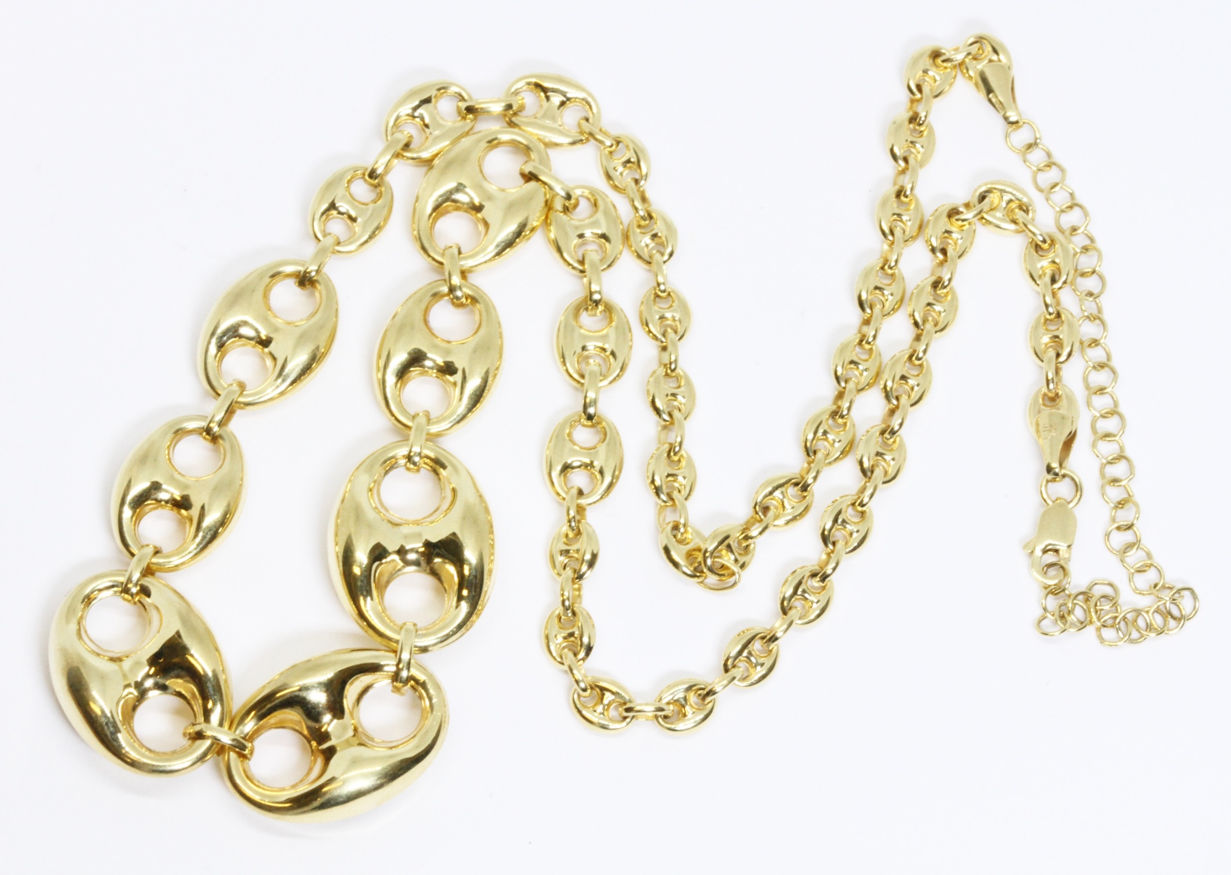 A graduated anchor link necklace, marked '9K', length 44cm, weight 13.3g.