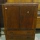 Mid Oak Low Boy with pair cupboard doors over 3 drawers, staged geometric supports, Art Deco style carving