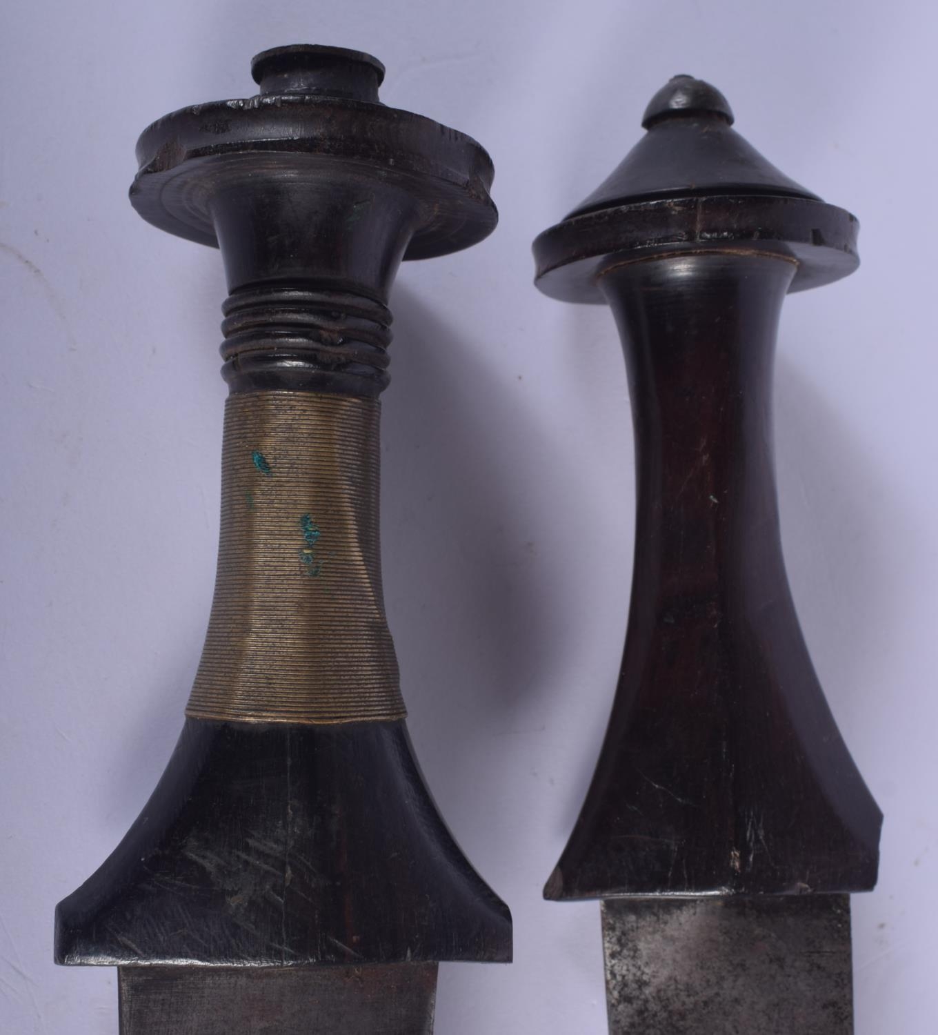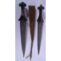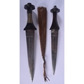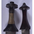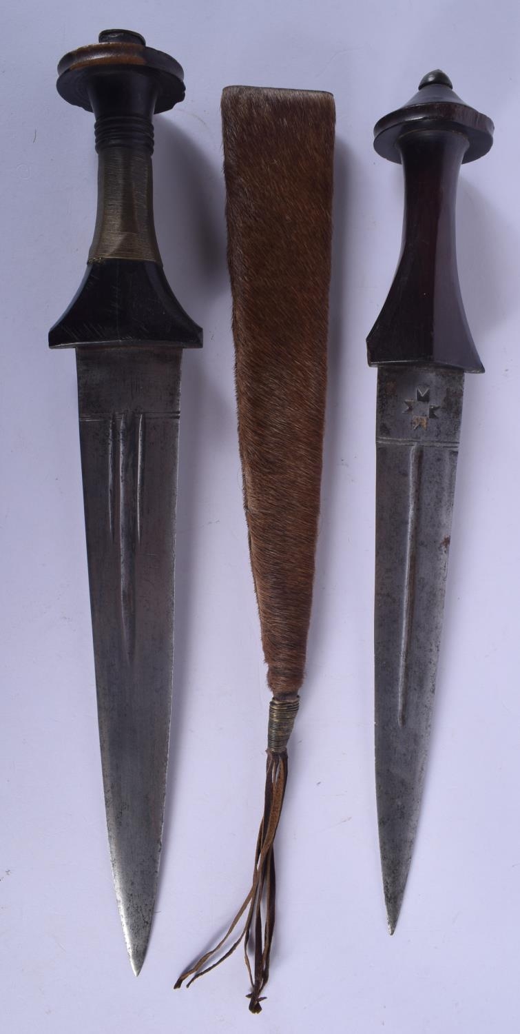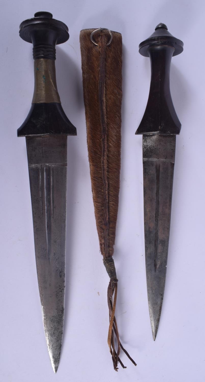 TWO EARLY 20TH CENTURY CONTINENTAL KNIVES one with animal skin sheath. Longest 37 cm. (2)