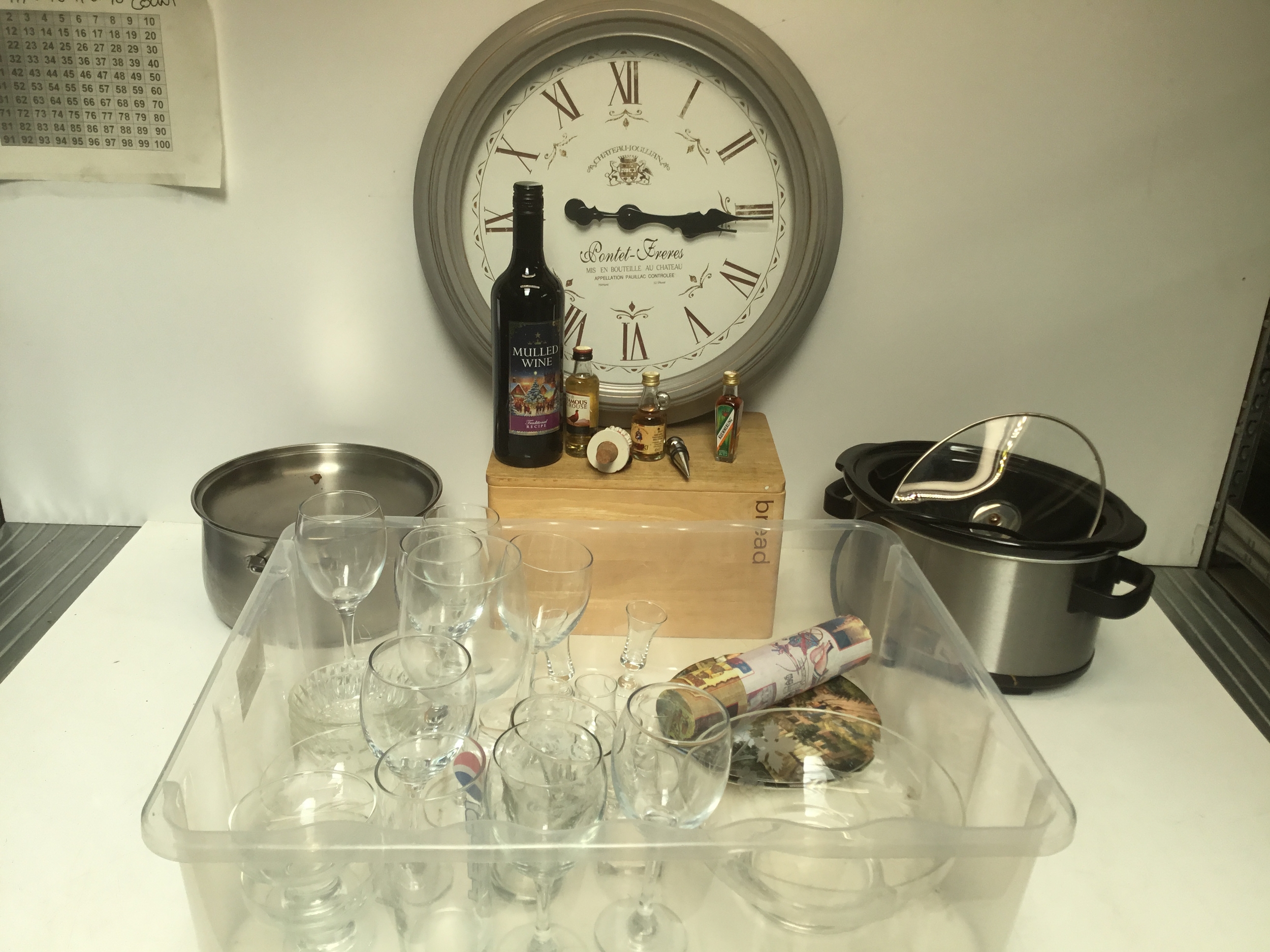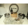 Mixed items including bread bin, slow cooker, glassware and some alcohol