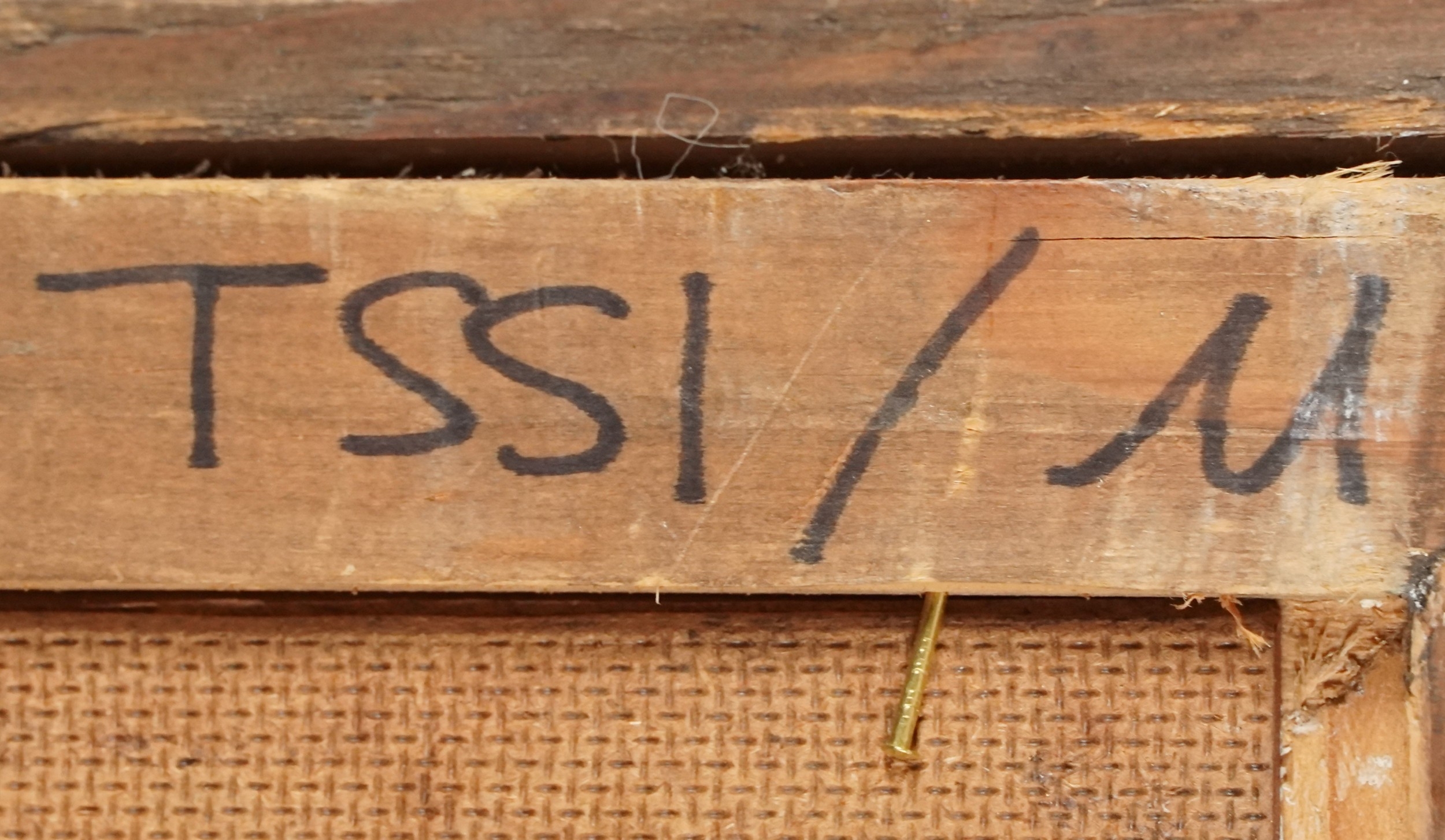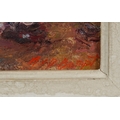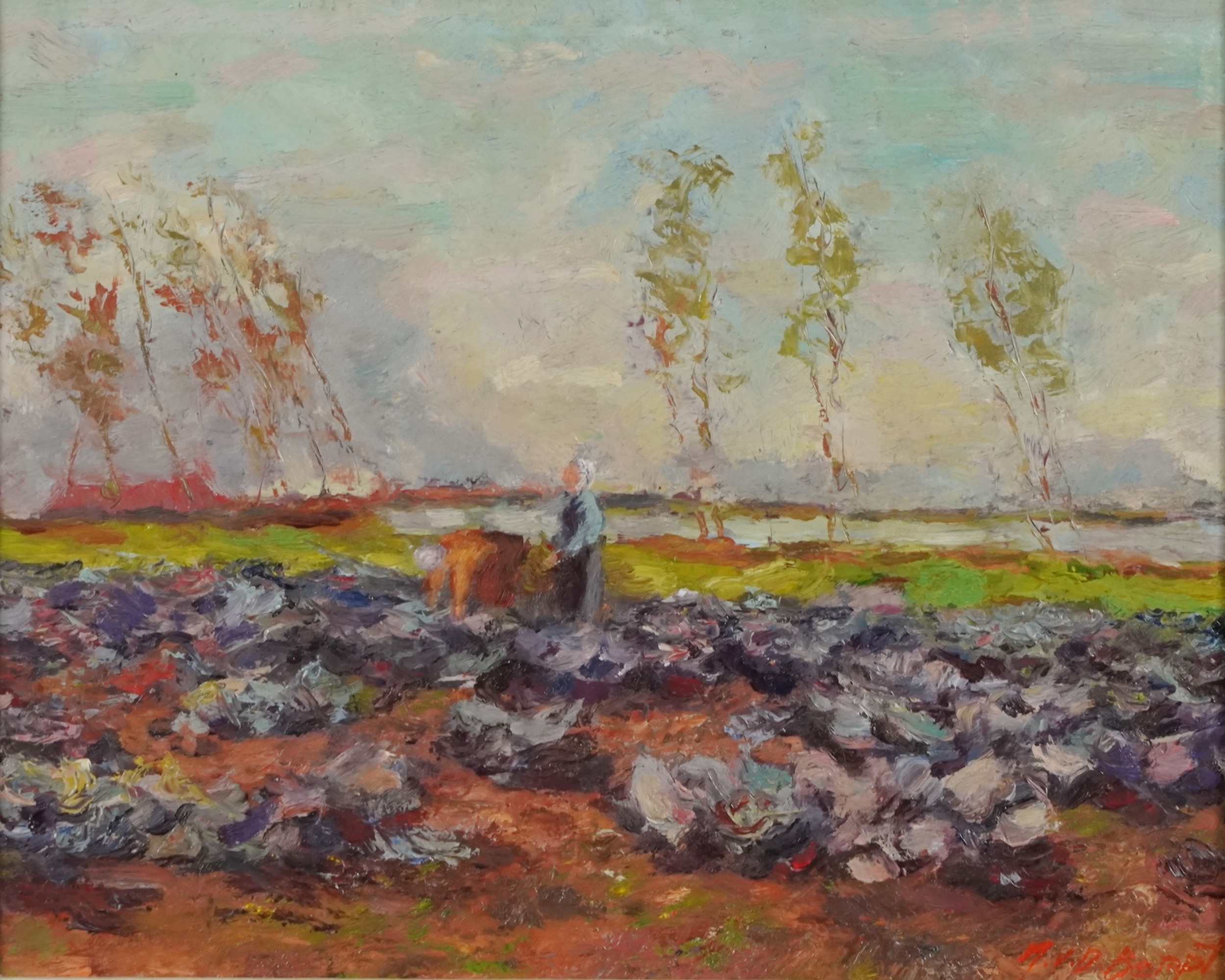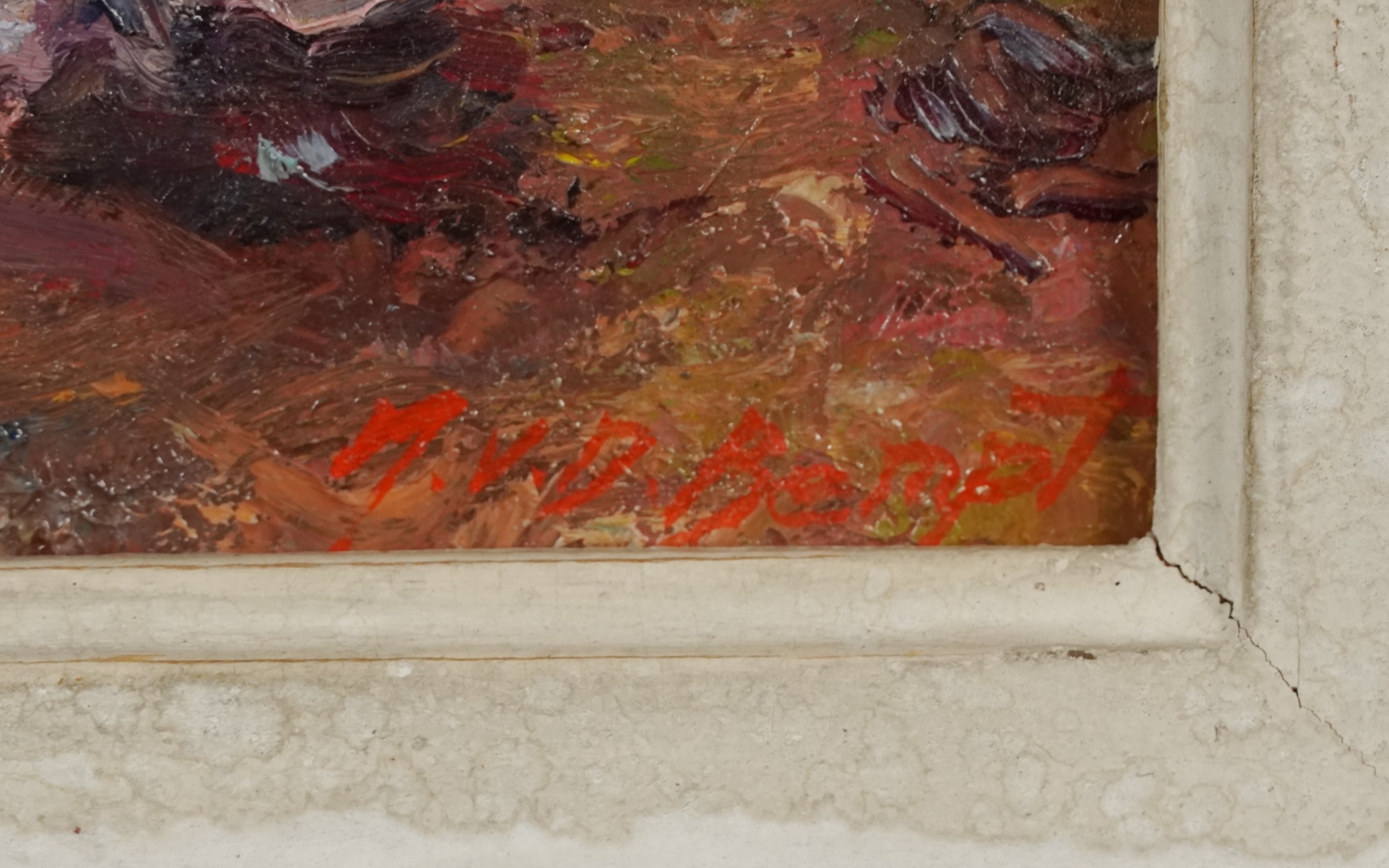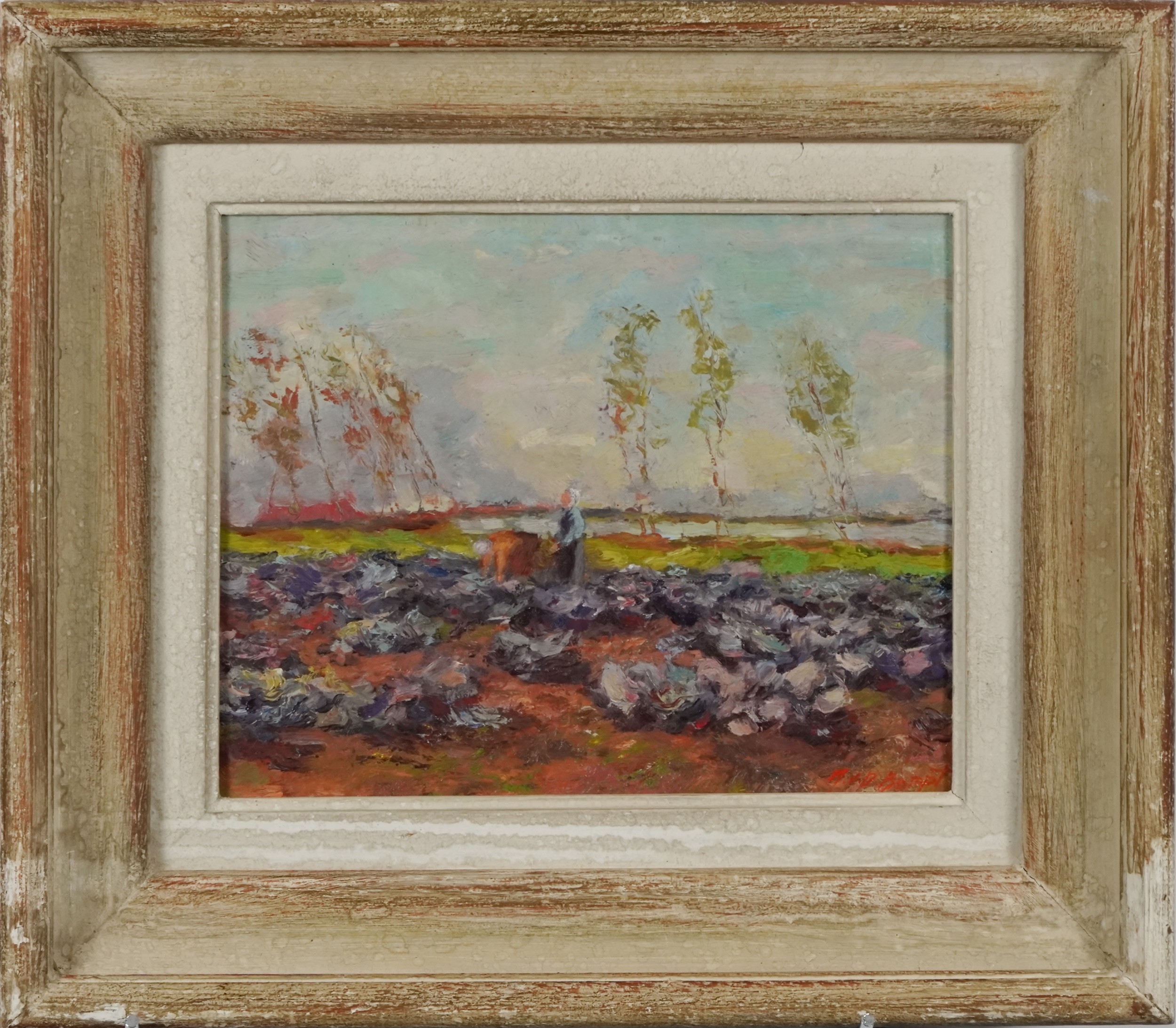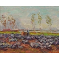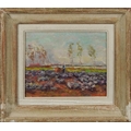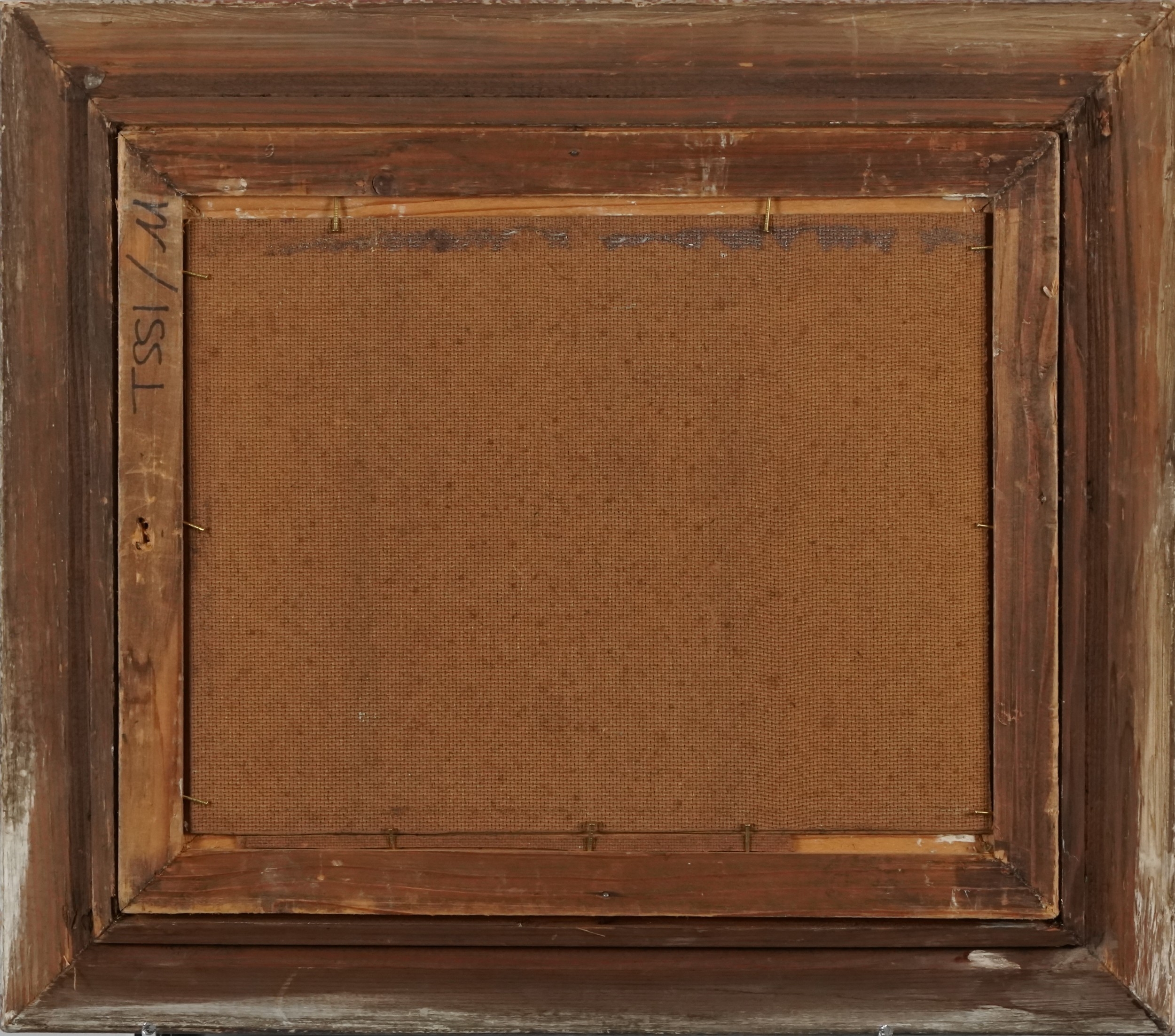 Figure within a landscape, 20th century continental school oil on board, indistinctly signed, within a scumbled moulded frame, 22cm x 29cm.