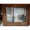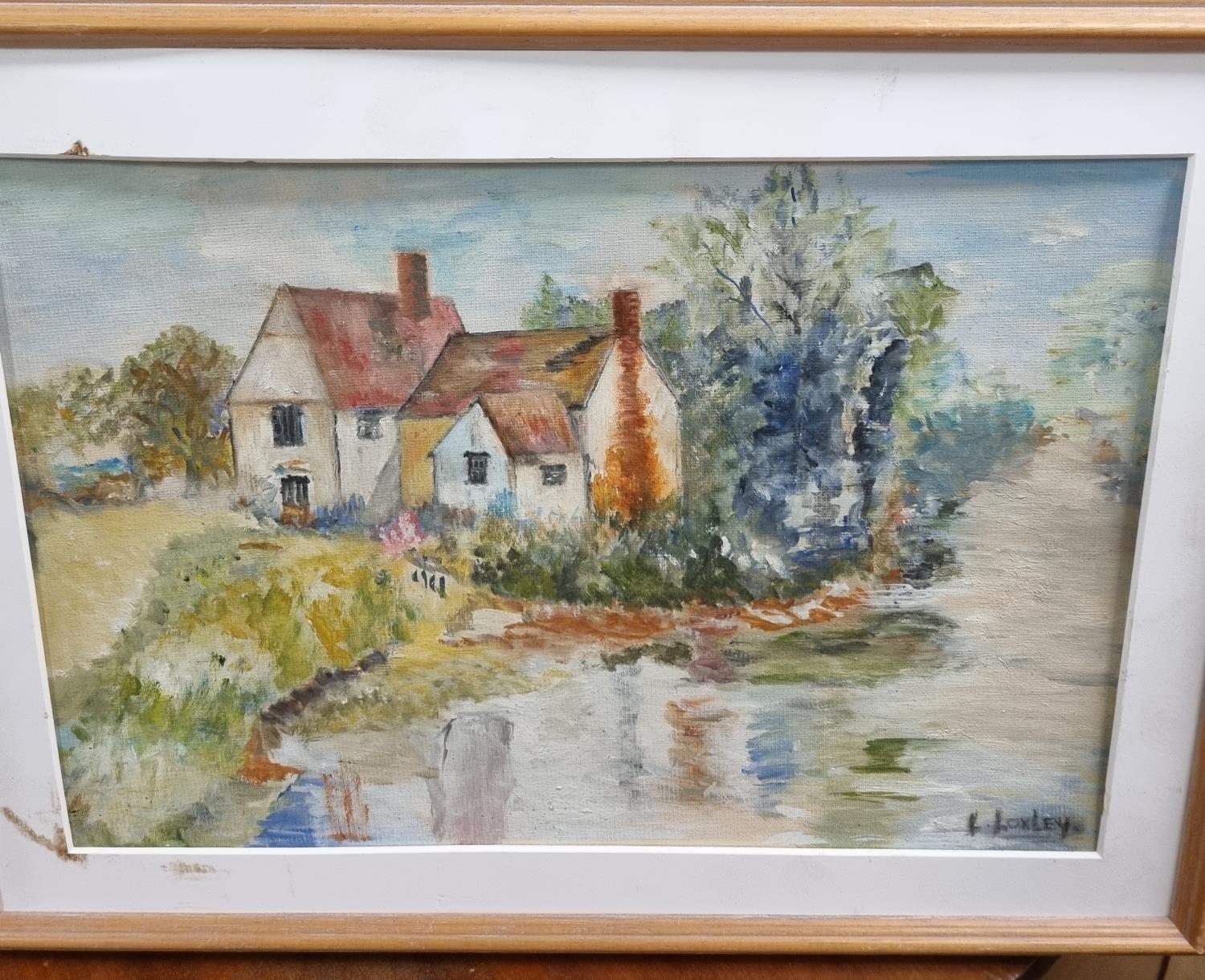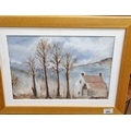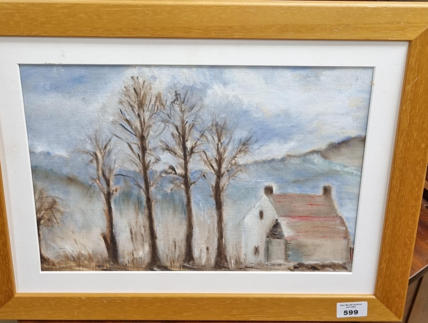 Three early contemporary Pictures to include an Oil on Board of a house signed L Locksley, a Pastel of a house and trees in winter no apparent signature and an oil on board of a woman looking out to sea.
