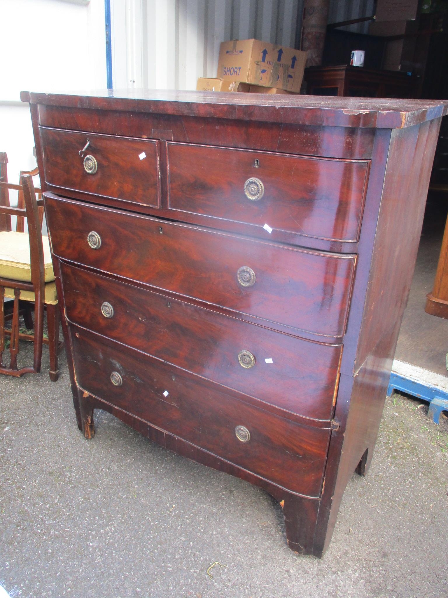 An early 19th century mahogany chest of two short and three long drawers 123.5cm h x 111cm w A/F