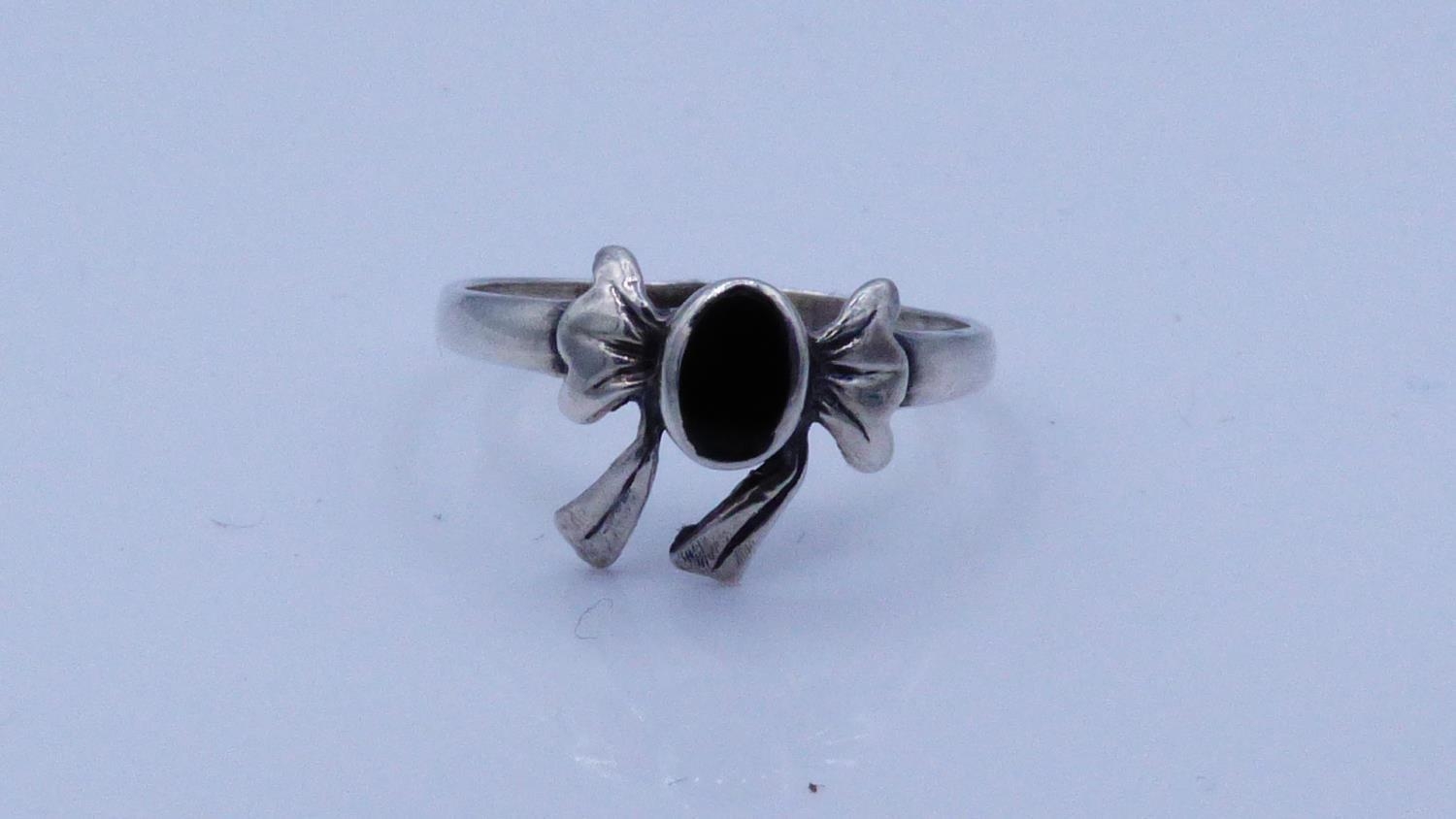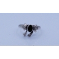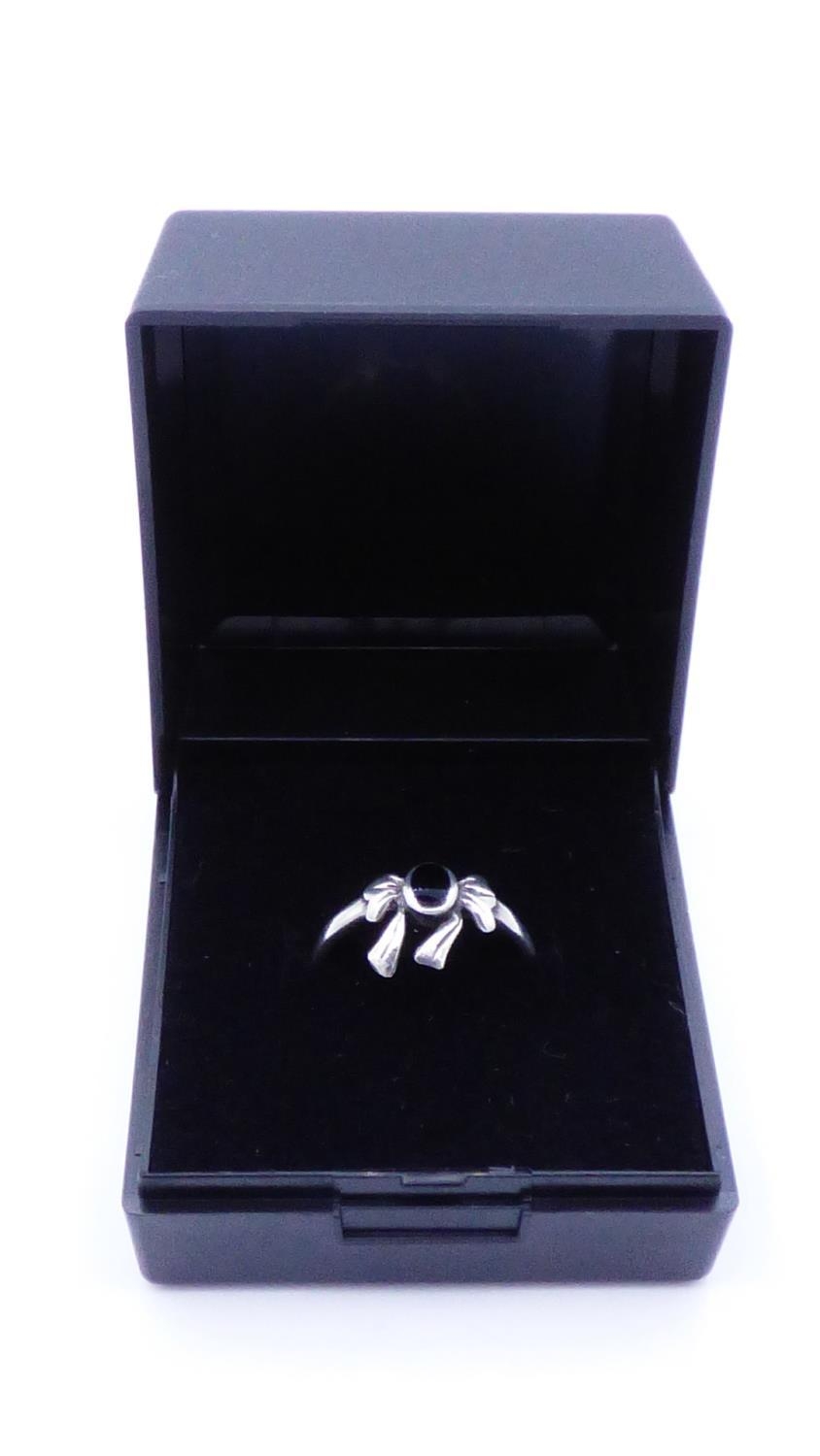 Silver 925 Black Stoned Bow Ring Complete with Presentation Box (Size L)