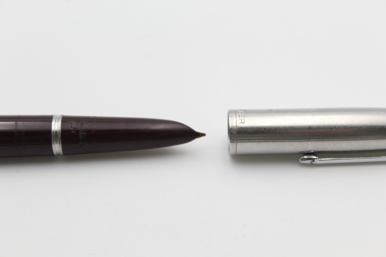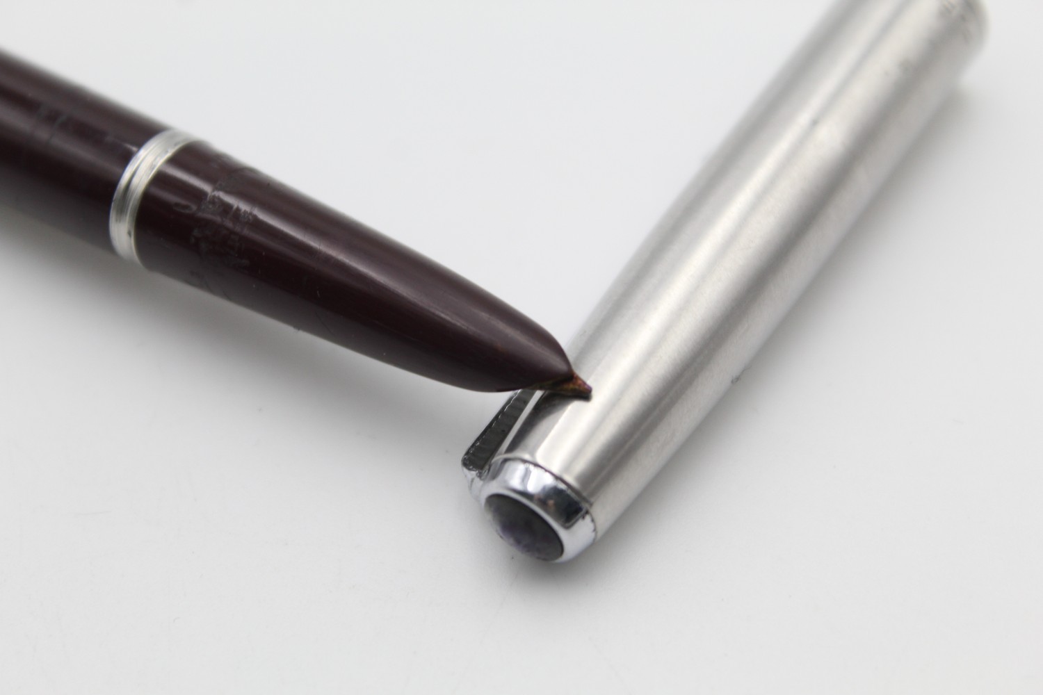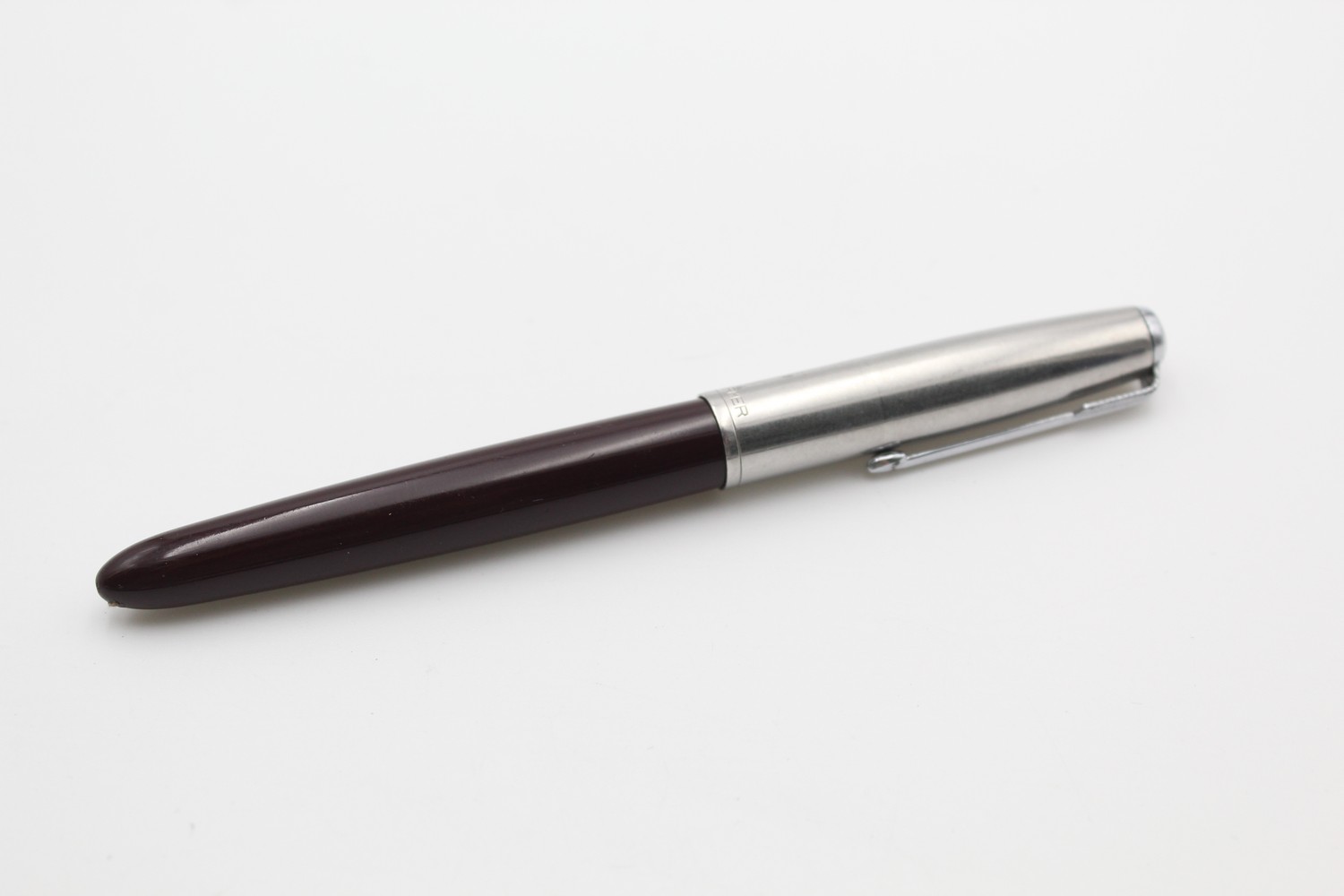 Vintage PARKER 51 Burgundy FOUNTAIN PEN w/ Brushed Steel Cap WRITING
