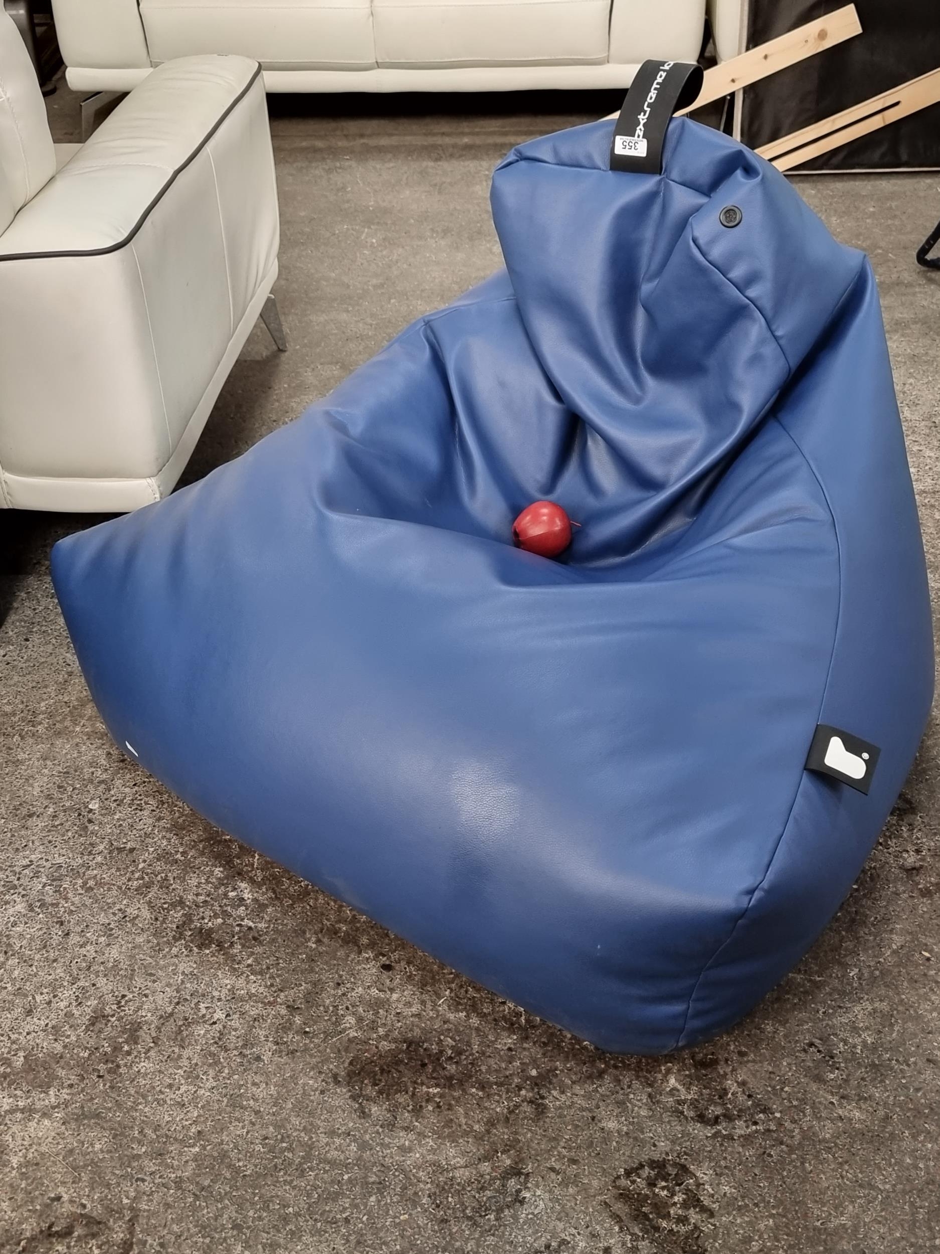 A blue Extreme Lounging bean bag with breathable vents, weatherproof covering and zip. In very good condition. RRP €130.