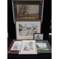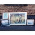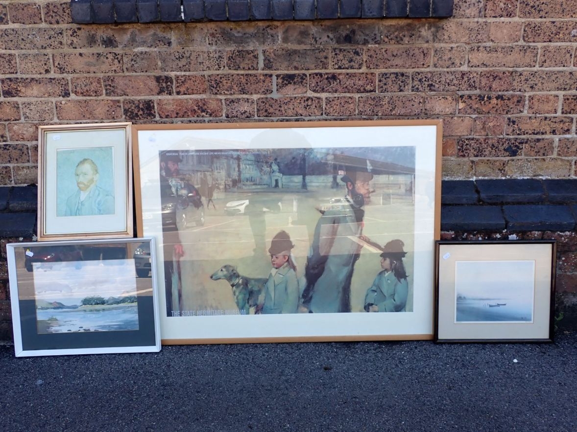 DAVID VULLIAMY (DORSET ART CLUB) LAKE VIEW watercolour (not signed), with a Peter Toms print, a State Hermitage Degas poster, and a print after Vincent Van Gogh (4)