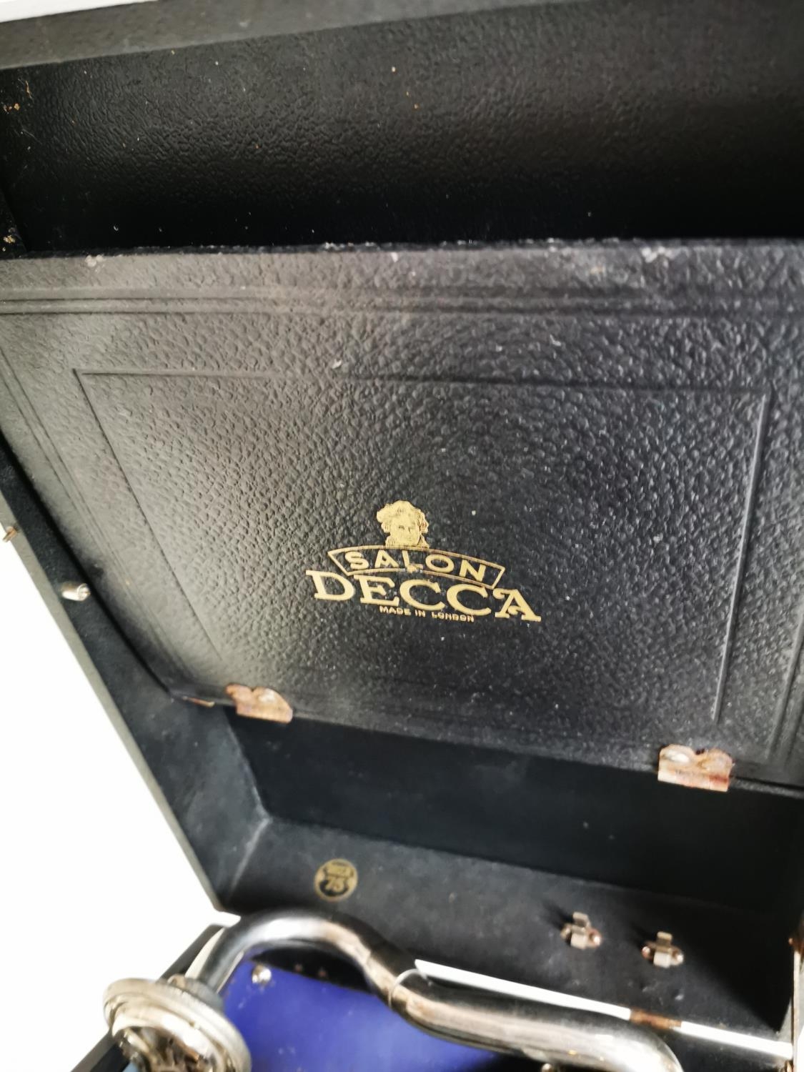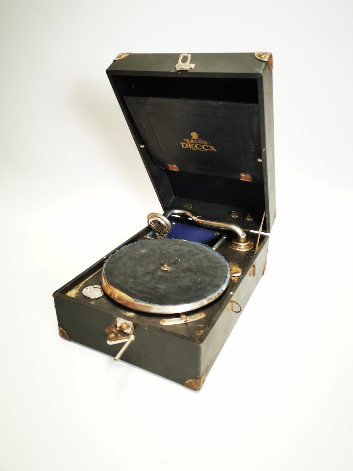 20th C. Decca suitcase gramophone {18 cm H x 29 cm W x 41 cm D}.