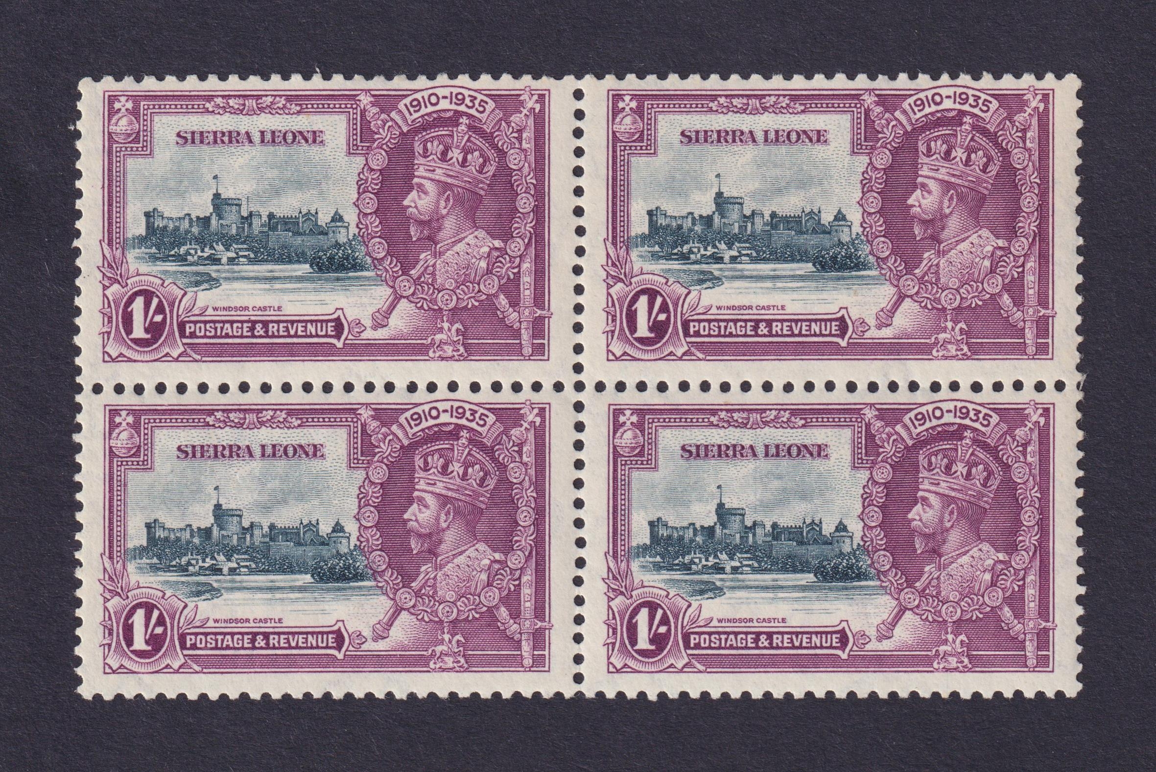 1935 Silver Jubilee 1/- in u/m block of 4 (very light gum toning), the upper left stamp with ‘Extra flagstaff’, Cat £550+, SG184a