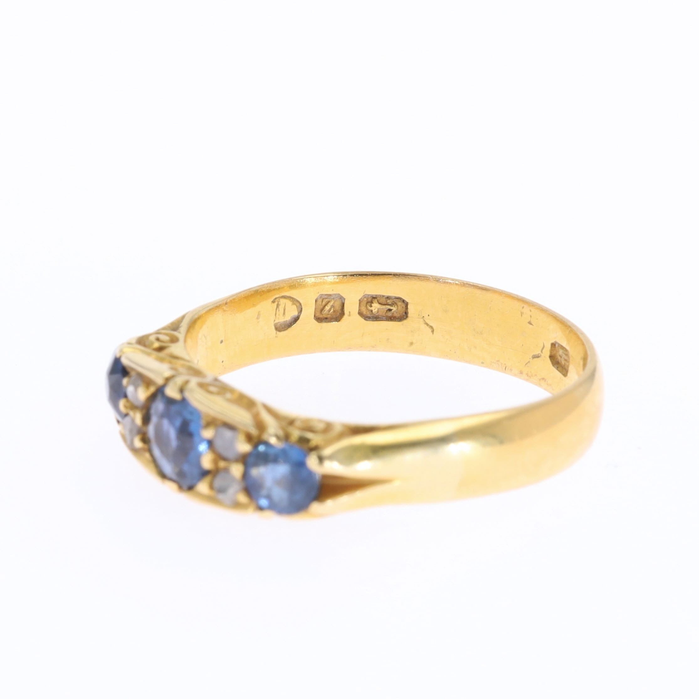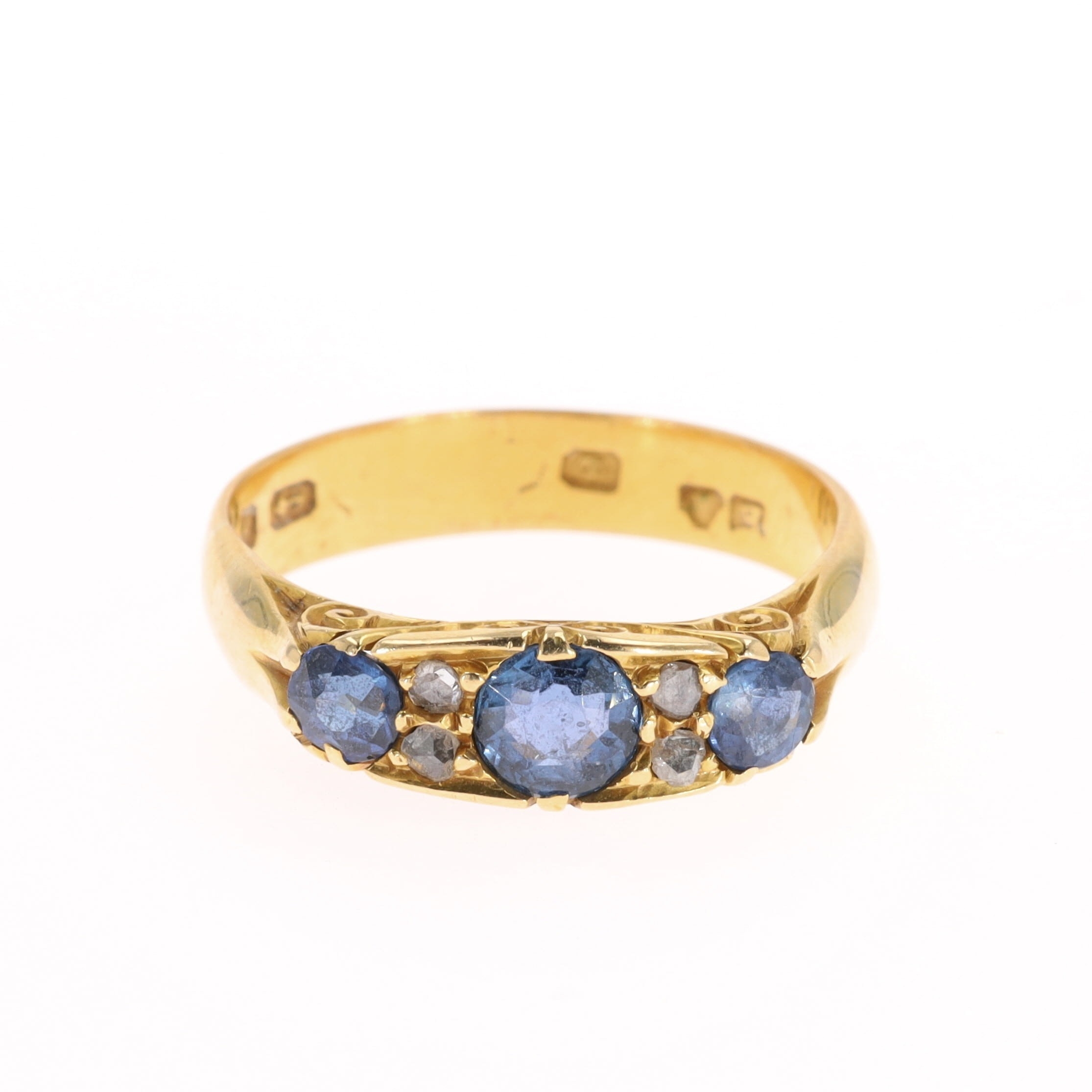 Antique Diamond and Sapphire 18ct Gold Flush Set Ring