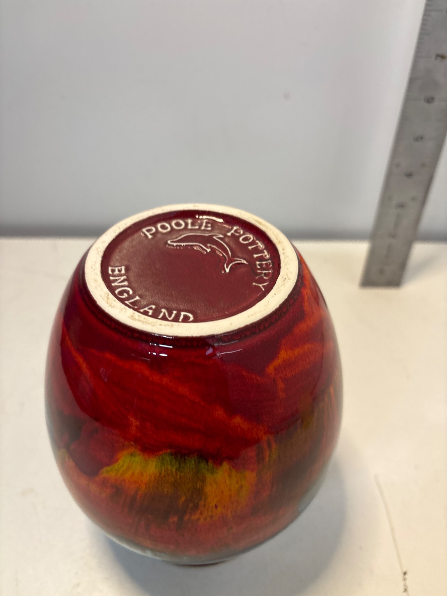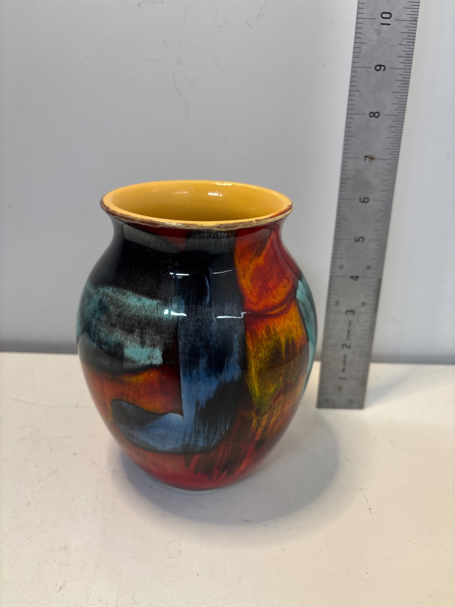 Poole Pottery ceramic vase with multicolor glaze, stamped.