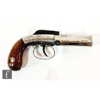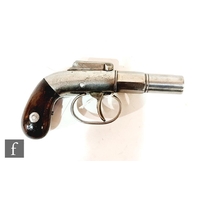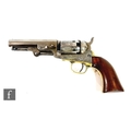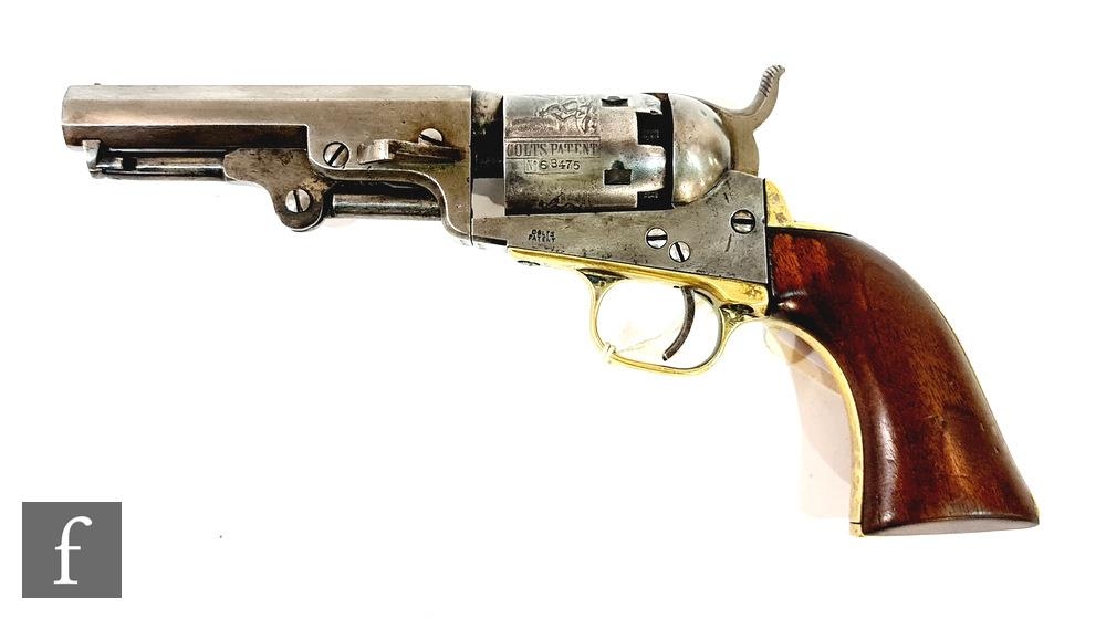 A Colts patent .31 cal pocket revolver, serial no 68475, 9.5cm octagonal barrel, the chamber engraved with a Wild West coach scene, brass trigger guard and mahogany butt, stamped.