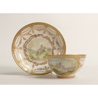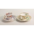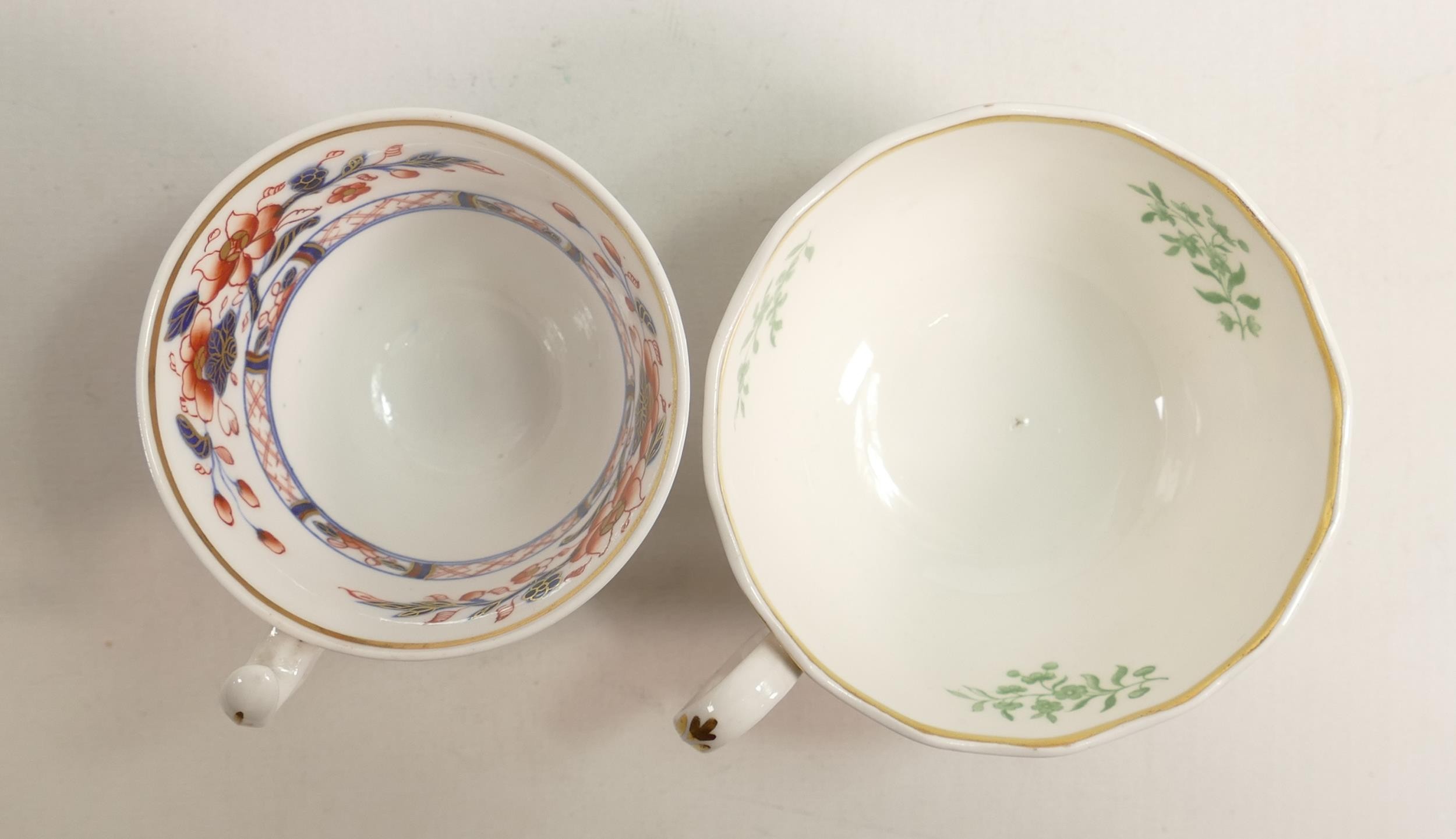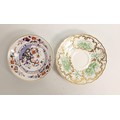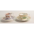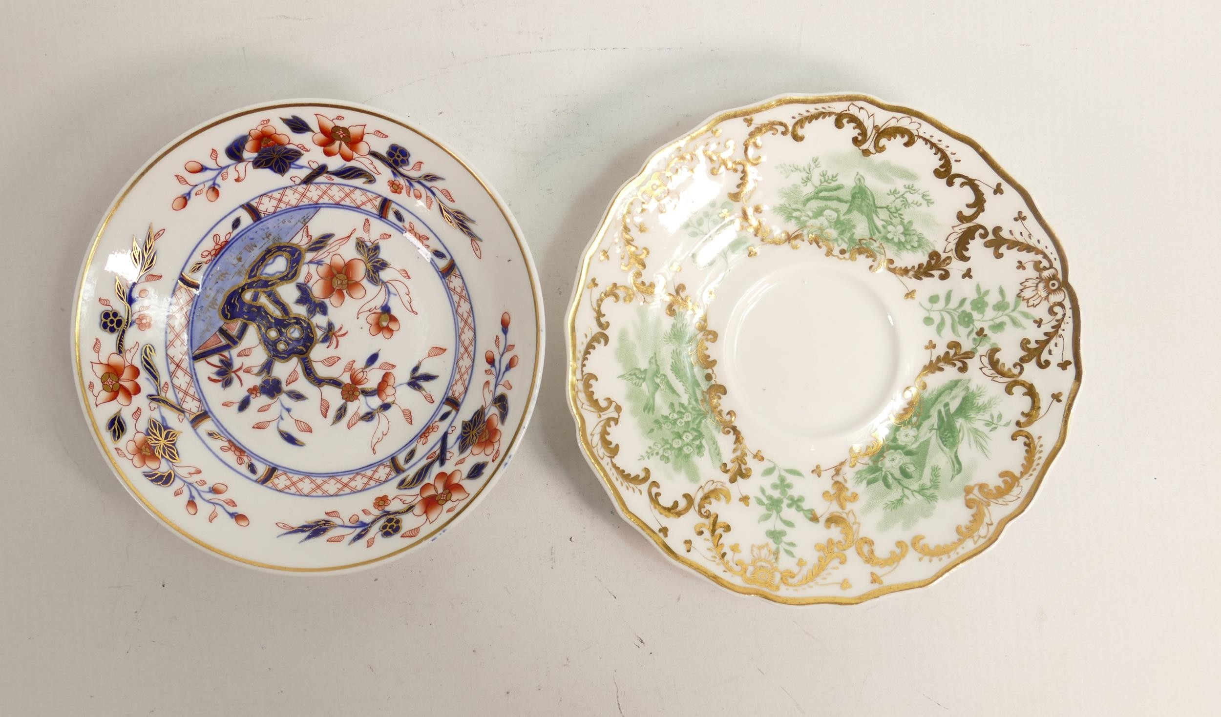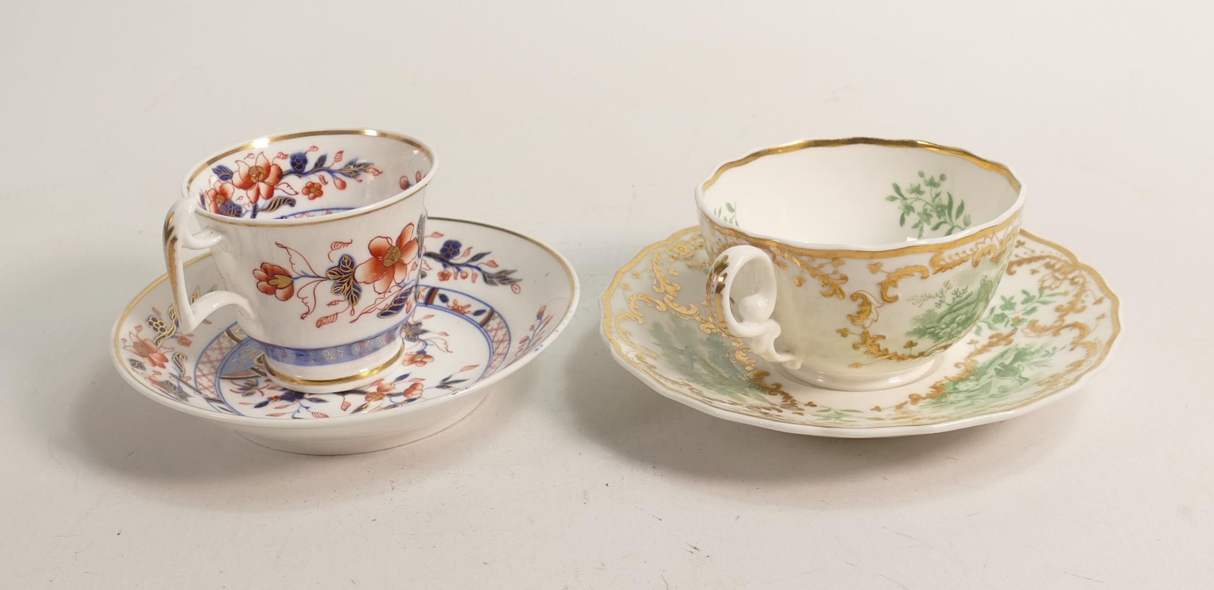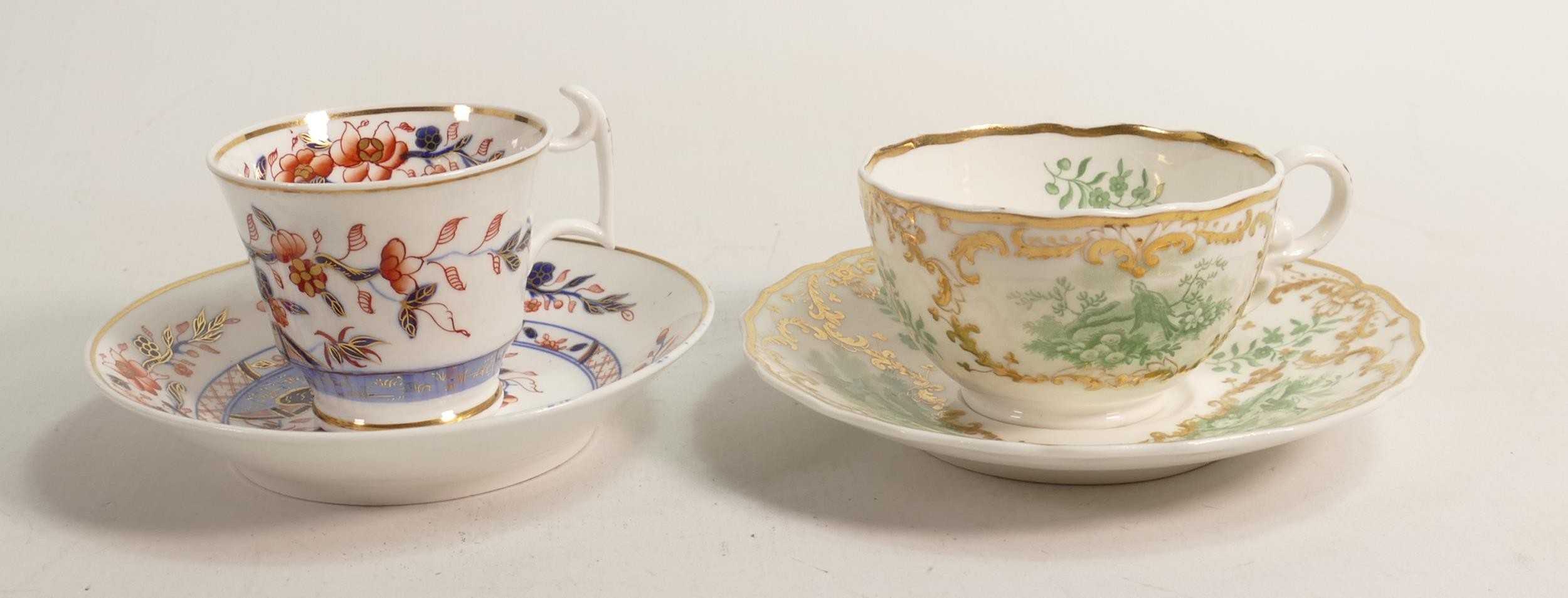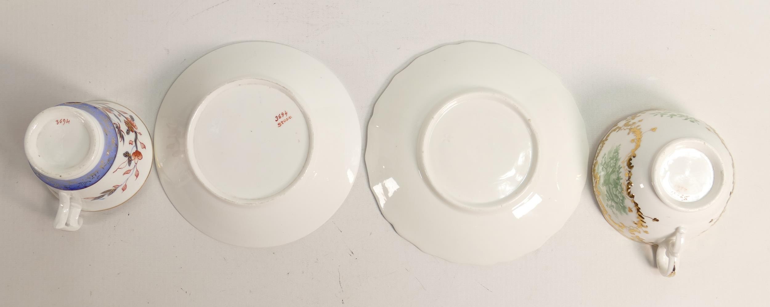 Two 19th century Spode cups and saucers, one Imari style decoration and the other gilded transfer of birds. (4)