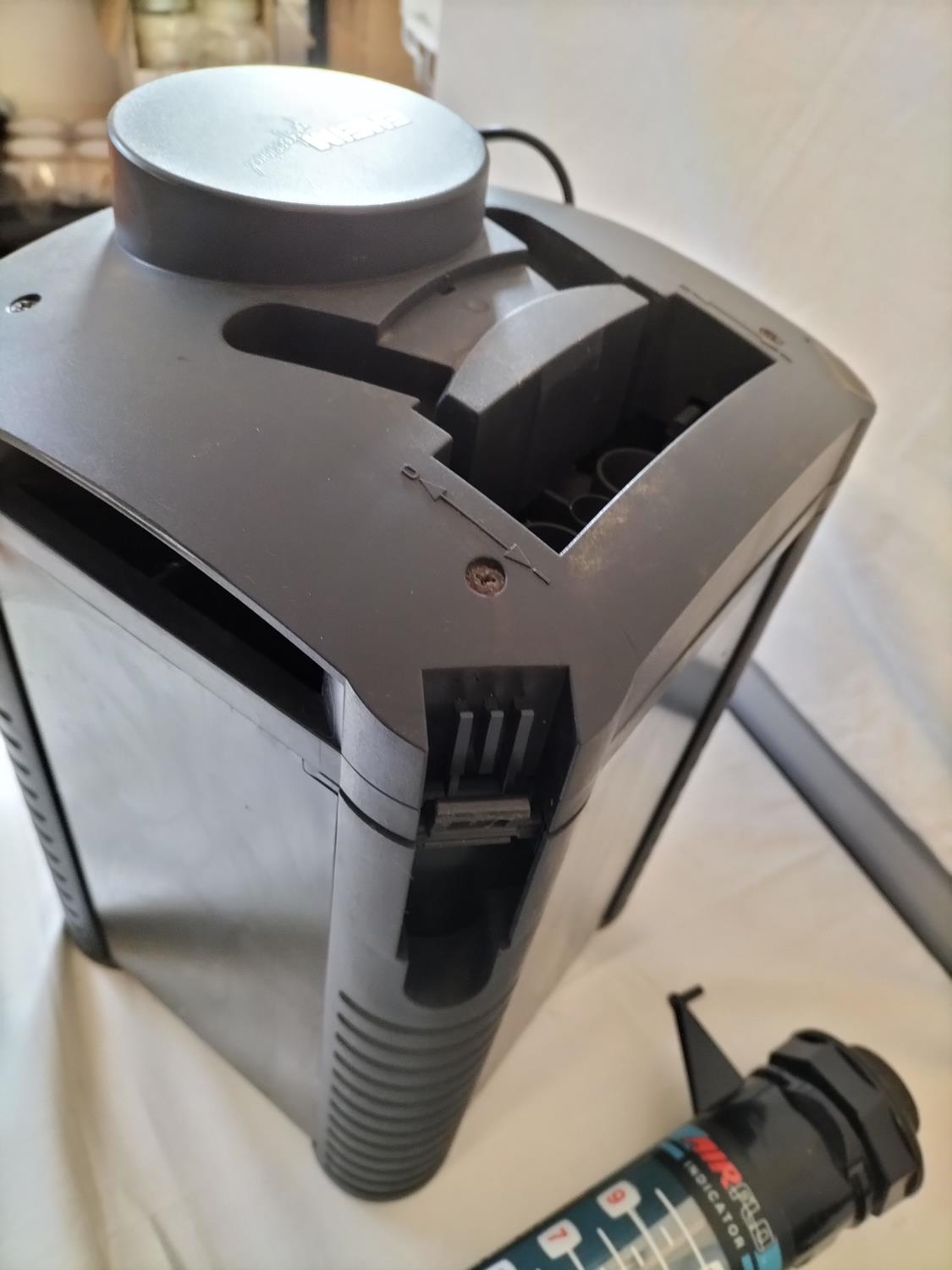 Eheim Professional Fish Tank Water Filter. W/O. 1 Clip and In/Outlet Pipes Missing.