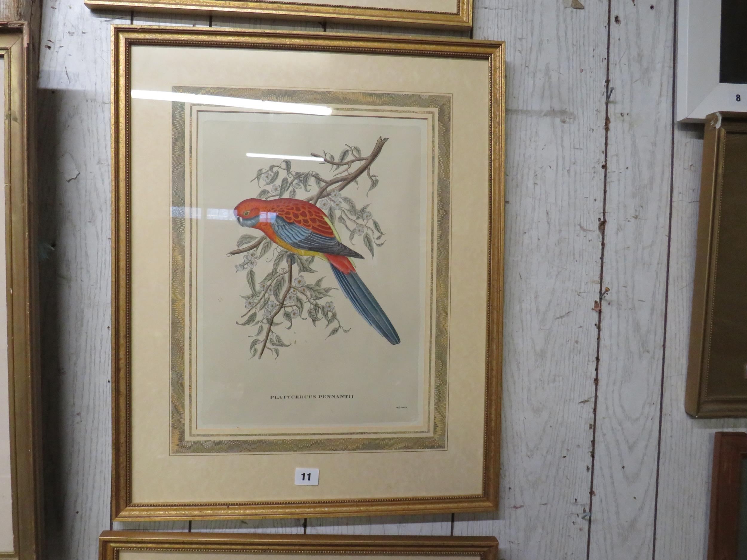 Set of 3 framed exotic bird prints 17" x 12