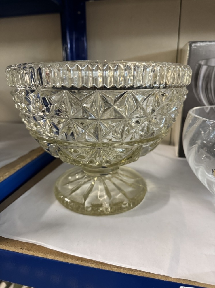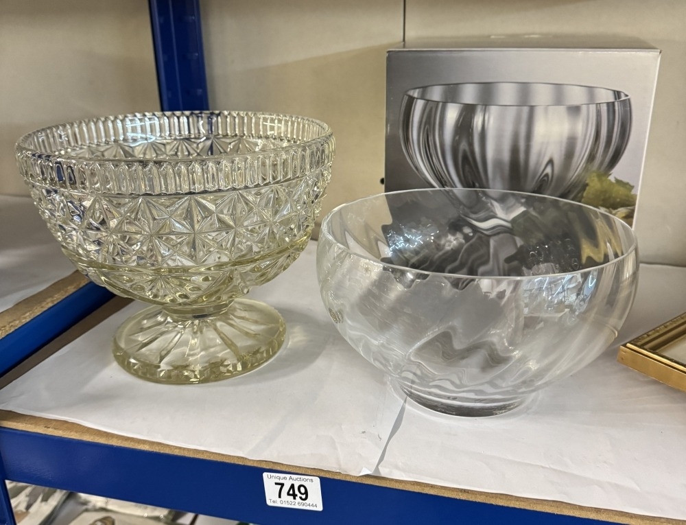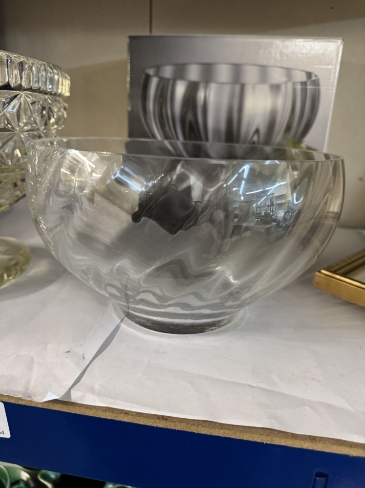 A large fruit bowl and boxed Dartington ripple salad bowl