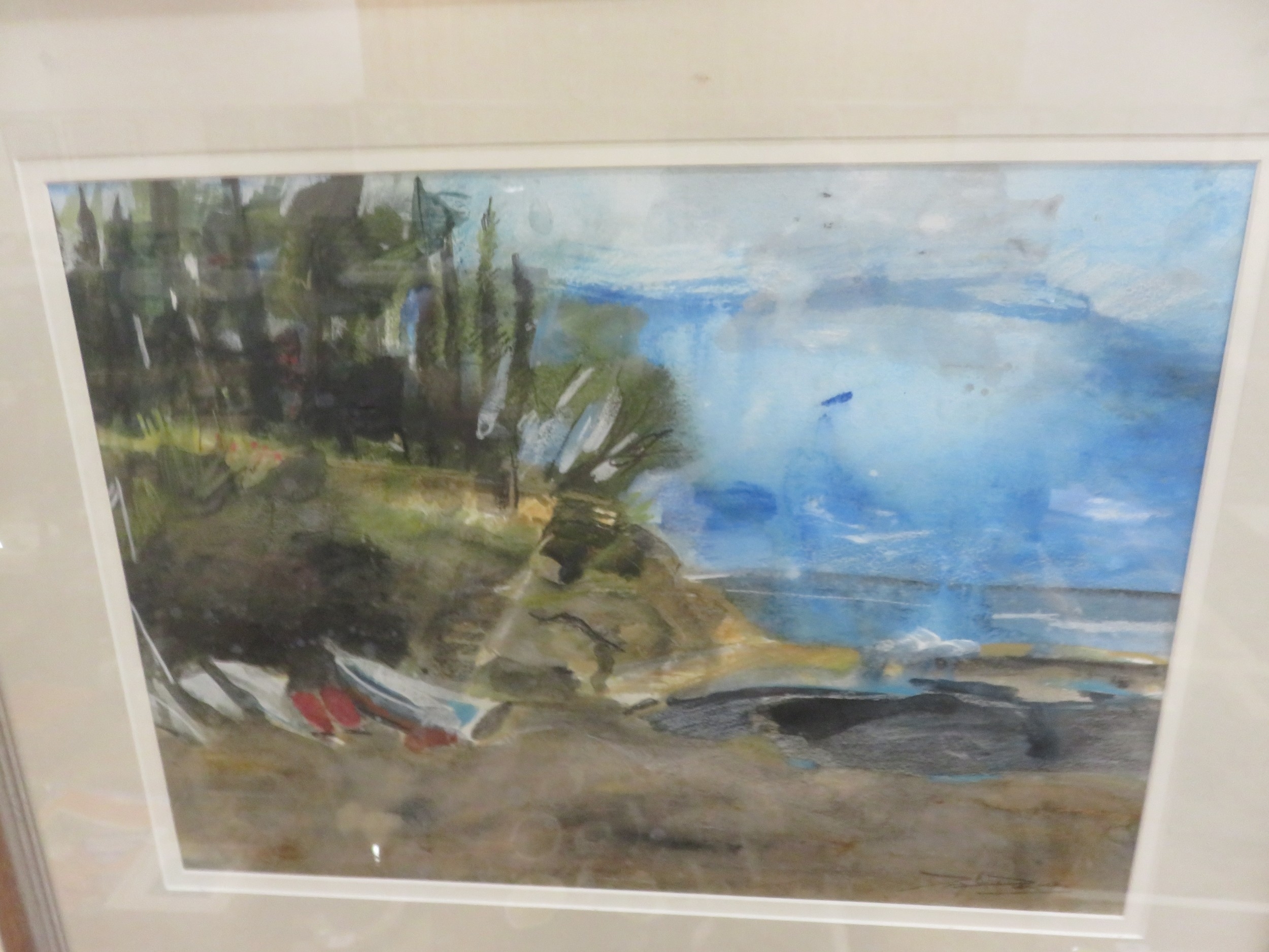 Framed Watercolour - Beach Scene - signed Douglas Davies RSW 36 by 51cm