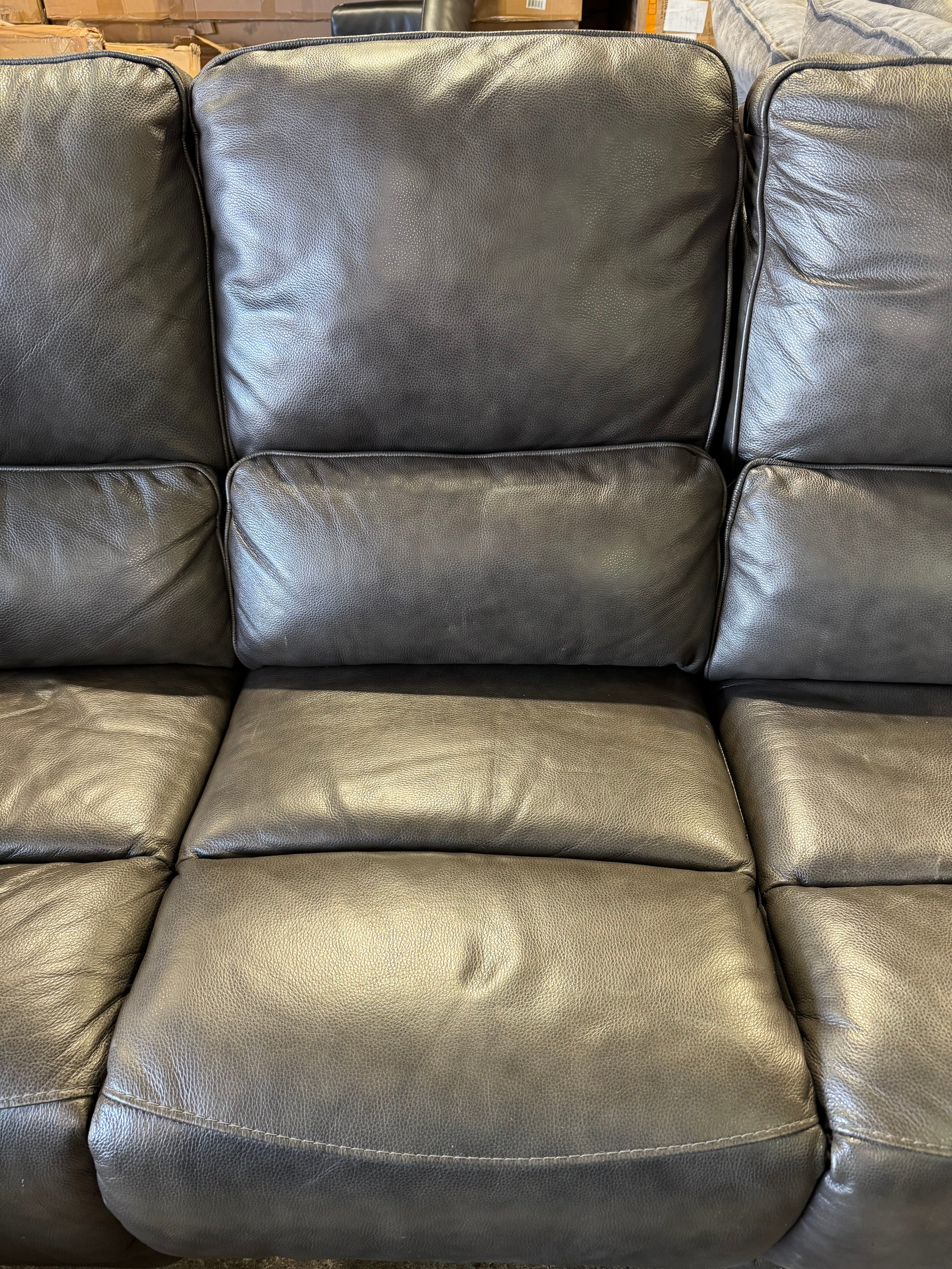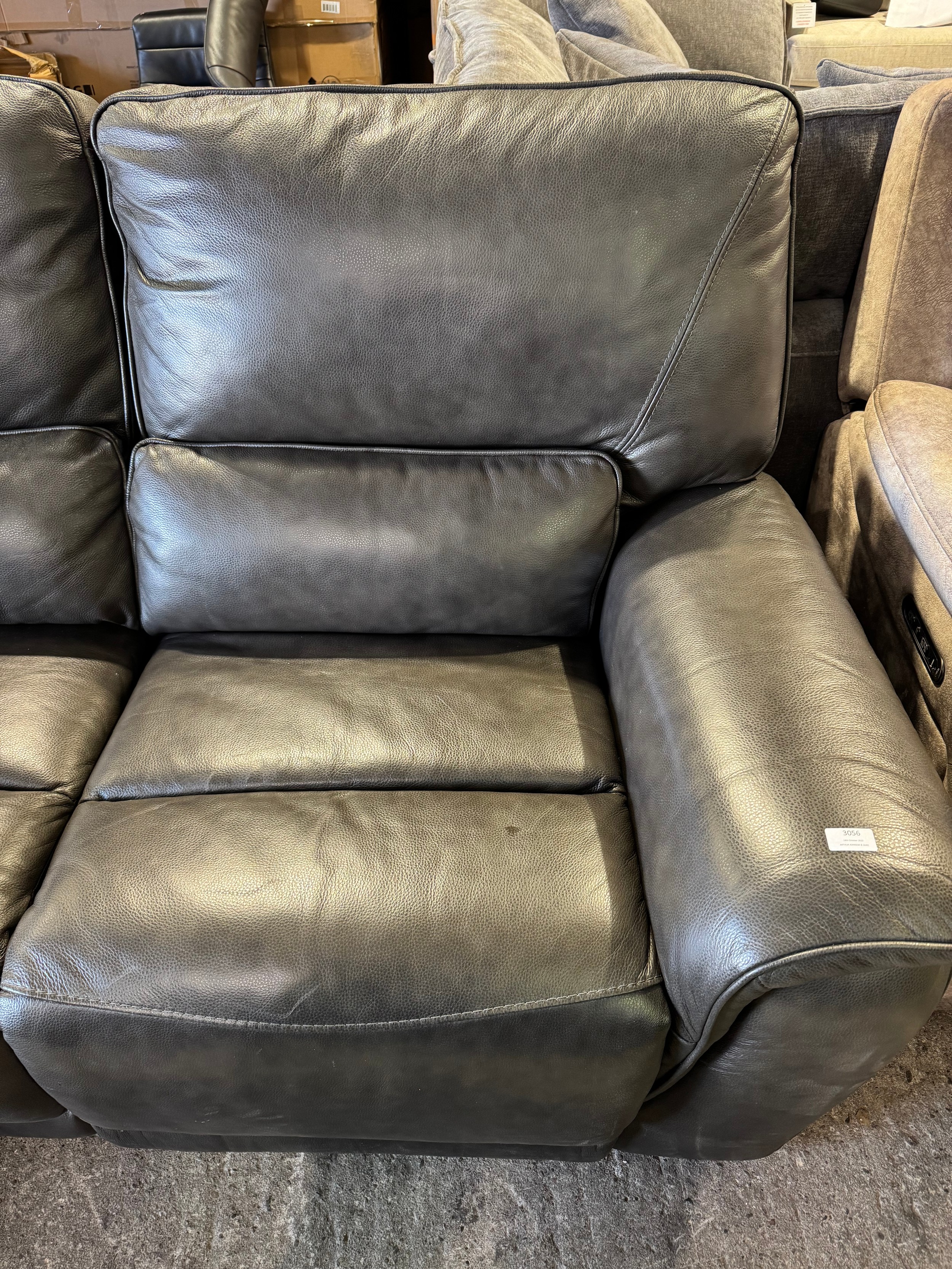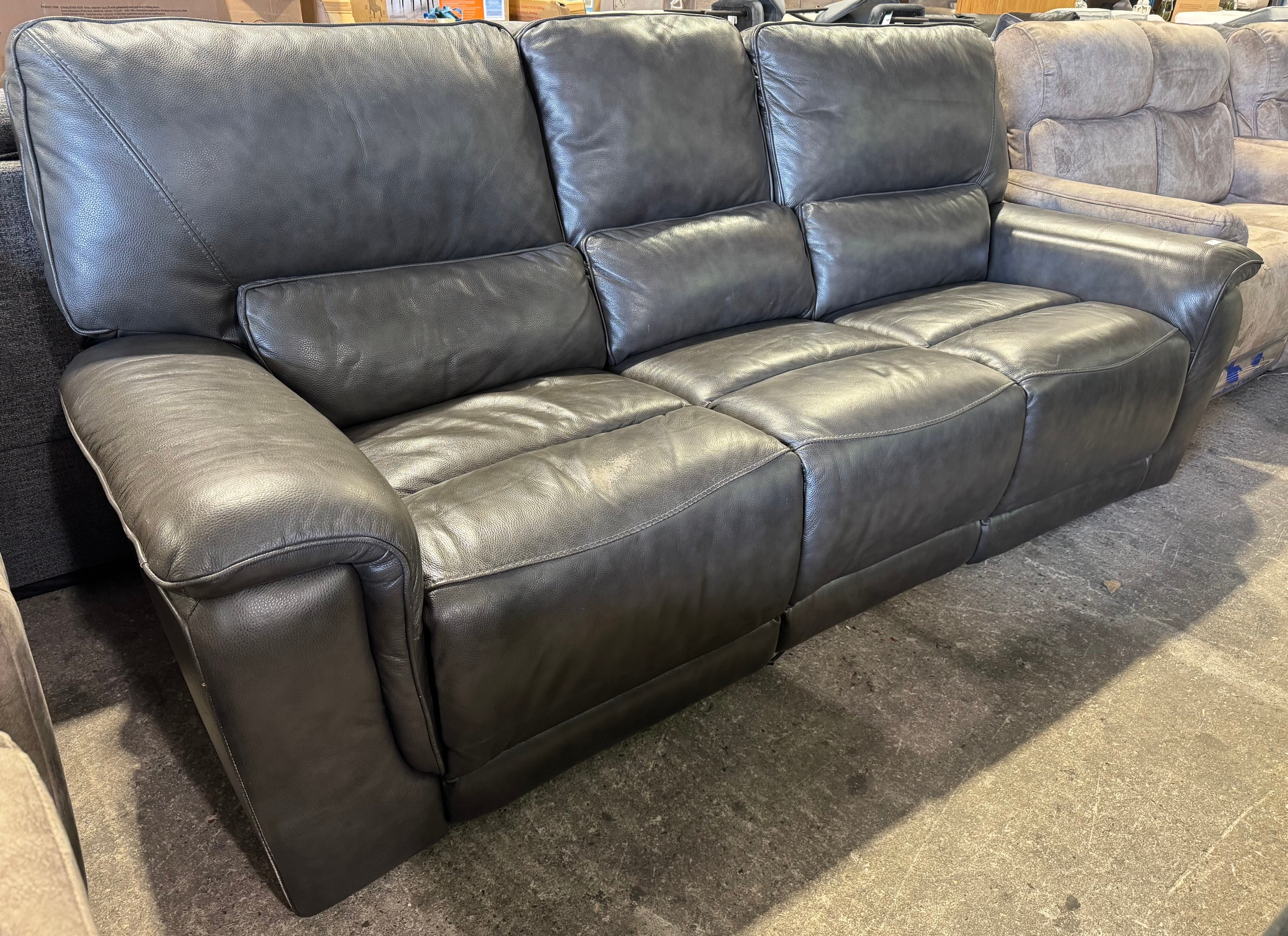 A Kuka Maxwell grey 3 seater sofa with power headrests (marked/damaged), original RRP £1333.33 + VAT (4246-15) *This lot is subject to VAT
