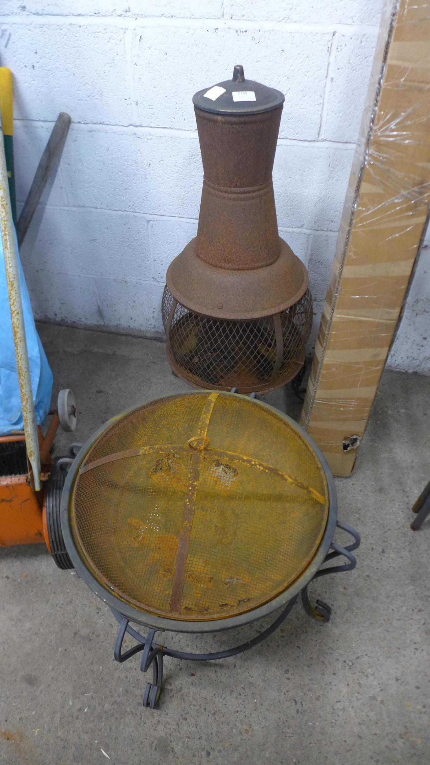 Two metal garden fire pits