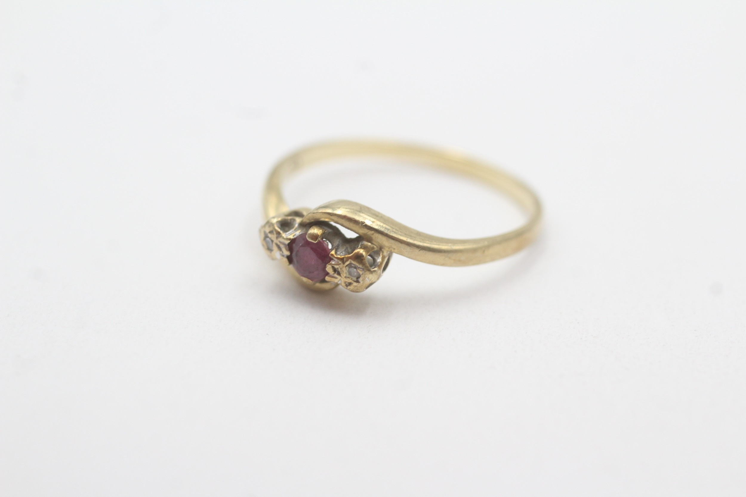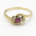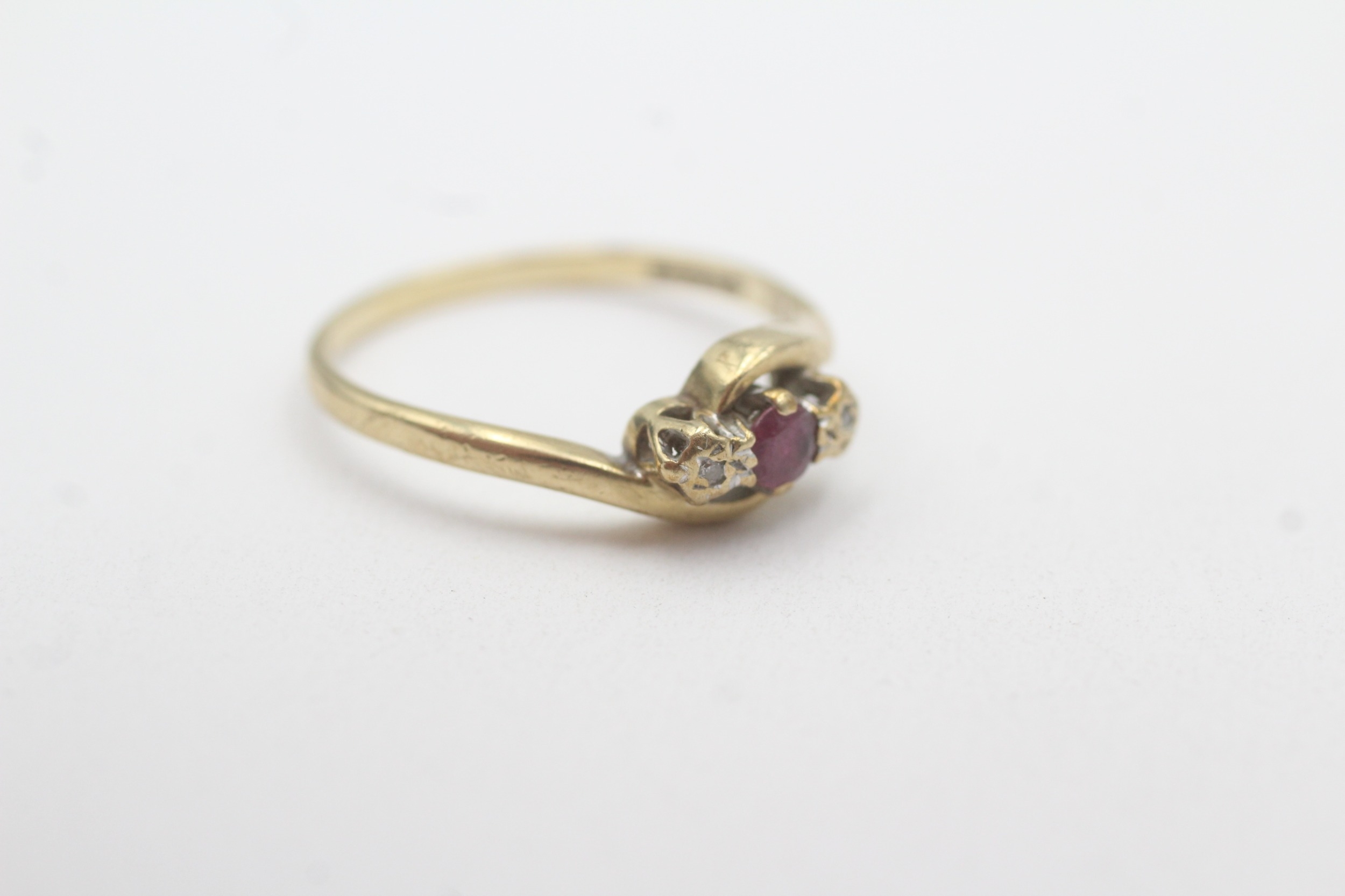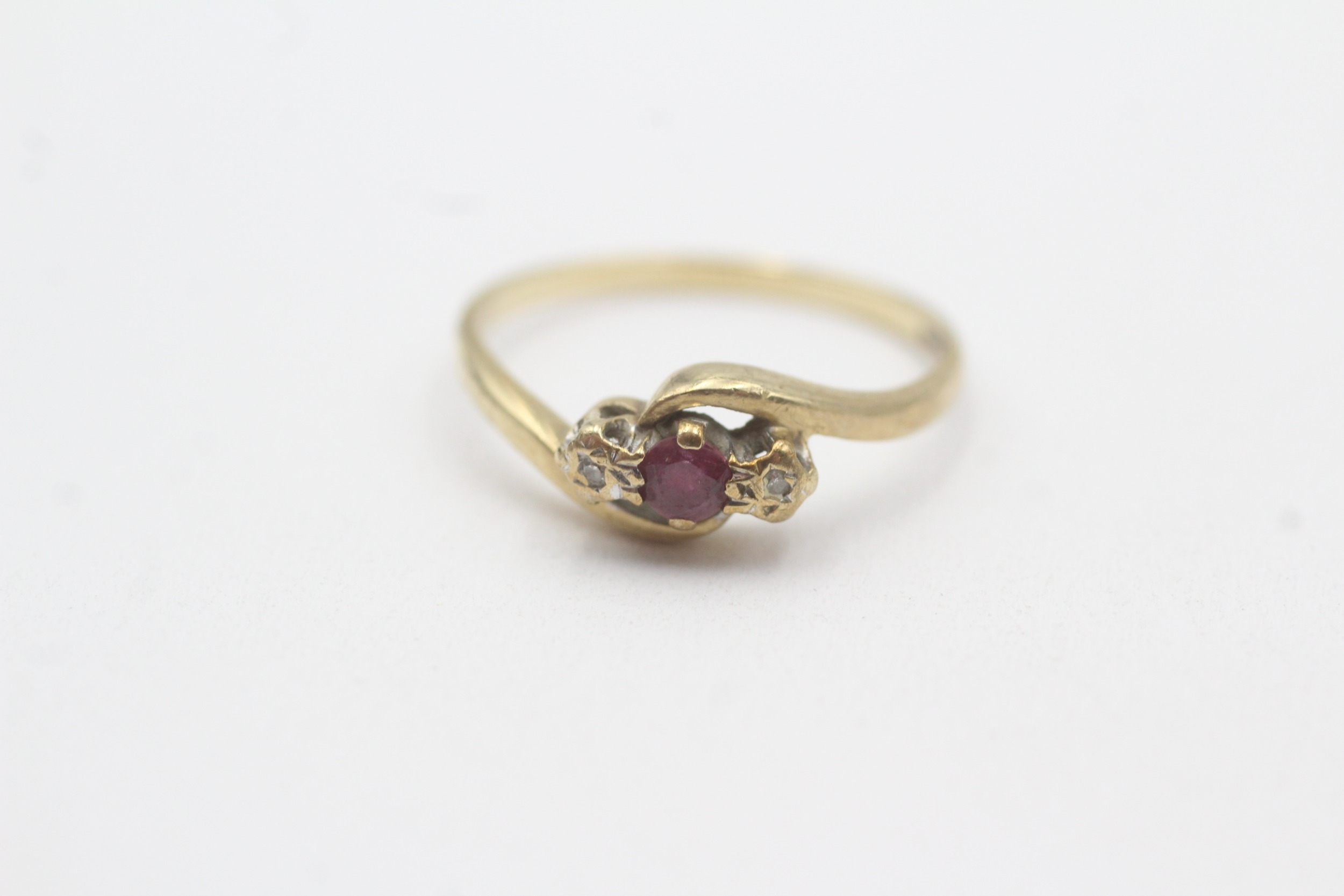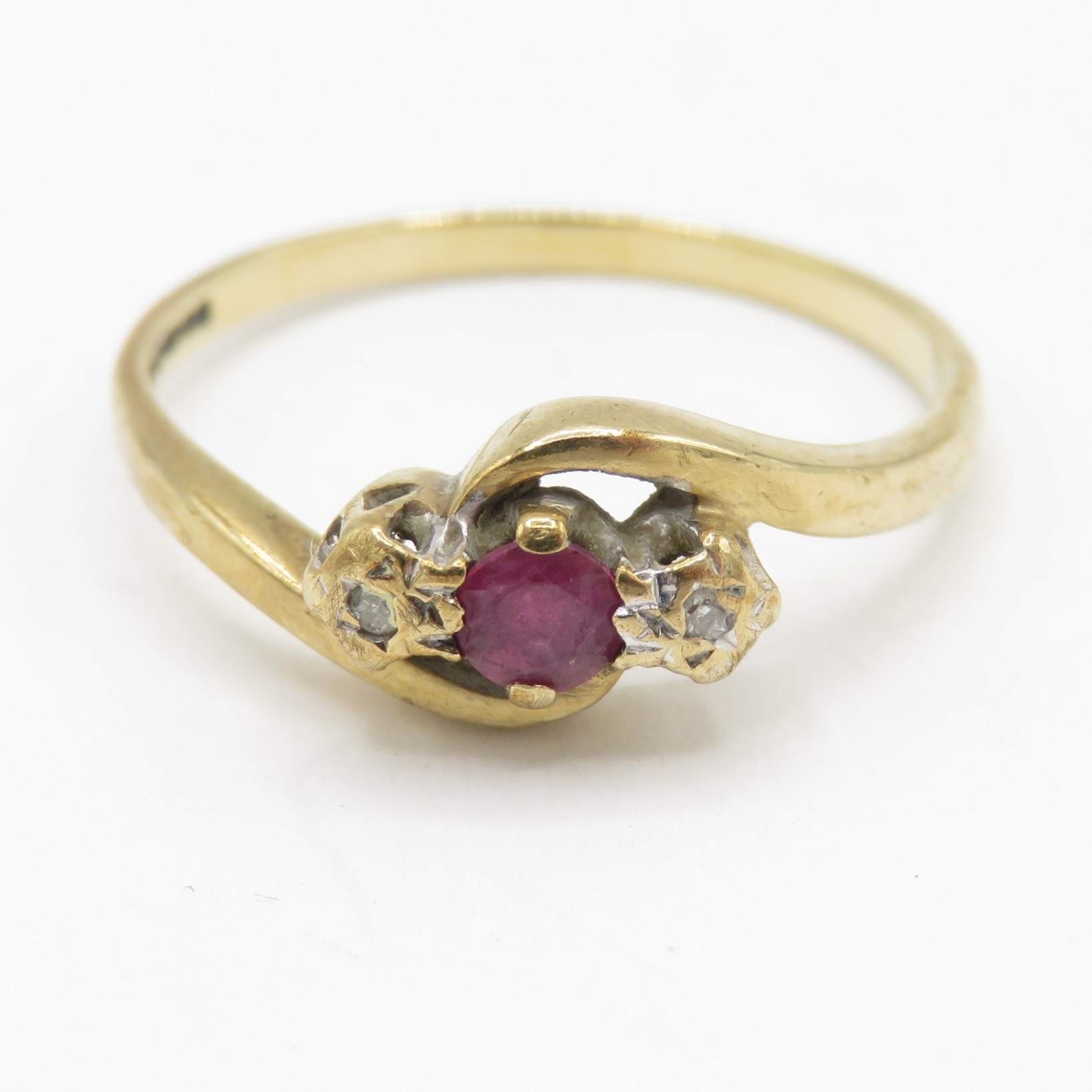 9ct gold ruby diamond trilogy bypass ring (1.7g) Size O