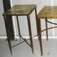 Set 3 Marble Top Lacquered Metal Tables: 1 rectangular with orange grained marble & 2 smaller square tables with purple/cream marble on reeded stretchered supports (3)